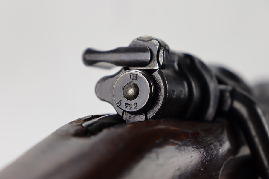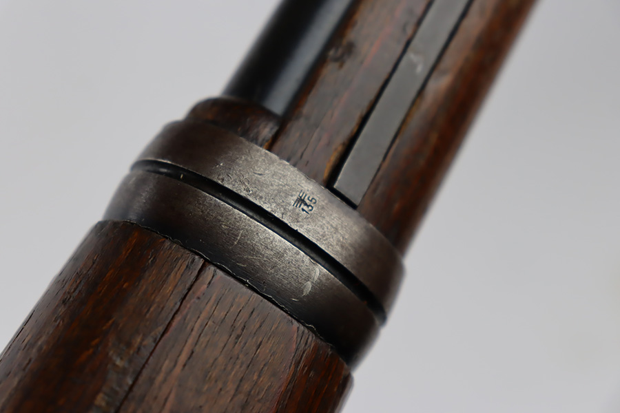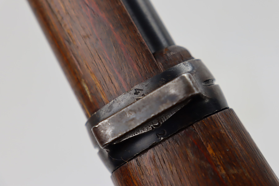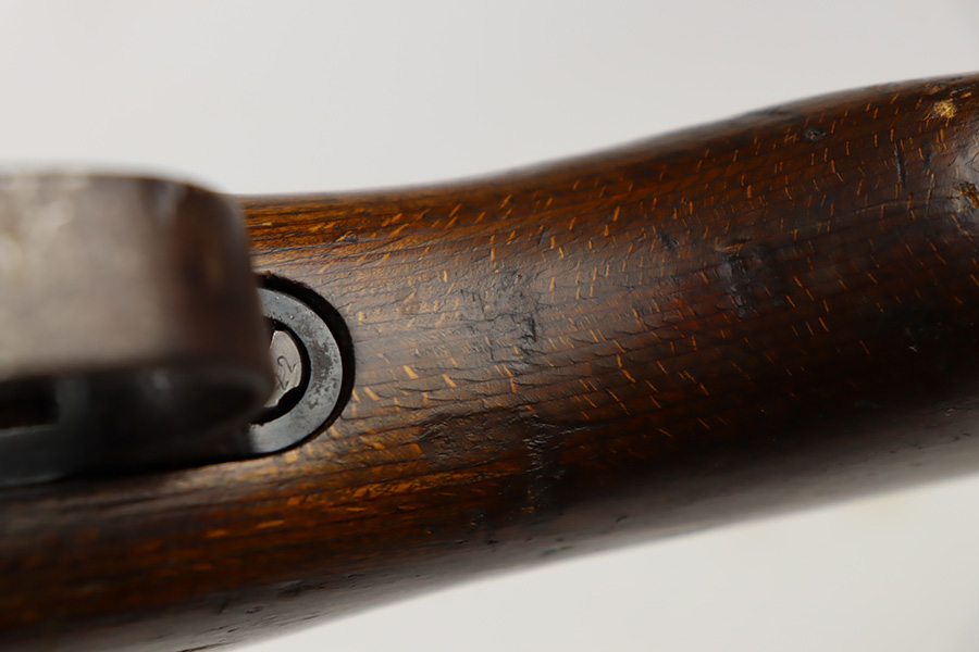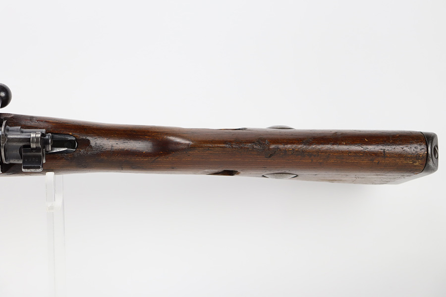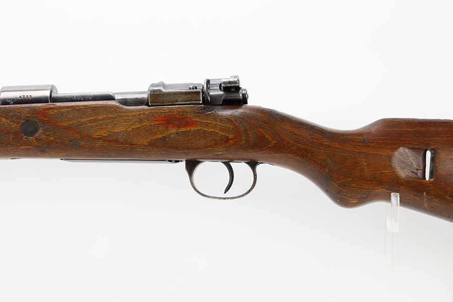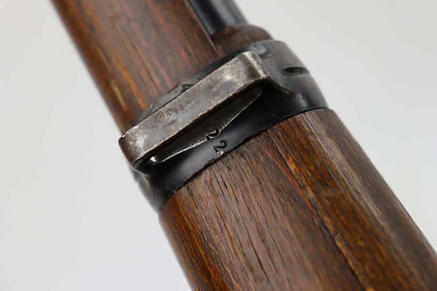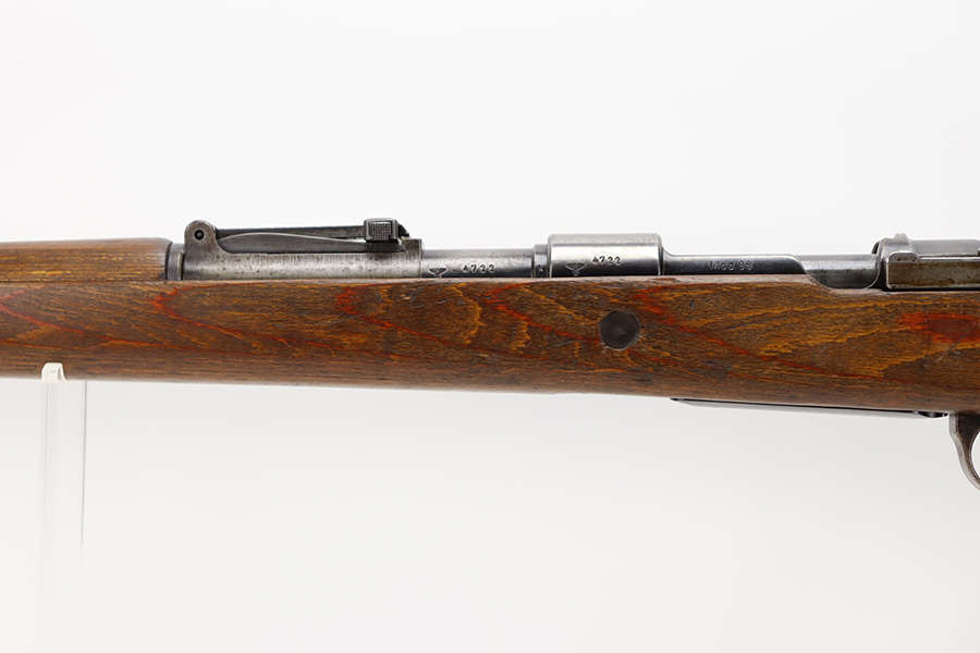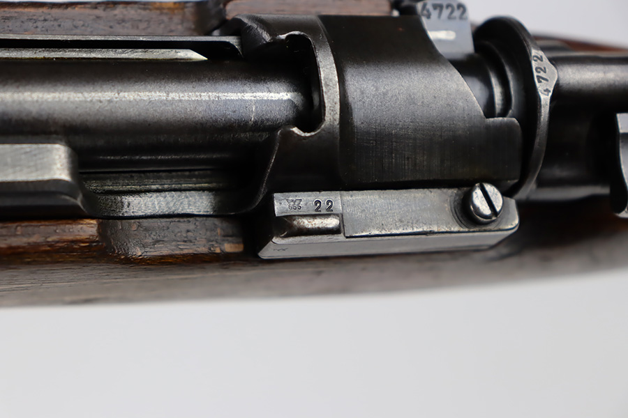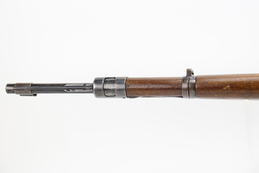 11/3/23 – This is a nice example of a BYF 42 Mauser K98 rifle issued to the Nazi military in 1942. It is all matching, but some of the small parts are not numbered. The stock is matching-numbered and has the proper waffen proofs. The bluing on the metal parts rates roughly 25% with obvious finish loss and spotty oxidation throughout. The wood furniture shows the typical signs of wear and use – minor dings and scratches throughout. The rifling in the bore is slightly worn with tiny pitting in the grooves.