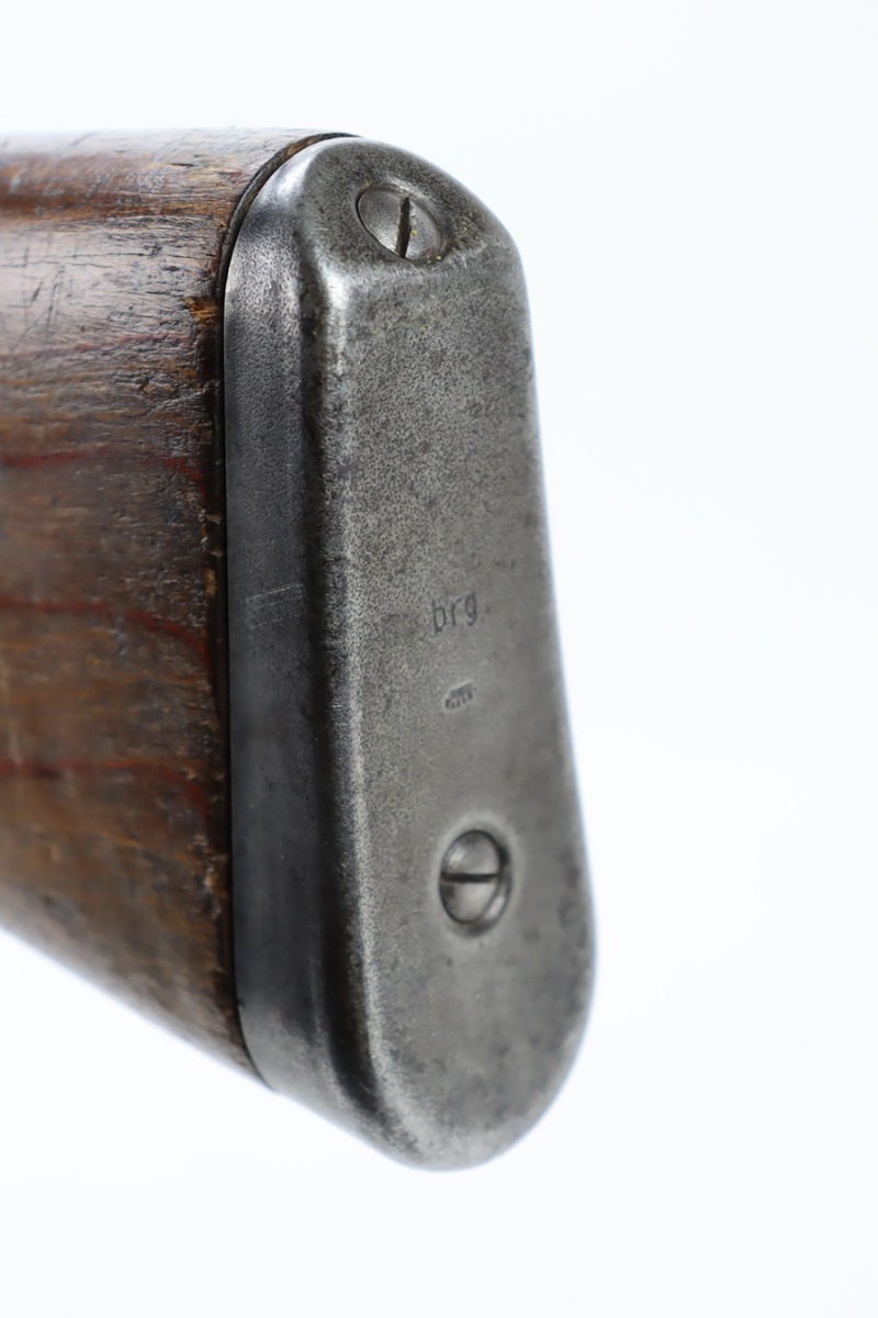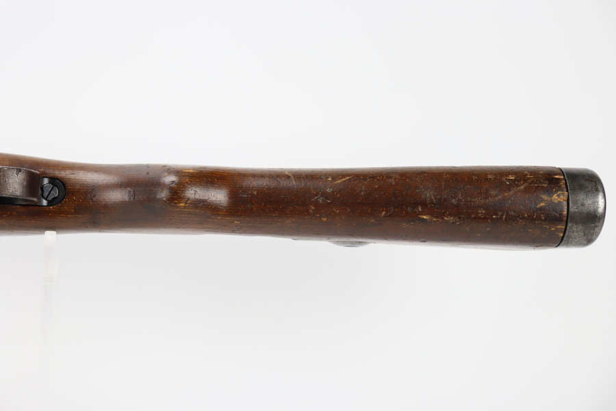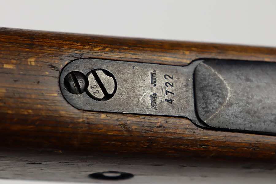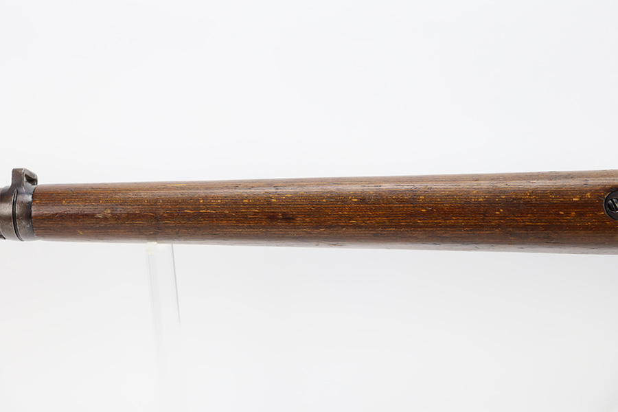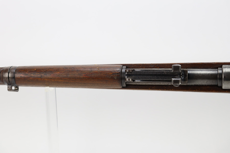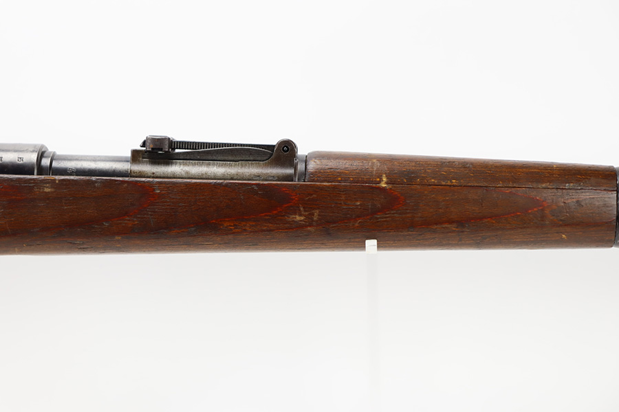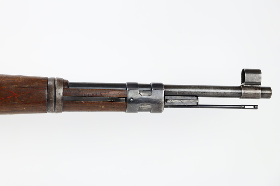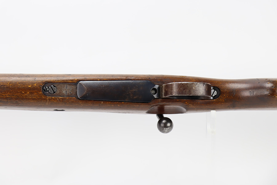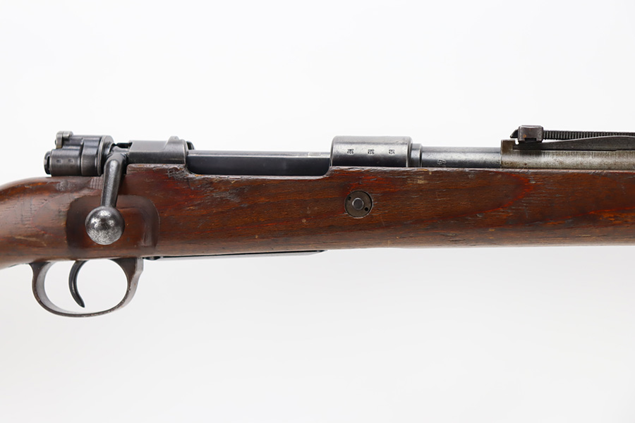 11/3/23 – This is a nice example of a BYF 42 Mauser K98 rifle issued to the Nazi military in 1942. It is all matching, but some of the small parts are not numbered. The stock is matching-numbered and has the proper waffen proofs. The bluing on the metal parts rates roughly 25% with obvious finish loss and spotty oxidation throughout. The wood furniture shows the typical signs of wear and use – minor dings and scratches throughout. The rifling in the bore is slightly worn with tiny pitting in the grooves.