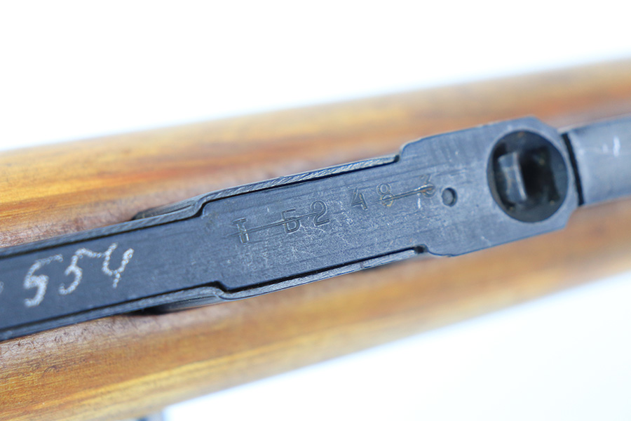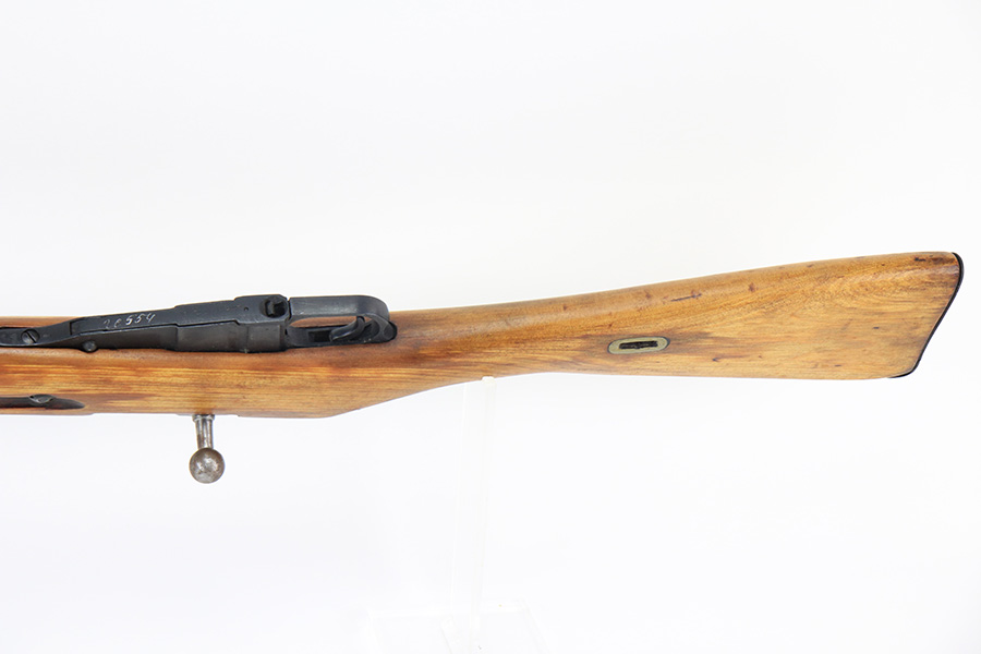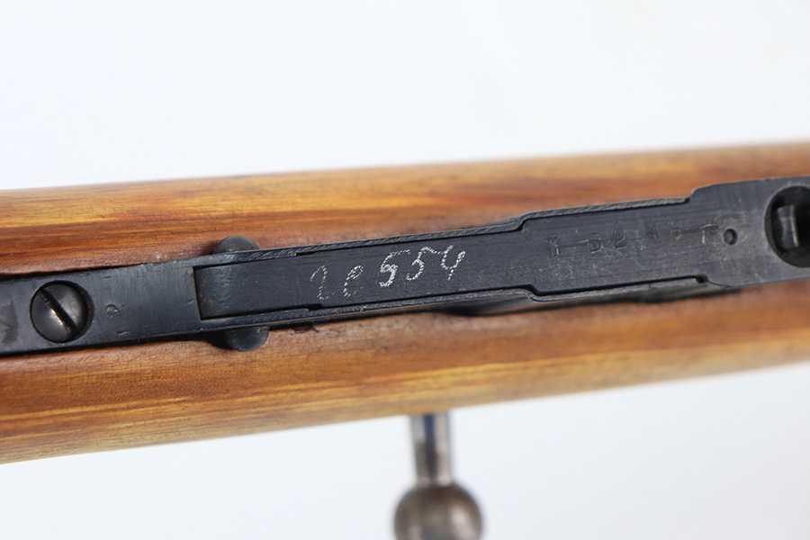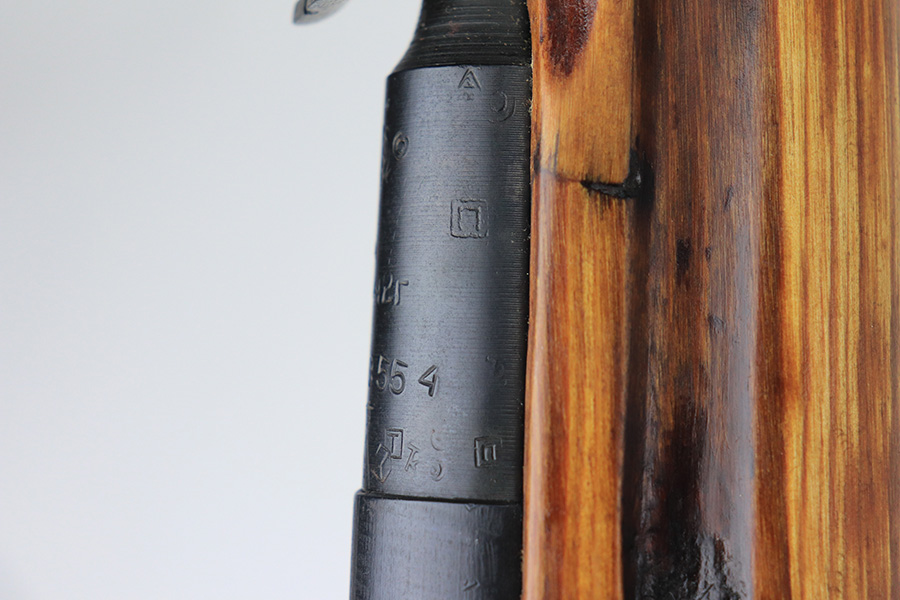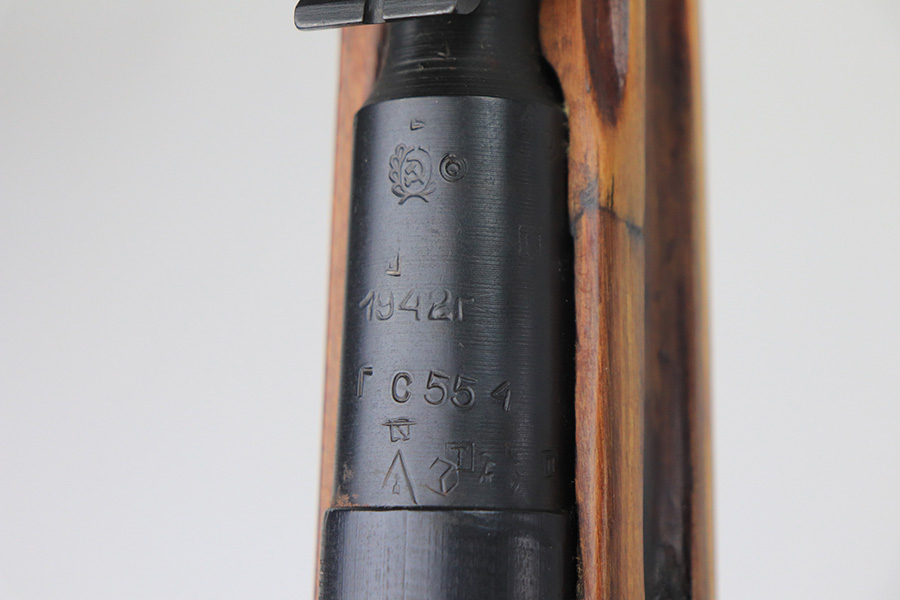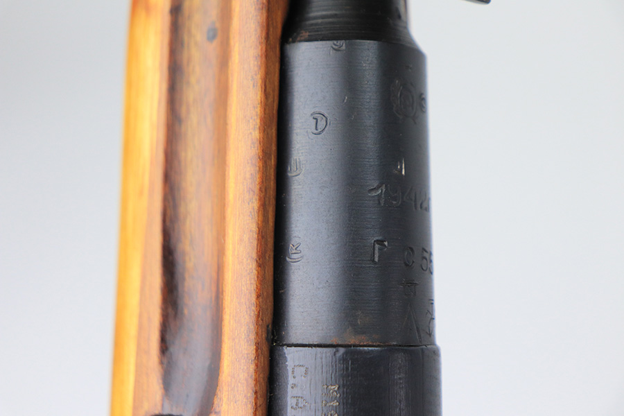 12/15/21 – This is a minty example of a Mosin Nagant Model 38 Rifle issued to the Soviet military in 1942. It has been arsenal reworked and refurbished. As a result, all of the parts have been numbered with an electro pencil to match the receiver and the finish is excellent. There is an import mark on the left side of the receiver. It has retained nearly all of its bluing with a few small areas of light surface oxidation here and there. The stock is in minty condition with no markings. It has likely been sanded. The bore is excellent – shiny with strong rifling.