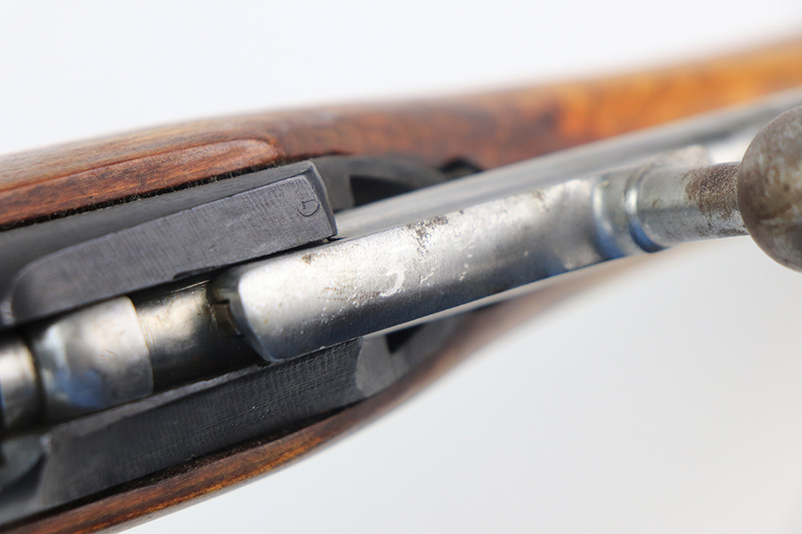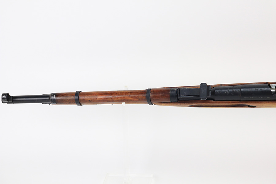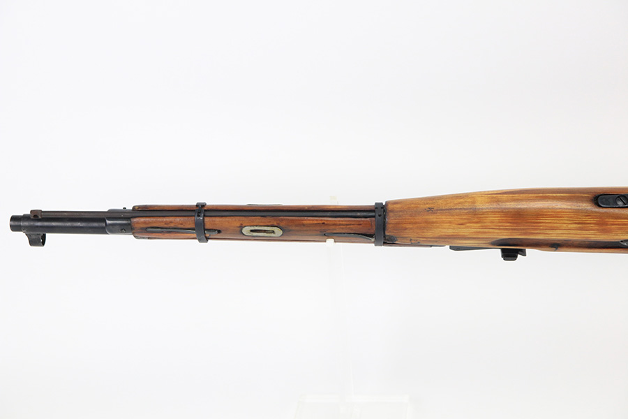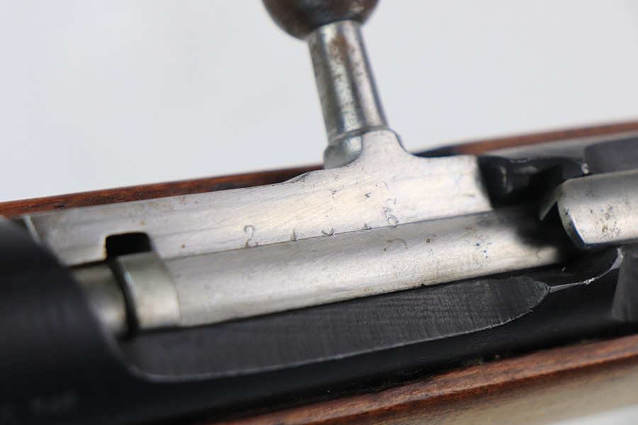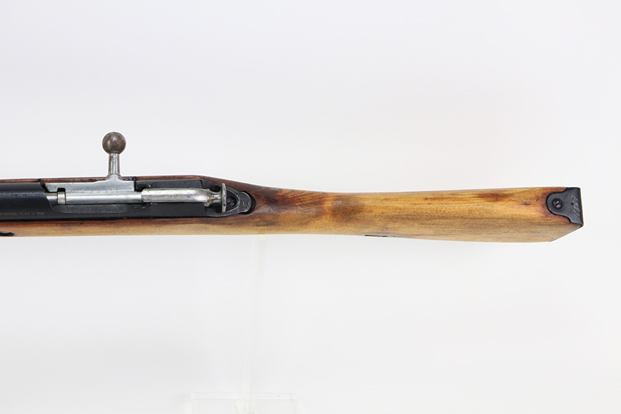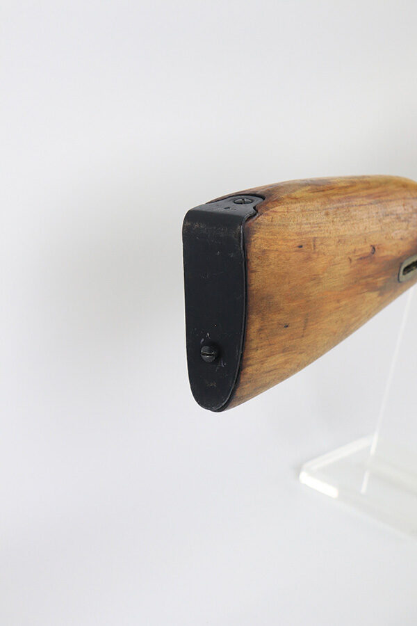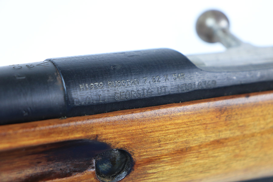 12/15/21 – This is a minty example of a Mosin Nagant Model 38 Rifle issued to the Soviet military in 1942. It has been arsenal reworked and refurbished. As a result, all of the parts have been numbered with an electro pencil to match the receiver and the finish is excellent. There is an import mark on the left side of the receiver. It has retained nearly all of its bluing with a few small areas of light surface oxidation here and there. The stock is in minty condition with no markings. It has likely been sanded. The bore is excellent – shiny with strong rifling.