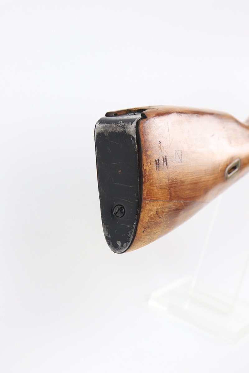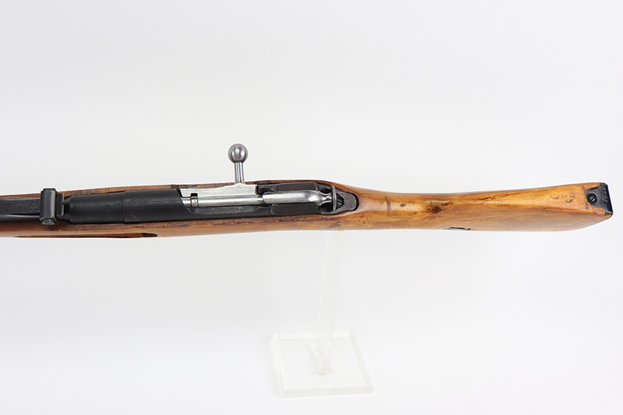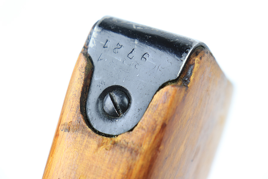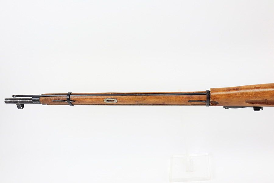4/7/22 – This is a very nice example of a Mosin-Nagant Model 1891/30 issued to the Russian military in 1942. It is all matching and has a faint import mark on the barrel. The entire gun has been arsenal-refurbished, so the bluing is really nice. There is light spotty wear around the muzzle and some light surface scuffs on the receiver and magazine. Wear on the high edges of the butt plate. The stock is un-numbered and very nice with light scratches throughout. Small wood repair on the right side of the action. The bore has good rifling with very minor pin-pricking in the grooves. Comes with a cleaning rod.