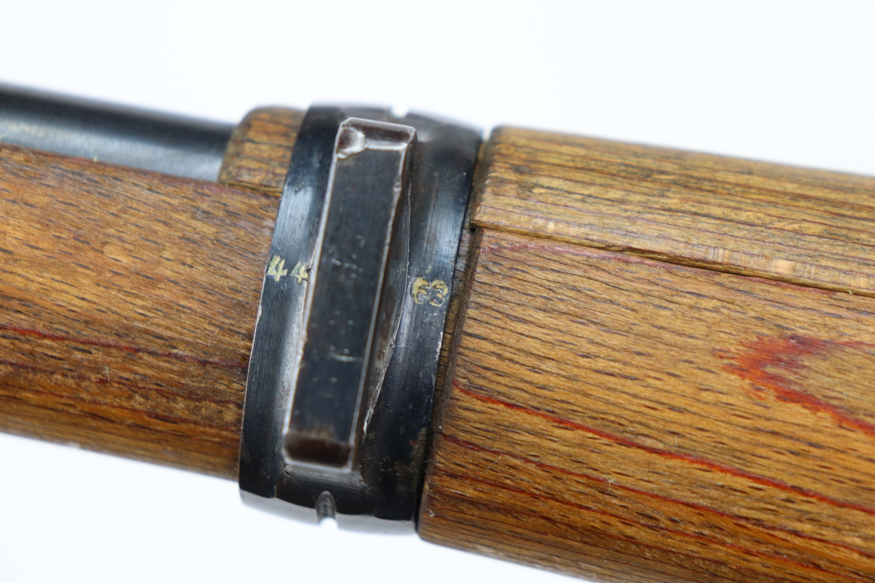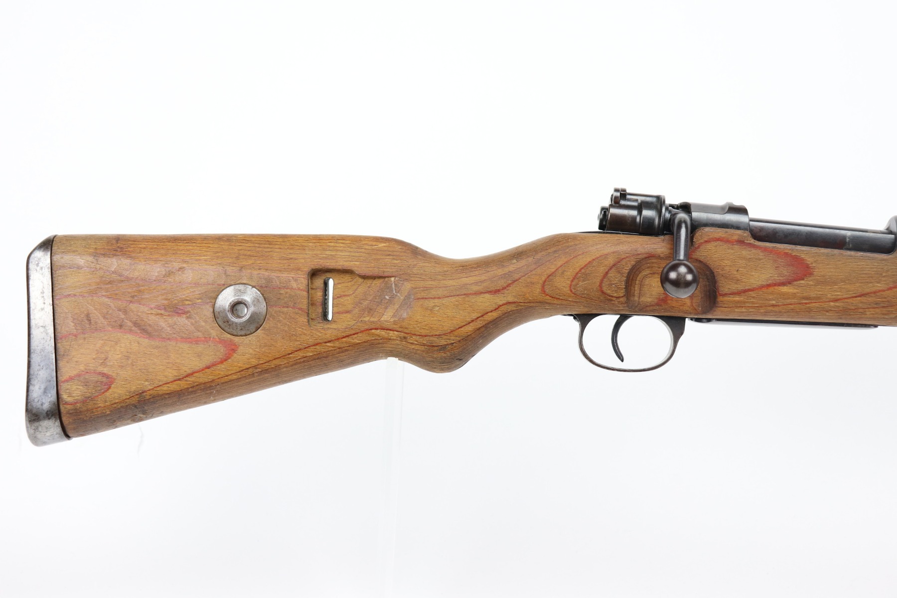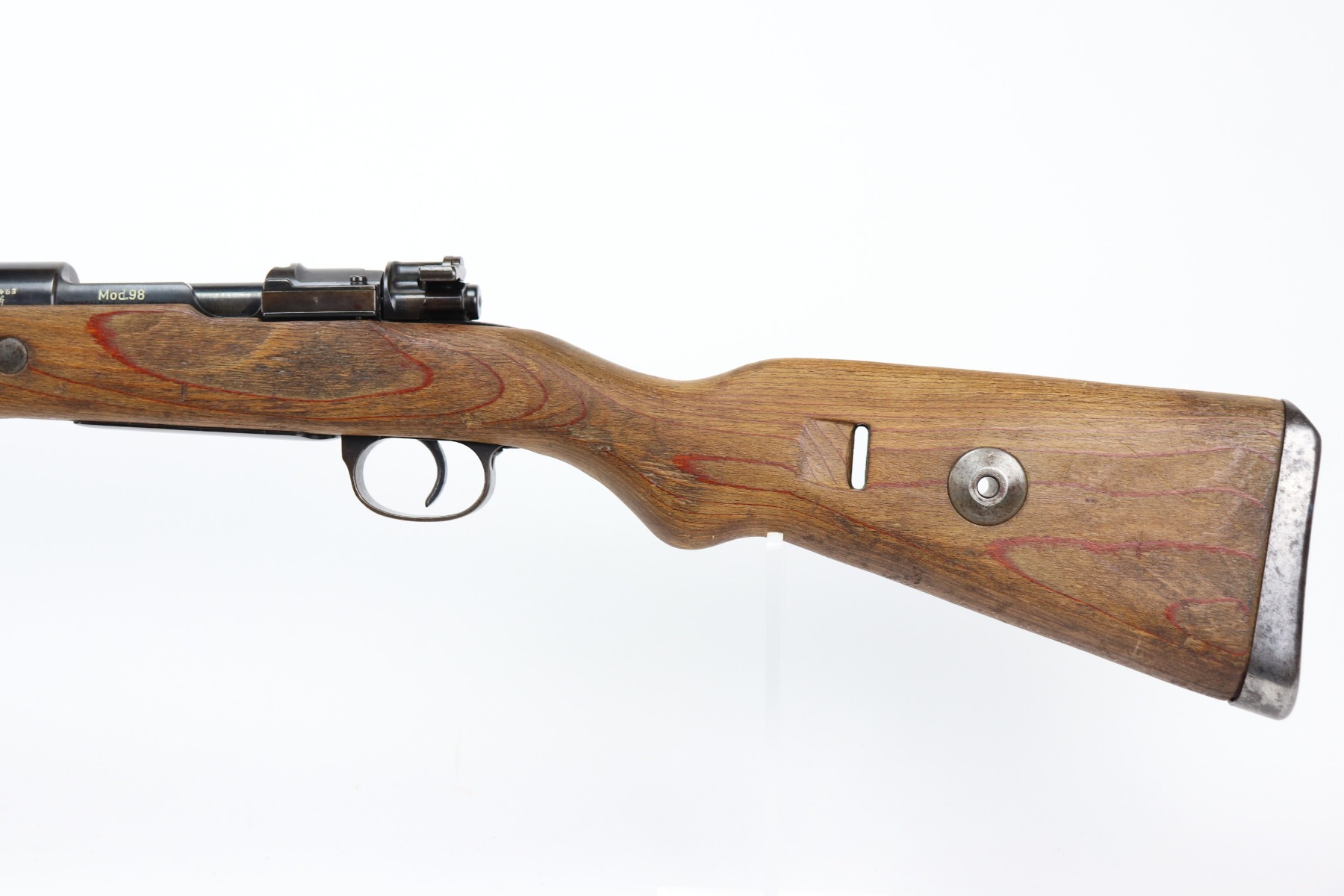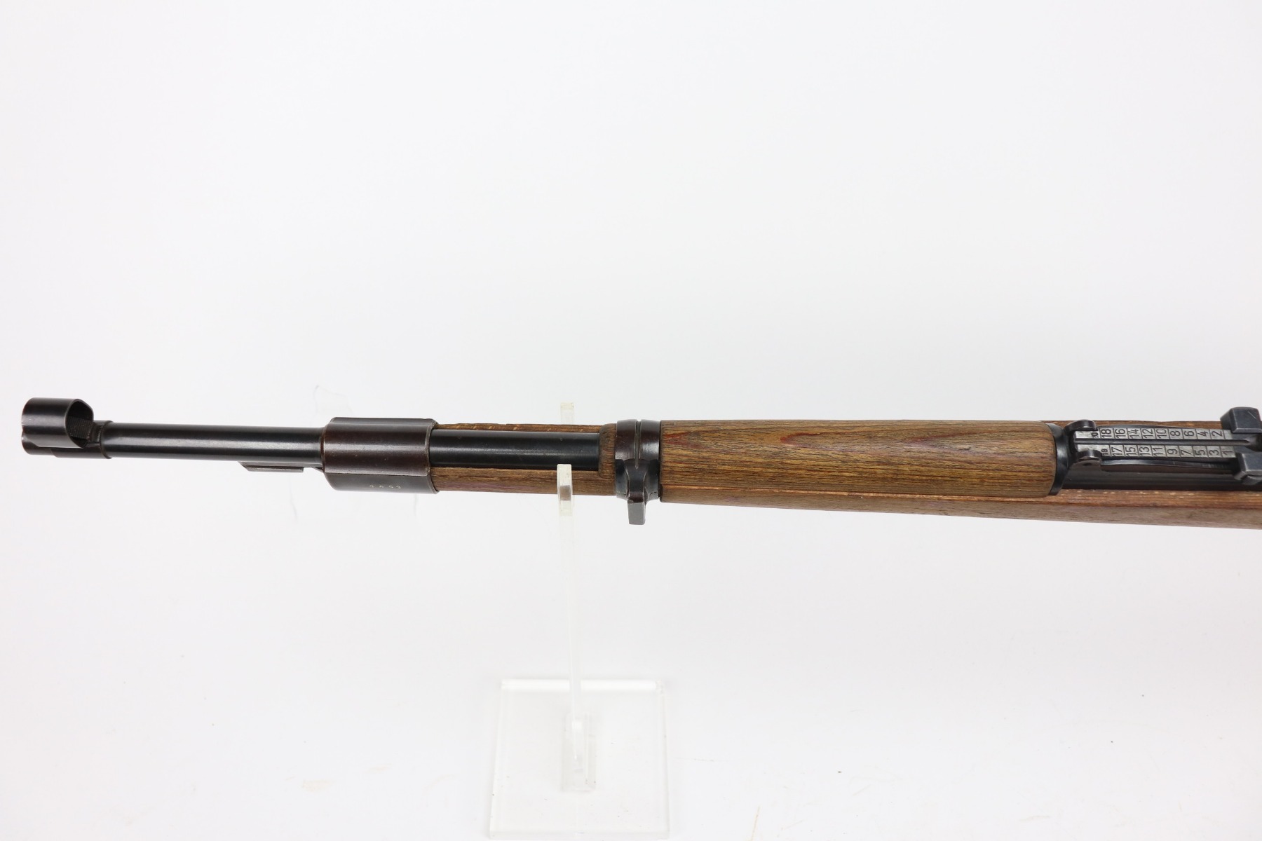 3/9/21 – This is an excellent example of a Berlin-Lubecker K98 issued to the Nazi military in 1942. All numbered parts are numbered, and there are waffen proofs throughout. The stock is also matching, but there are no visible waffen proofs. May have been lightly sanded. The safety lever is un-numbered so may have been replaced. The gun is in excellent condition. It has retained the majority of its finish. There are areas of minor wear around some of the high edges. The stock is very nice with minor dings and bruises here and there. The bore is excellent – shiny with strong rifling.