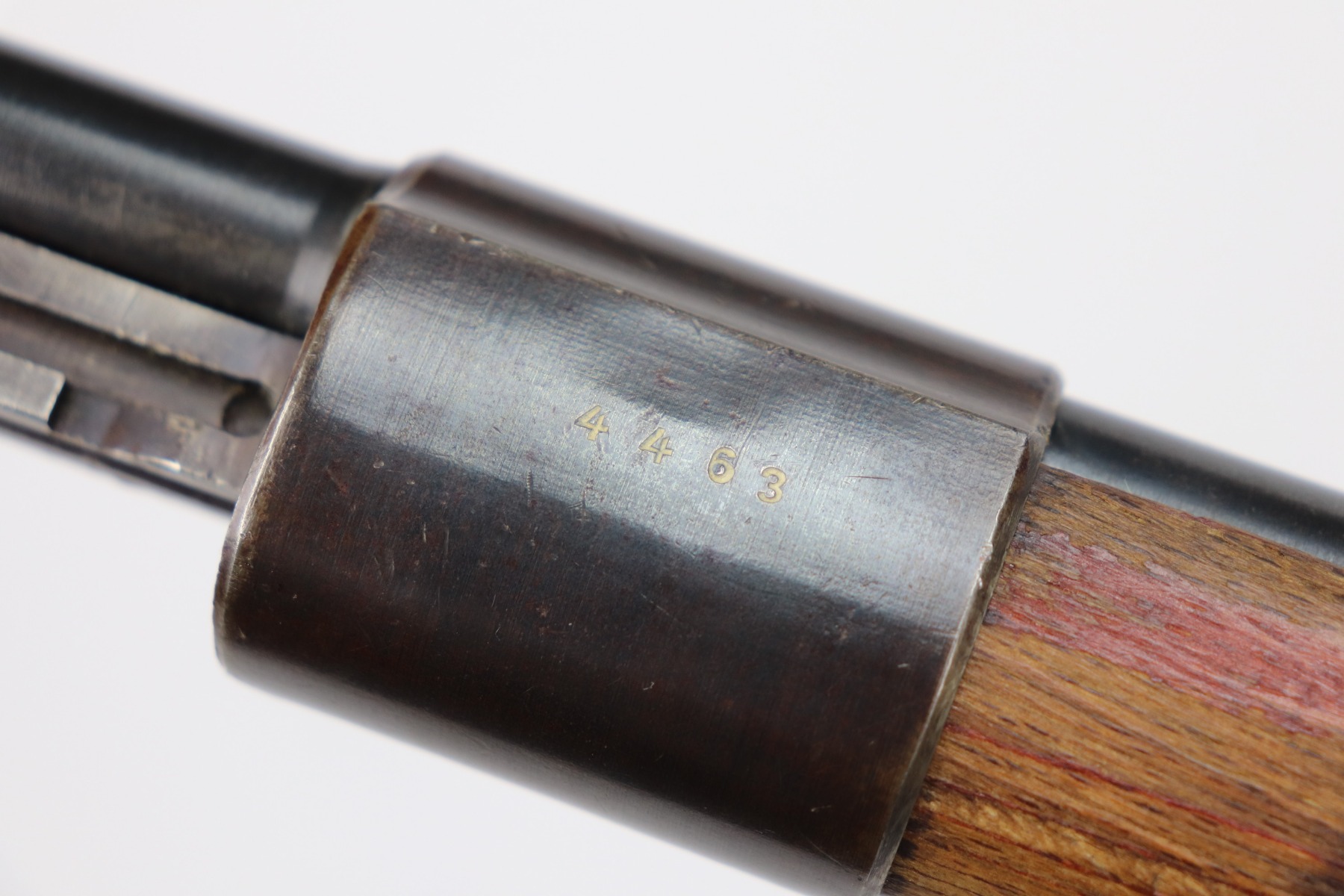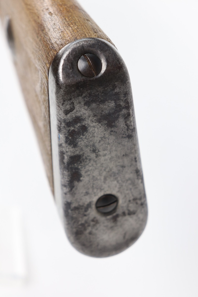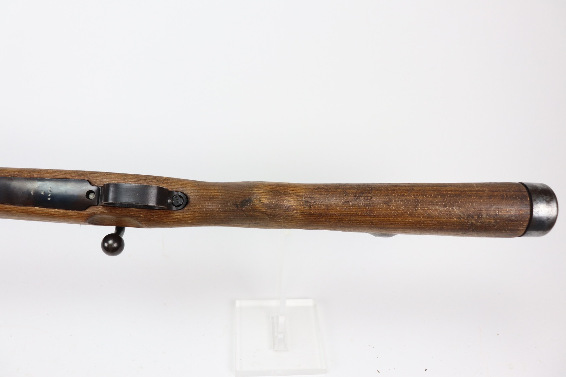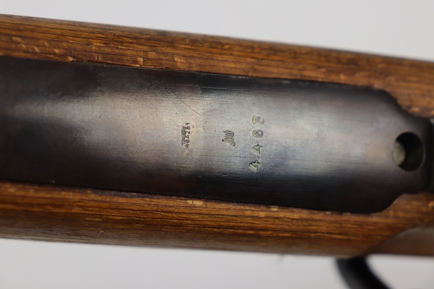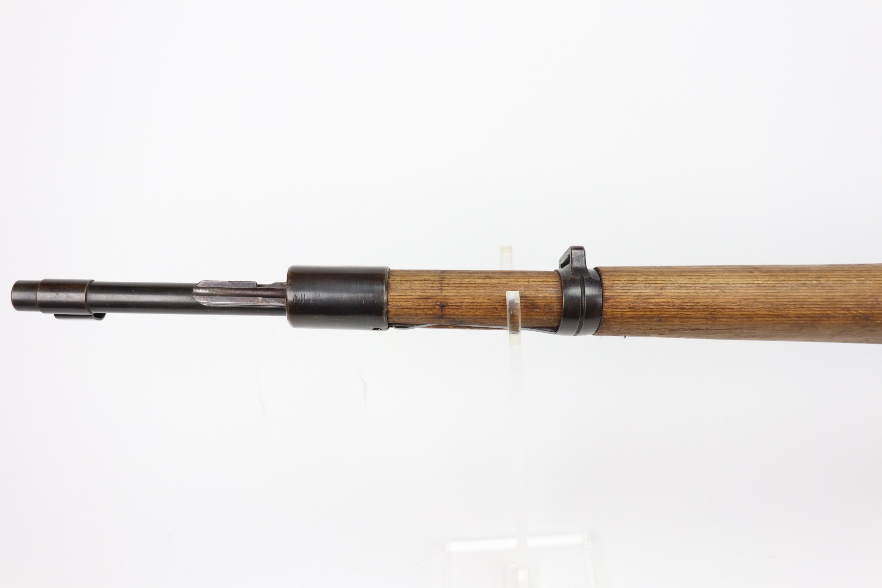 3/9/21 – This is an excellent example of a Berlin-Lubecker K98 issued to the Nazi military in 1942. All numbered parts are numbered, and there are waffen proofs throughout. The stock is also matching, but there are no visible waffen proofs. May have been lightly sanded. The safety lever is un-numbered so may have been replaced. The gun is in excellent condition. It has retained the majority of its finish. There are areas of minor wear around some of the high edges. The stock is very nice with minor dings and bruises here and there. The bore is excellent – shiny with strong rifling.