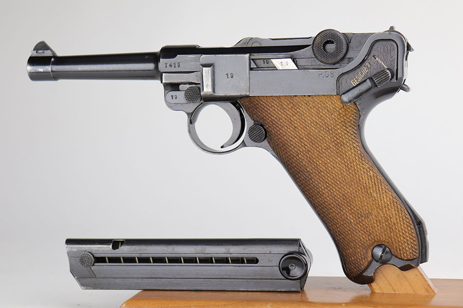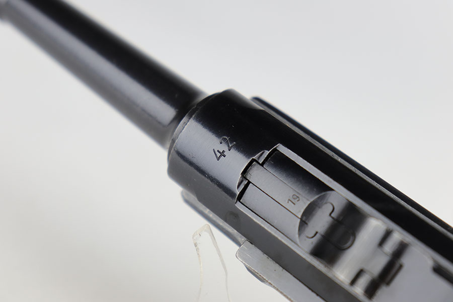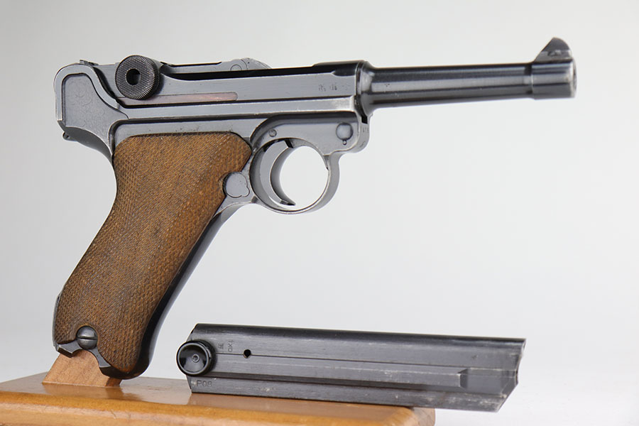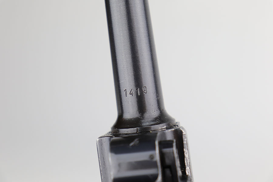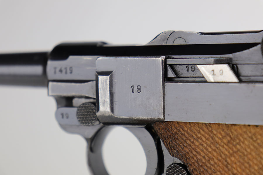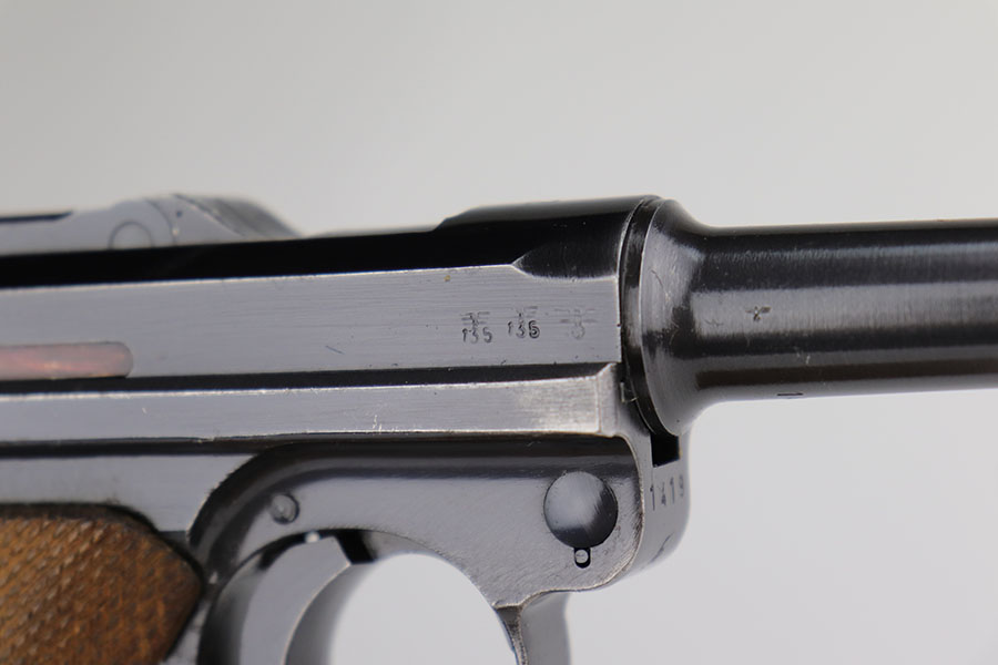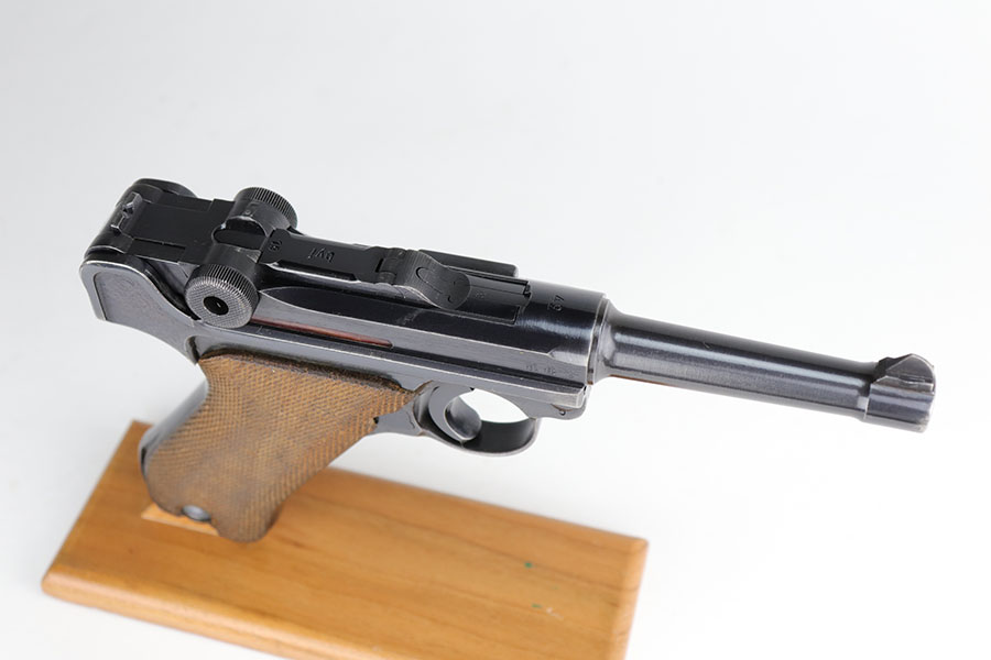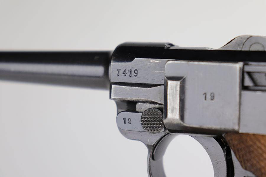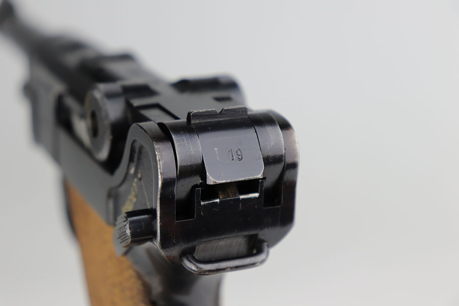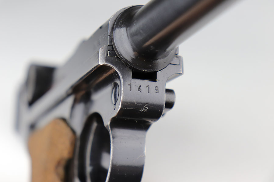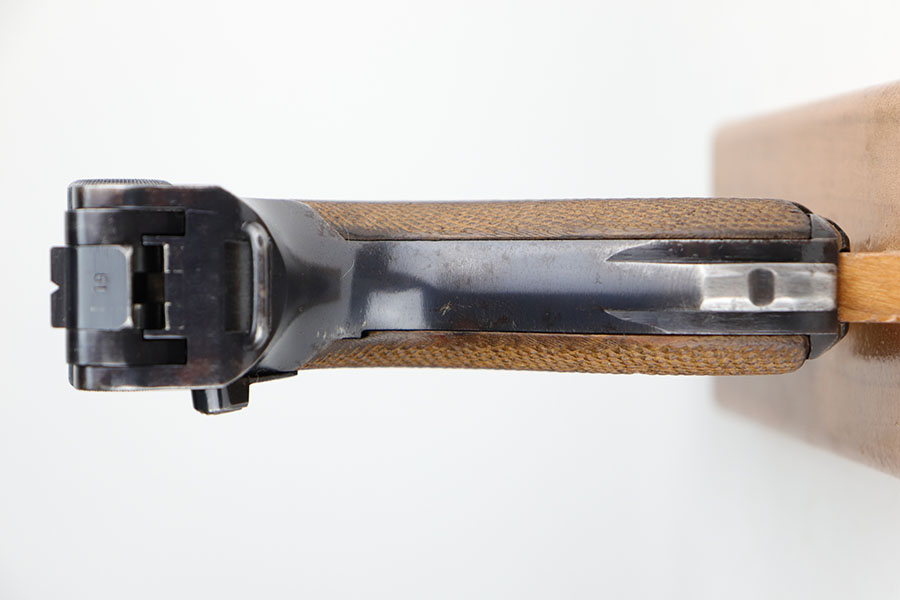 12/10/20 – This is an all matching and original Army Mauser Luger from 1942. Sometimes referred to as a “brown recluse” by collectors, it has original wood grips with black widow style magazine. Original blue rates at about 92% with minor wear on sideplate, muzzle, stock lug and bottom of front strap. Minty bore. Excellent grips that are unmarked.