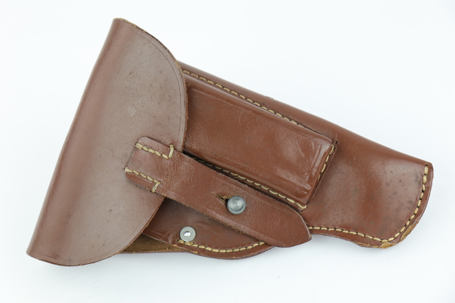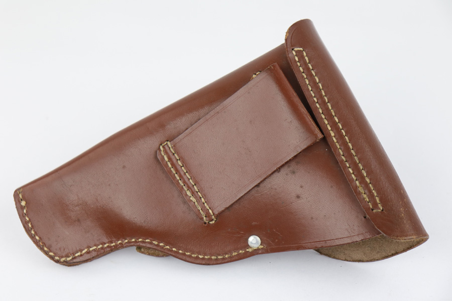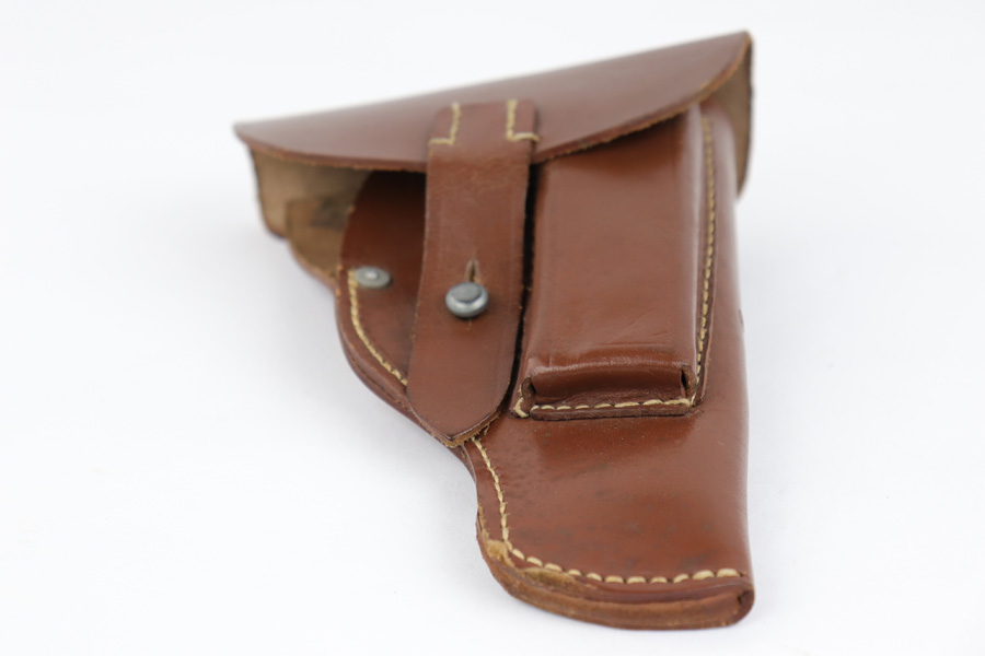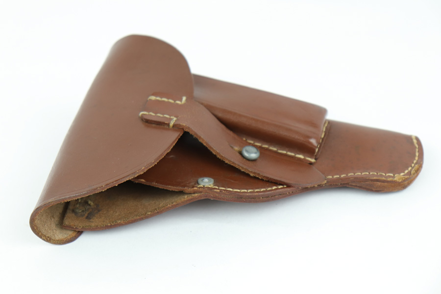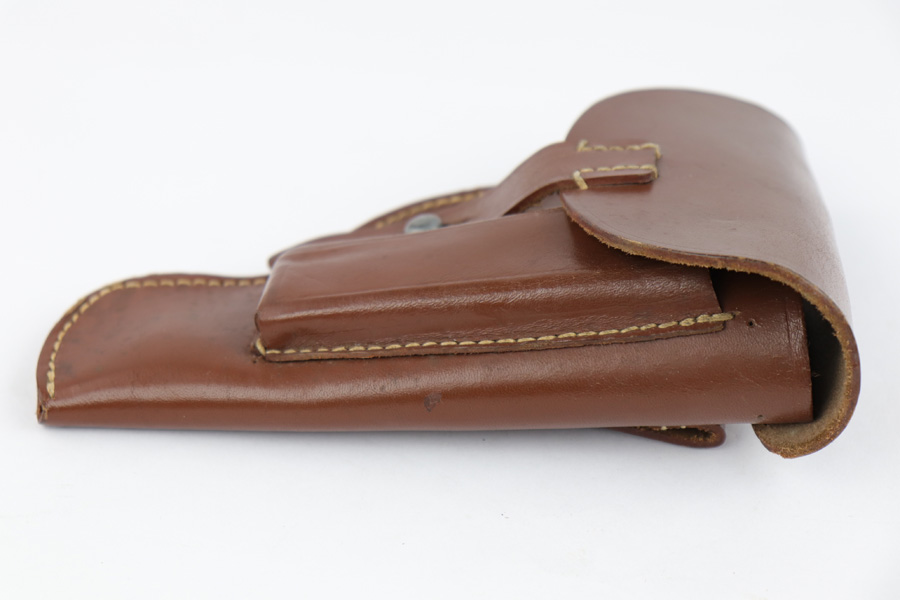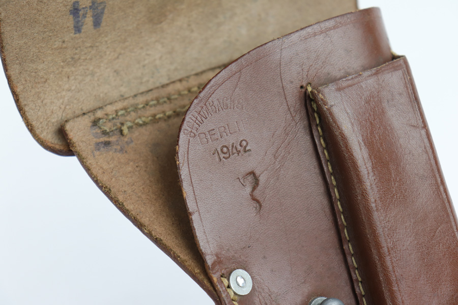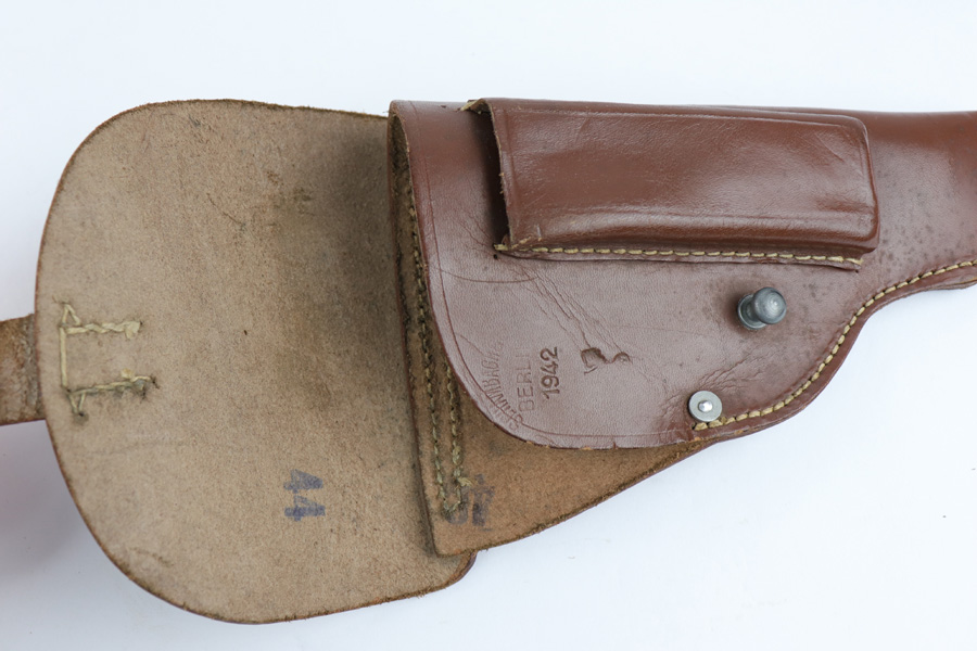 5/8/19 – This is an original 1942 dated Walther PPK (or similar sized pistol) holster. The holster is dated, police eagle stamped, and maker stamped under the closure strap. Minty leather is firm and clean. All original stitching. Very hard to upgrade police holster!