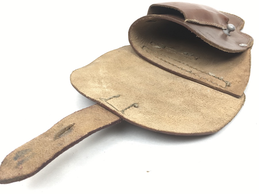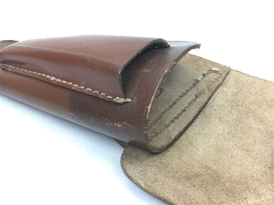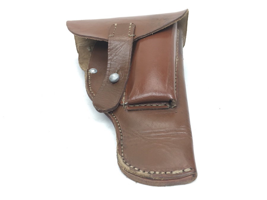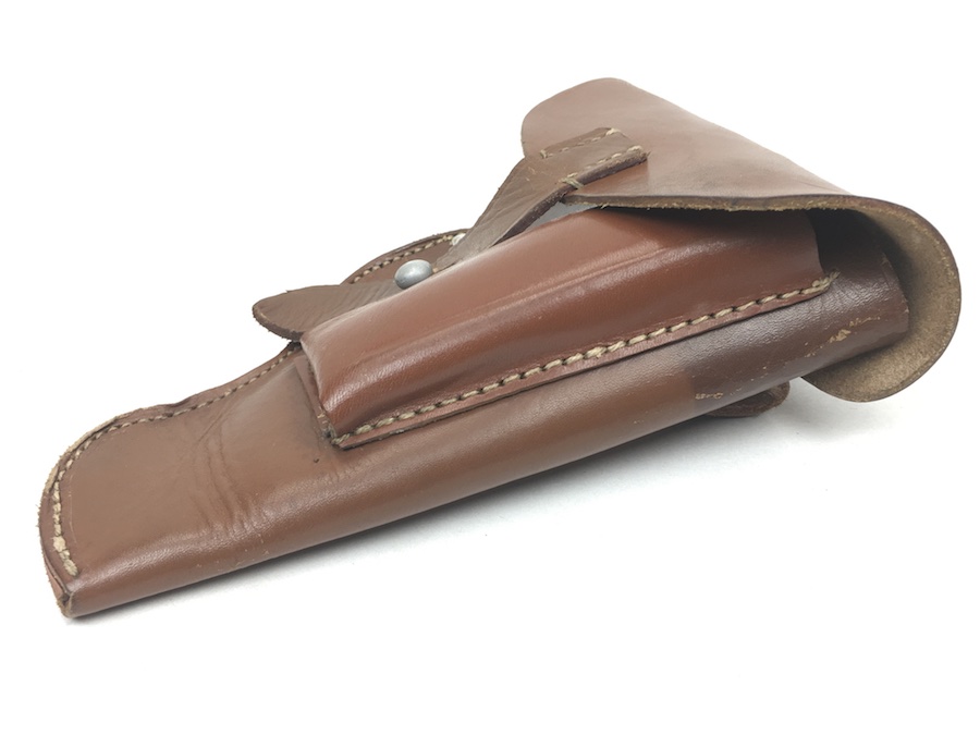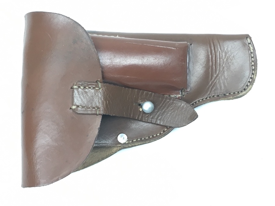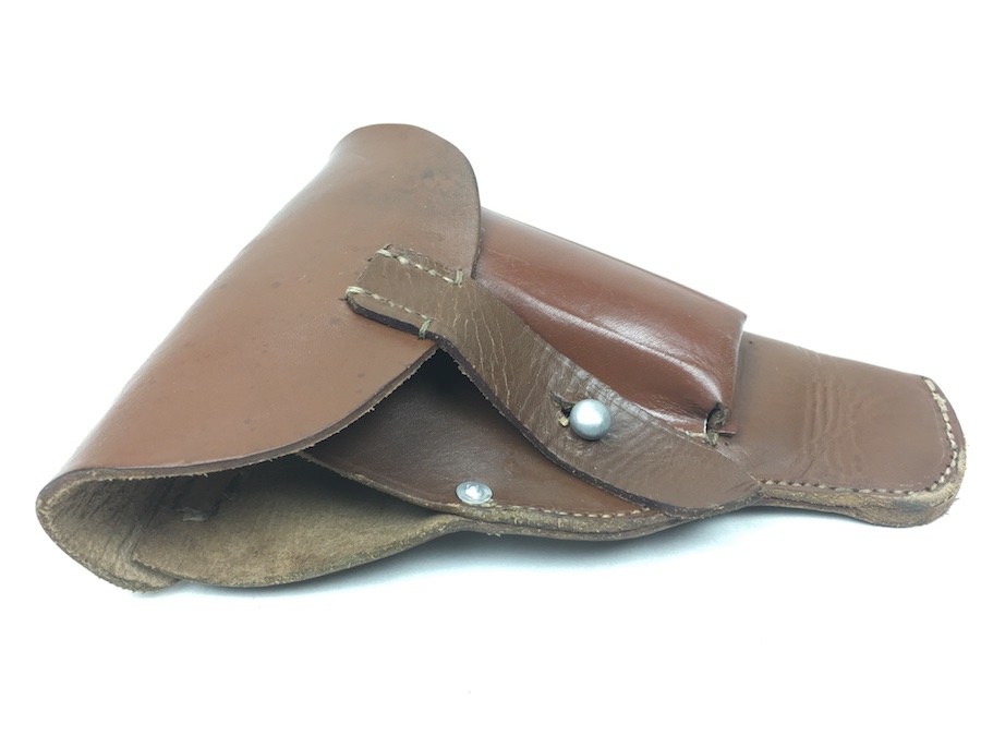 5/28/19 – This is an original 1942 dated Walther PPK (or similar sized pistol) holster. The holster is dated, police eagle stamped, and maker stamped under the closure strap. Some minor scuffs and stains but minty leather is firm and clean. All original stitching. Very hard to upgrade police holster!