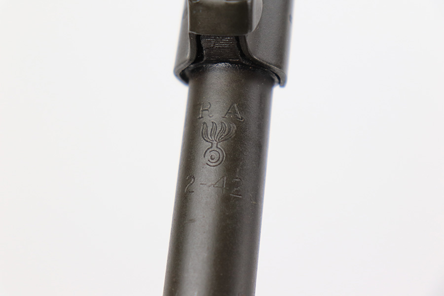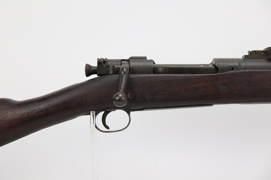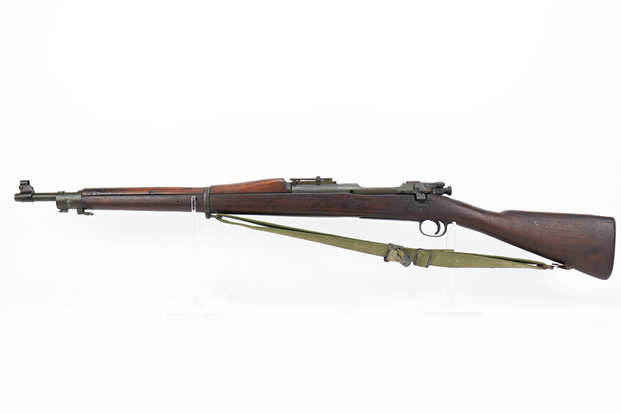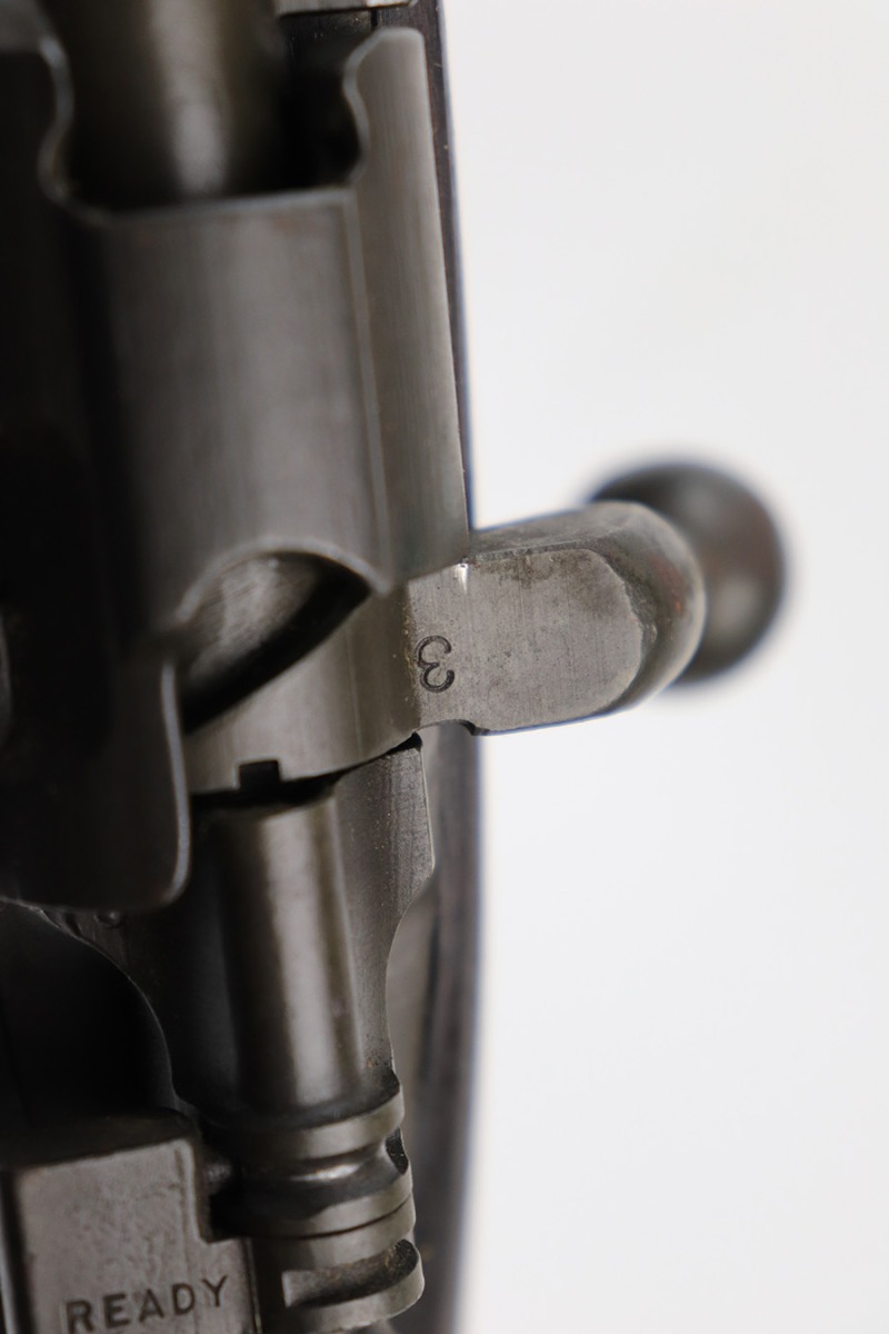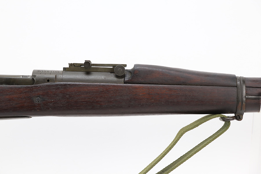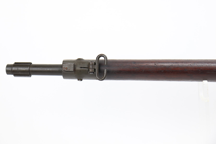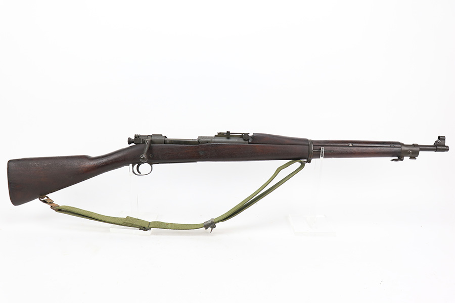5/10/23 – This is an excellent example of a Remington Model 1903 issued to the US military in 1942. The barrel is Remington-marked and dated February of 1942. No visible markings on the stock except for a carved “W” on the very front under the barrel. The gun comes with a green canvas sling and a flaming bomb-proofed front sight hood. This is an arsenal-refurbished example, so the finish is excellent. Virtually no actual finish loss. The wood stock is excellent for the most part, but there are some small bruises here and there. A couple of small gouges around the safety lever. There is also a repaired hairline crack in the upper handguard. The bore has good rifling, but there is pin-pricking in the grooves.