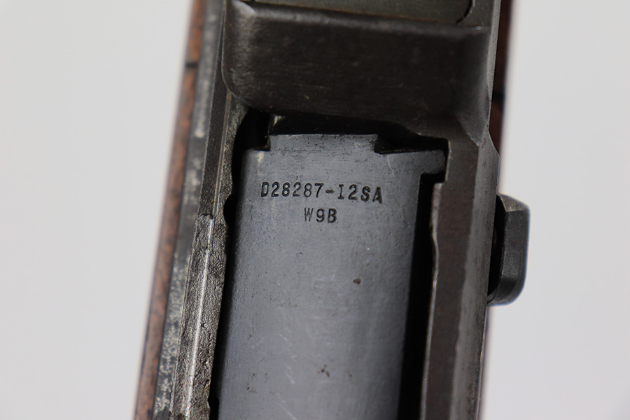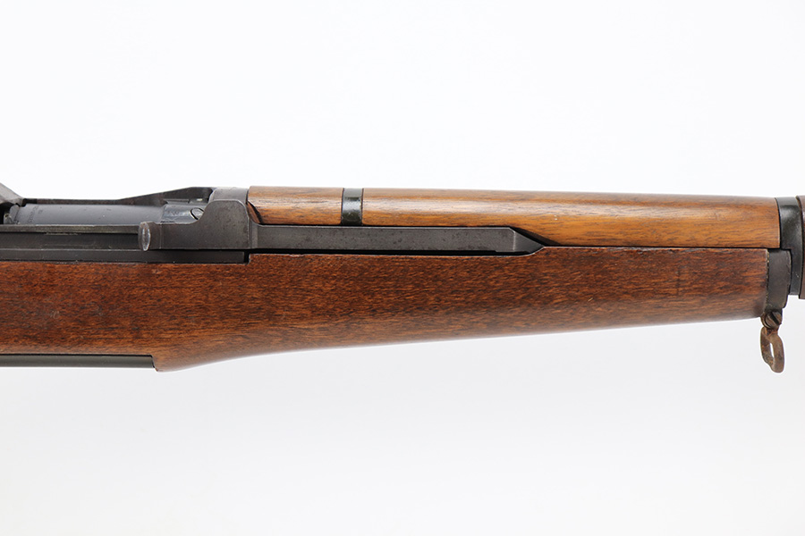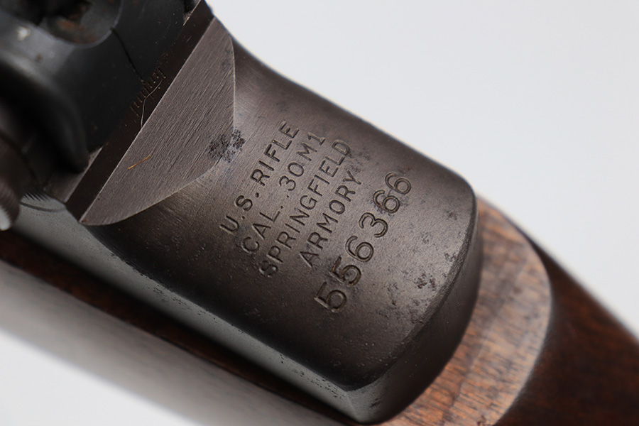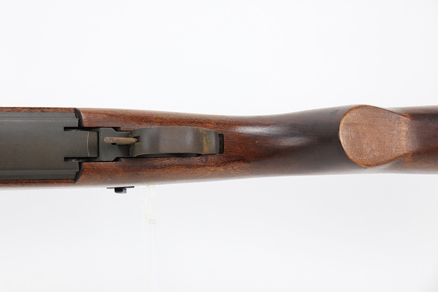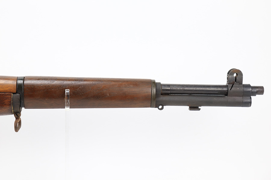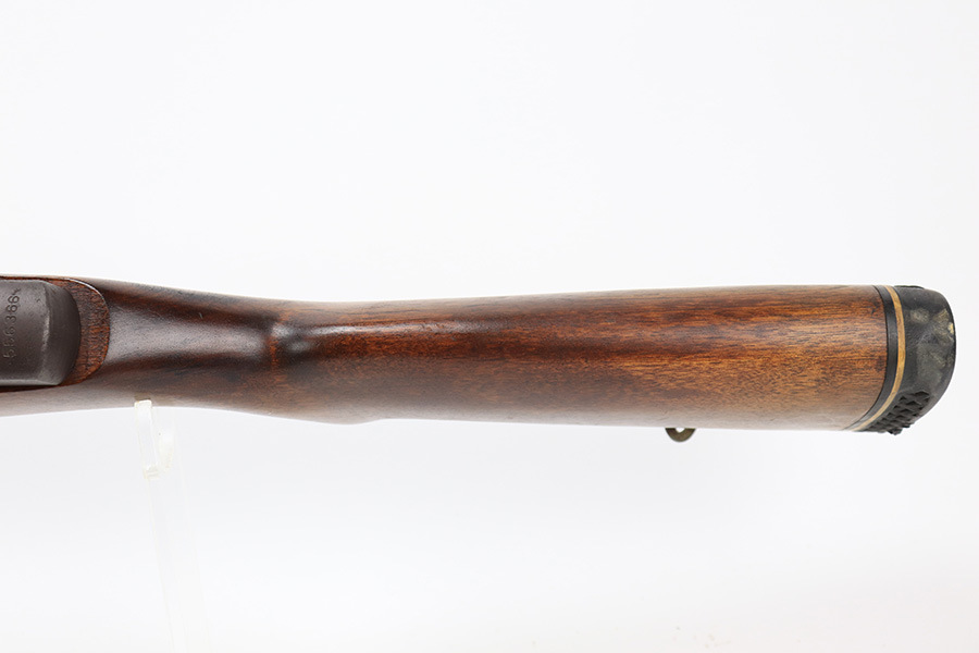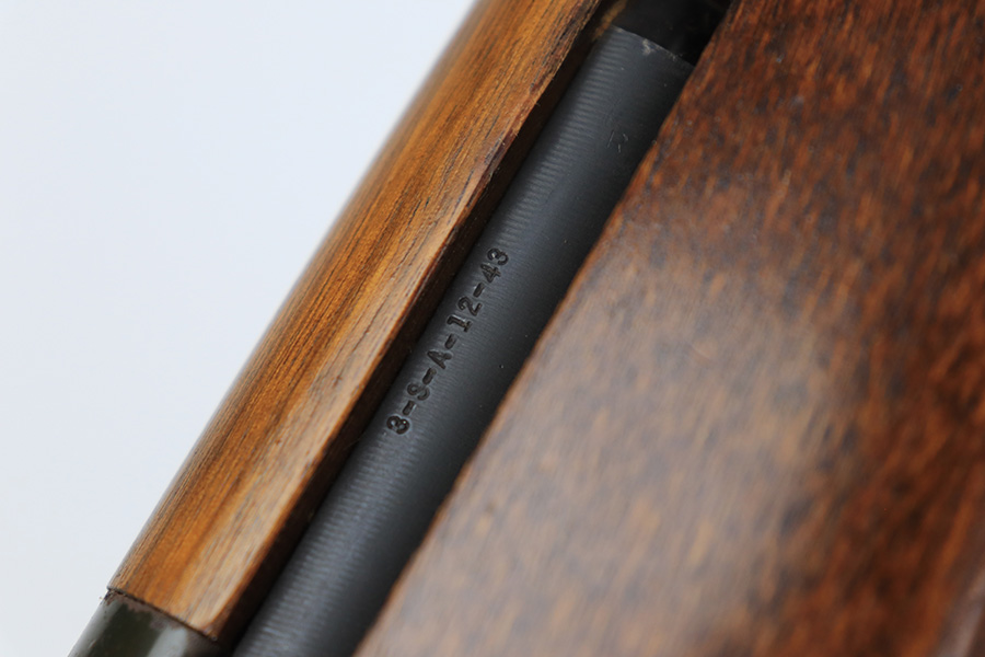 6/19/23 – This is a Springfield M1 Garand issued to the US military during WW2. The receiver dates to about April of 1942. The barrel is Springfield-marked and dated December of 1943. The wood stock and safety lever have been replaced. The gun comes with a pouch that contains a cleaning kit. There is very little actual finish loss on the metal parts. However, there is noticeable spotty oxidation and areas of pin-pricking throughout. Pitting around the muzzle. There are also some areas of surface rust, most noticeable on the sling swivels and around the trigger guard. The bore has spotty surface oxidation and pitting throughout. Muzzle reading: 0. Throat reading: 0.