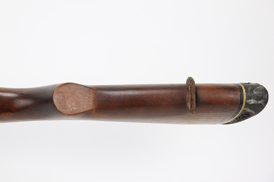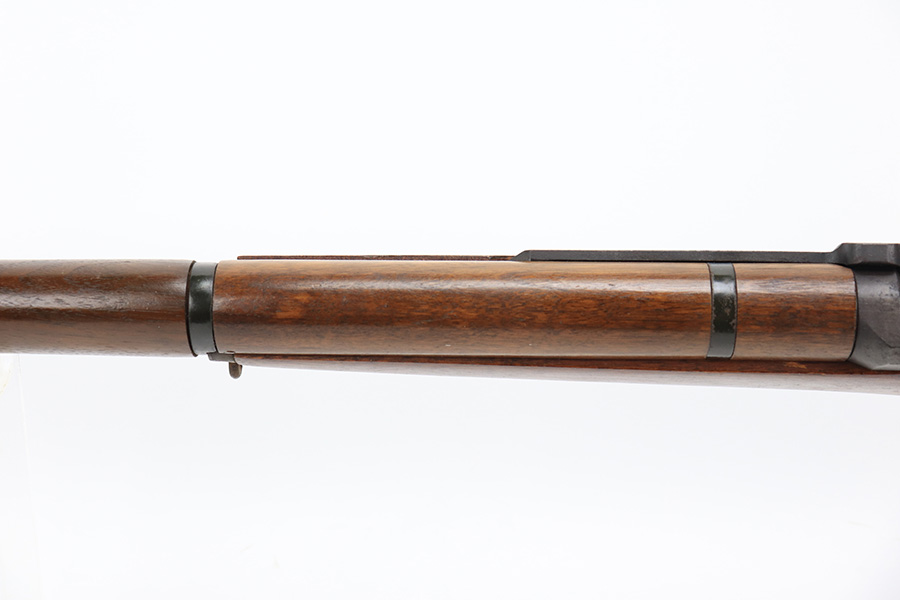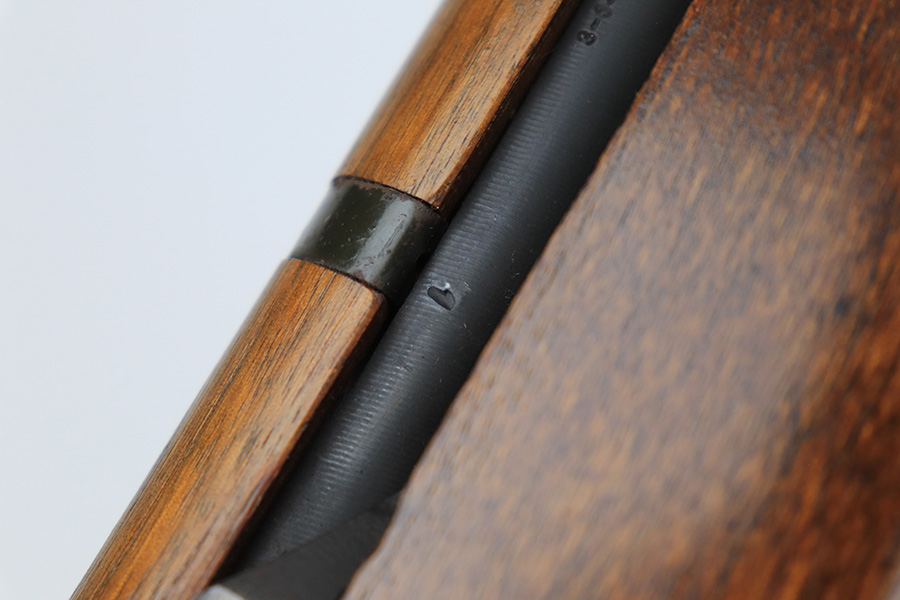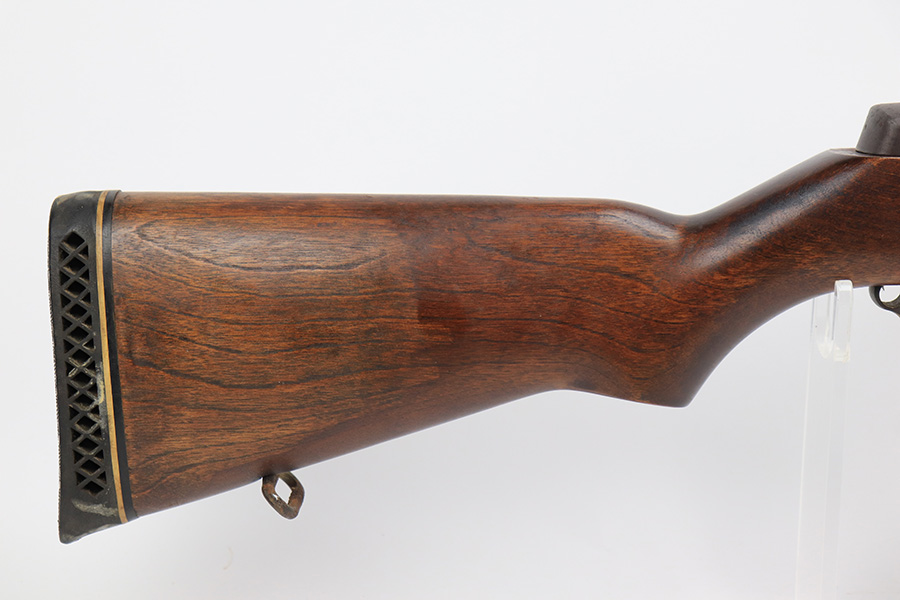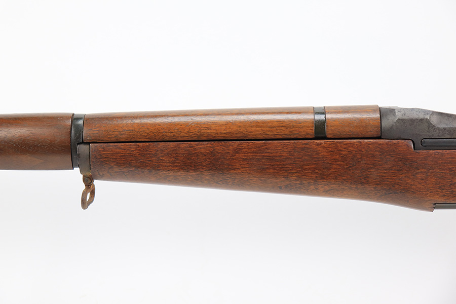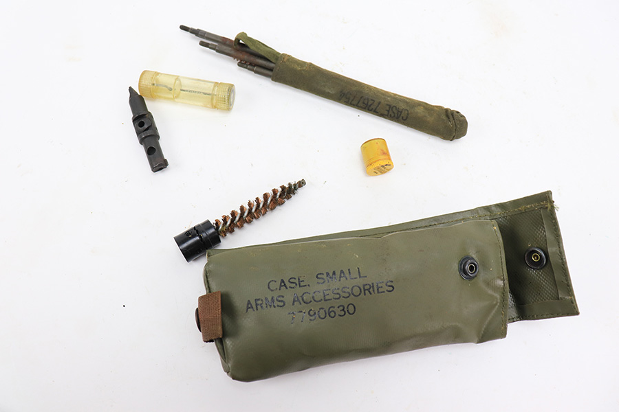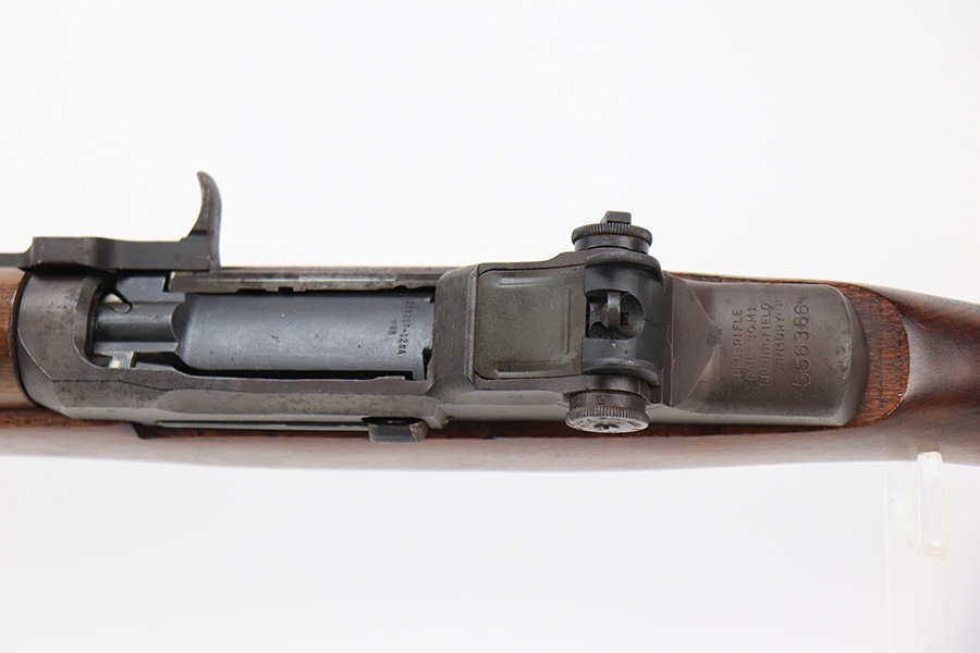 6/19/23 – This is a Springfield M1 Garand issued to the US military during WW2. The receiver dates to about April of 1942. The barrel is Springfield-marked and dated December of 1943. The wood stock and safety lever have been replaced. The gun comes with a pouch that contains a cleaning kit. There is very little actual finish loss on the metal parts. However, there is noticeable spotty oxidation and areas of pin-pricking throughout. Pitting around the muzzle. There are also some areas of surface rust, most noticeable on the sling swivels and around the trigger guard. The bore has spotty surface oxidation and pitting throughout. Muzzle reading: 0. Throat reading: 0.