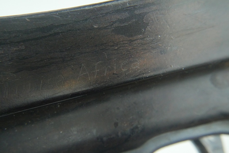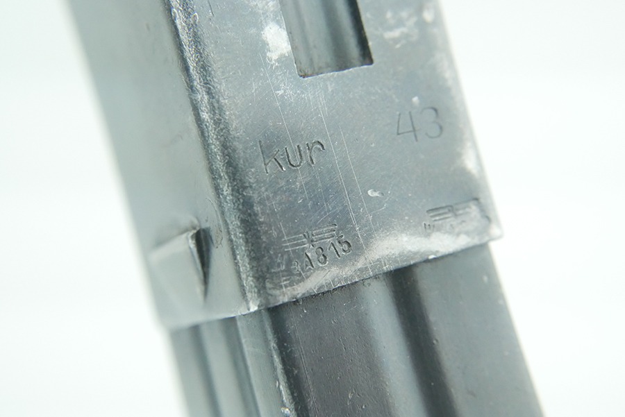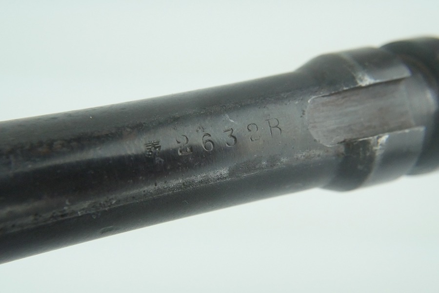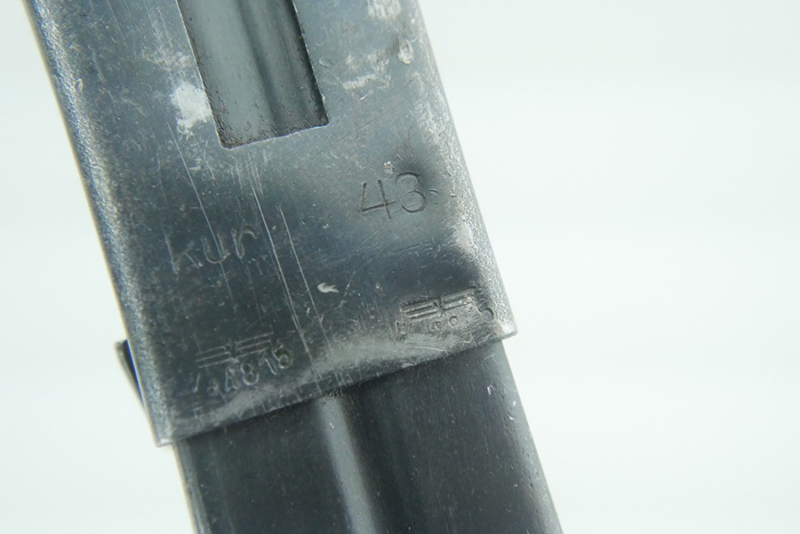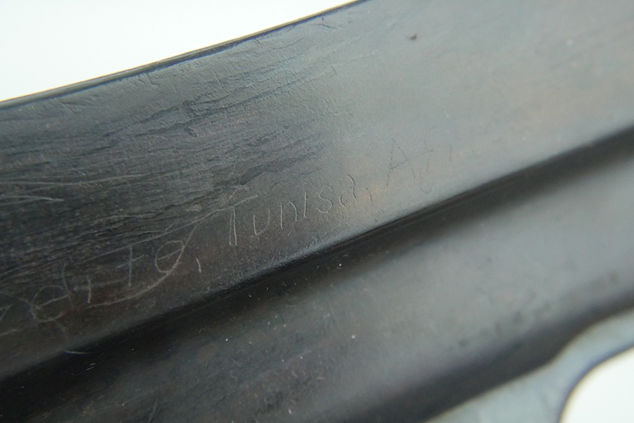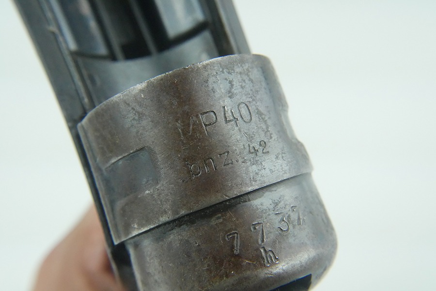 11/11/24 – This is a nice MP40 parts kit as made by Steyr for the Nazi military. The parts are all original WW2, but they are mismatched. Listing includes the barreled receiver tube, pistol grip, folding stock, bolt, firing pin, bolt carrier, and magazine. The parts have retained a fair amount of their original finish, but there is general high edge wear and light scratches and handling marks throughout. The left side of the lower of the parts kit has “1943 Bizerte, Tunisa, Africa” lightly scratched into it. We believe this might be referring to where this MP40 might have been captured, which would be Bizerte, Tunisia, Africa. The city of Bizerte was occupied up until the 7th of May, 1943 by the German’s and the Italians.
