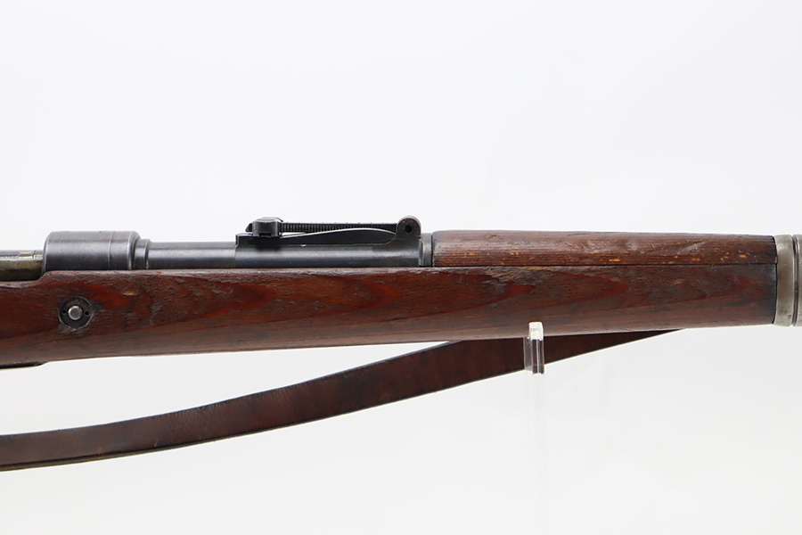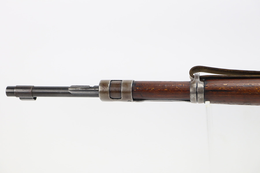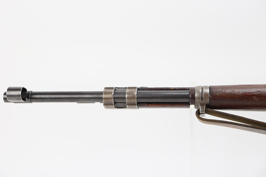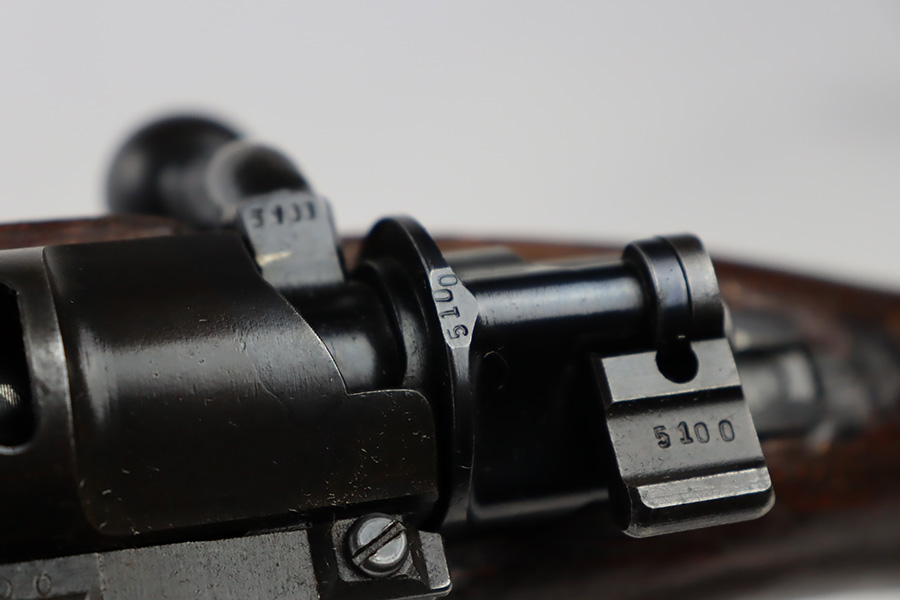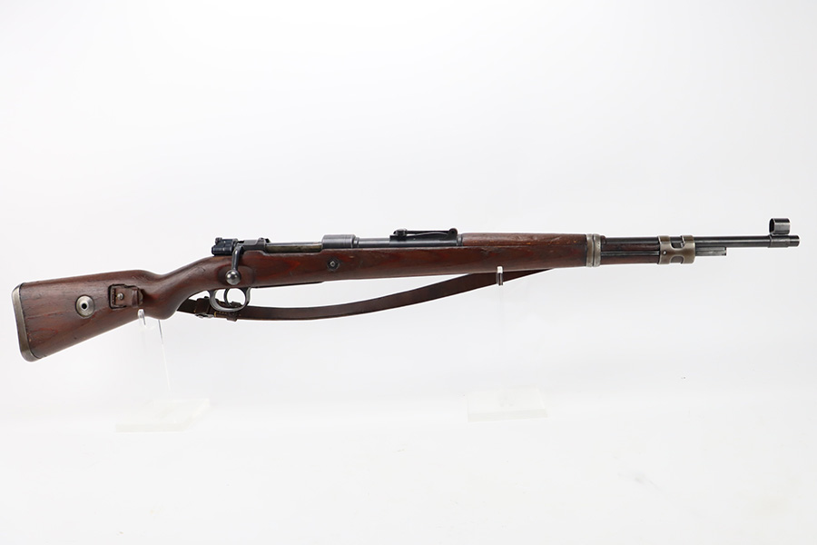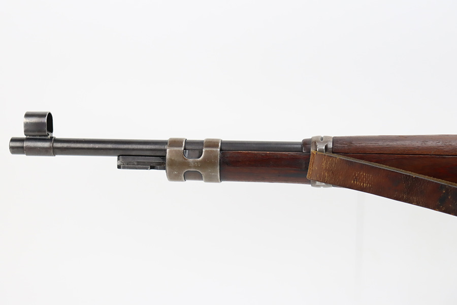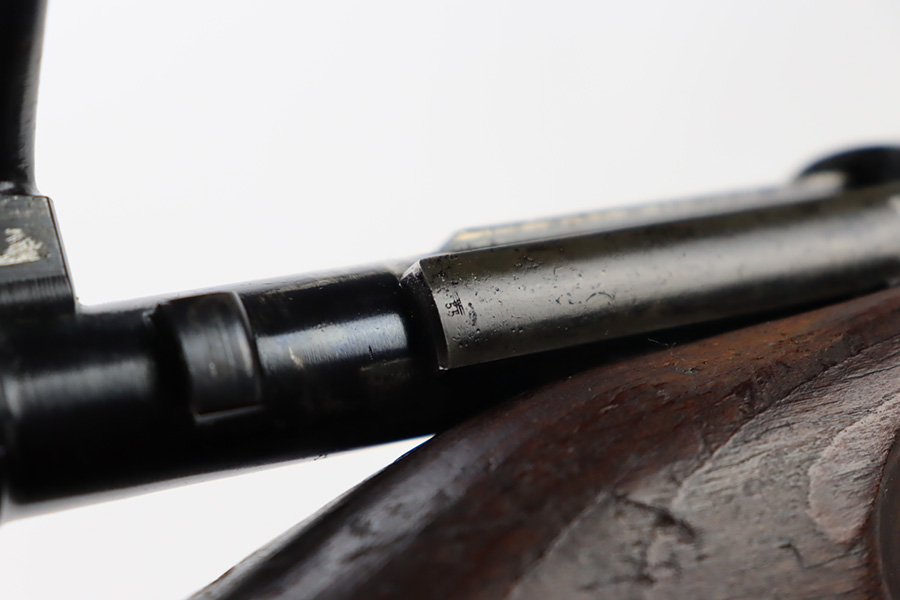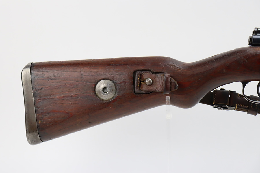 10/5/23 – This is a very nice example of a “dou 42” code Waffenwerke Brunn K98 issued to the Nazi military in 1942. It is all matching except for the stock. The bluing rates roughly 85%. The finish loss is concentrated on the barrel bands and on the floor plate. There is some spotty oxidation on the floor plate and butt plate and some light pin-pricking on the floor plate as well. The wood furniture shows the typical signs of wear with no major damage. Mint bore. Comes with a nice leather sling.