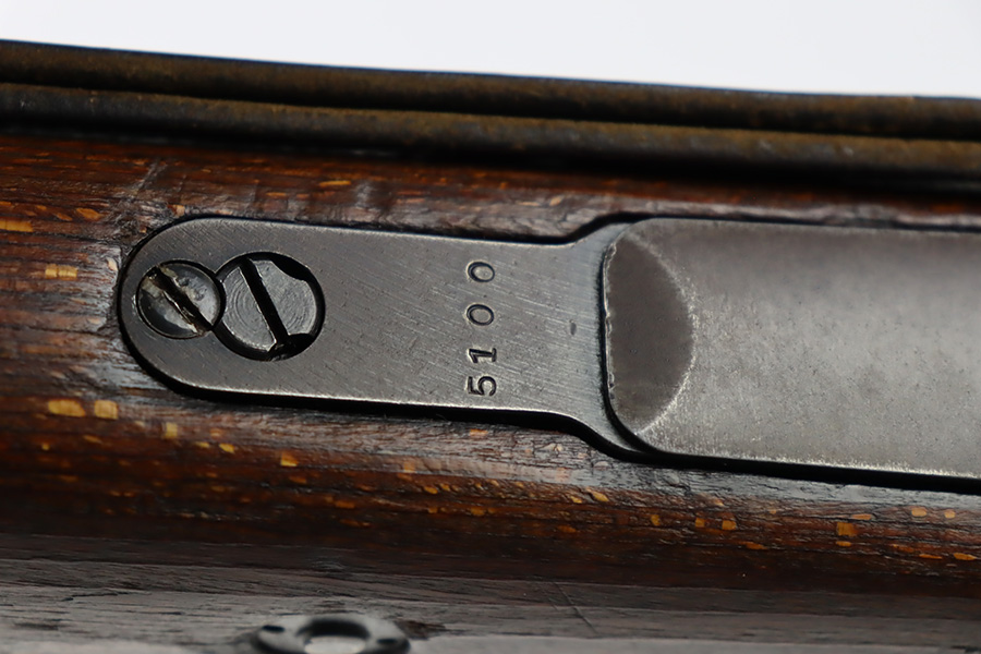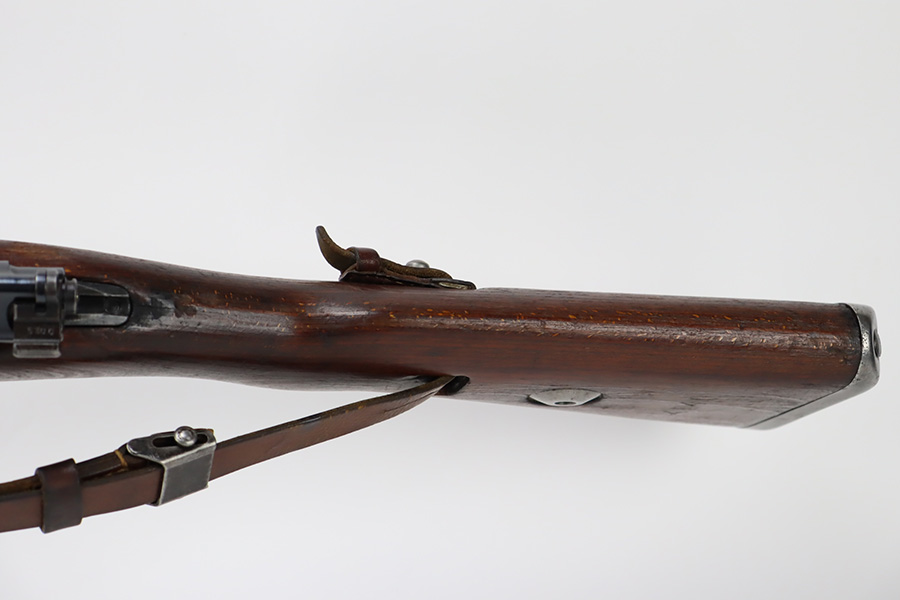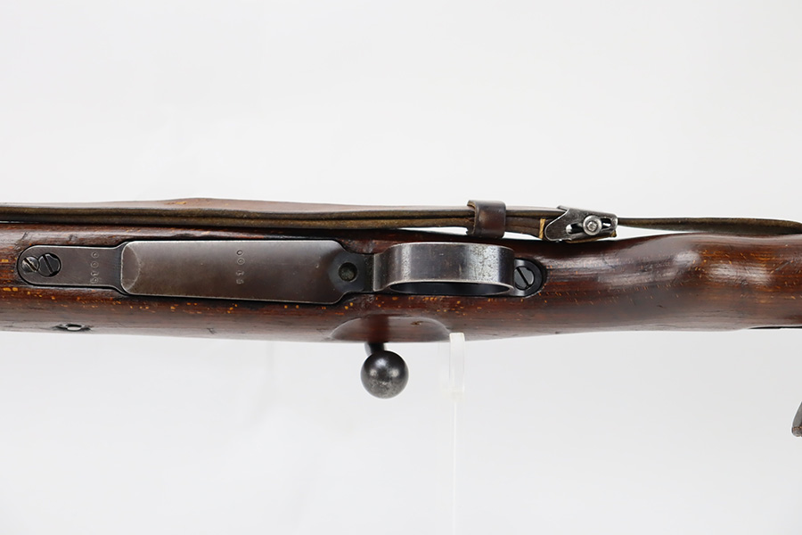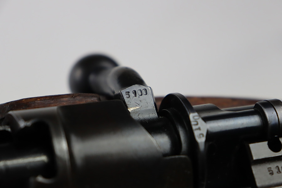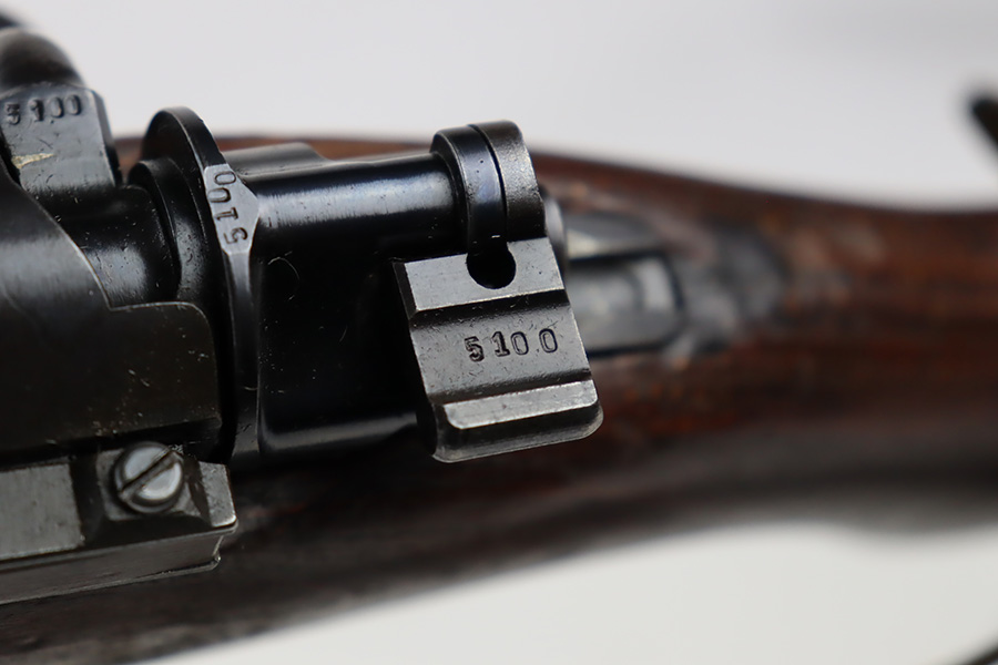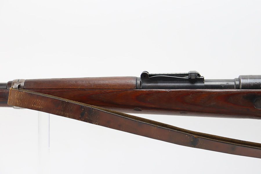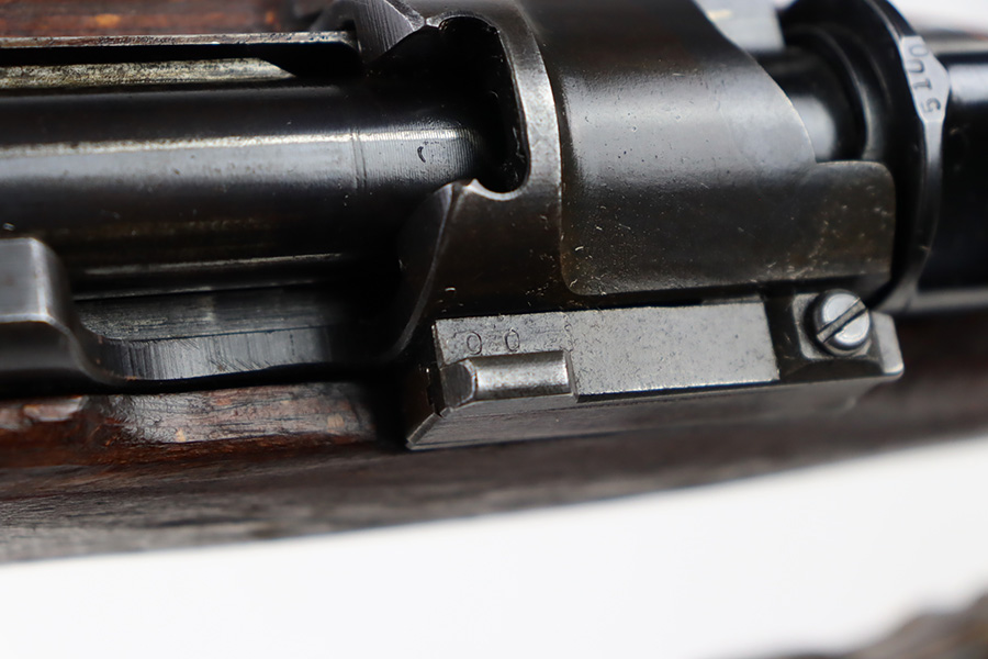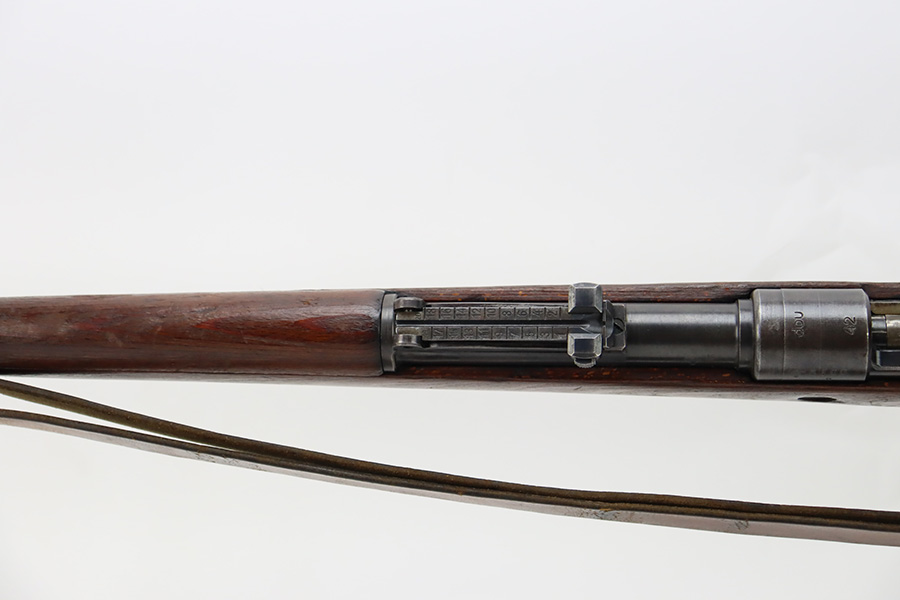 10/5/23 – This is a very nice example of a “dou 42” code Waffenwerke Brunn K98 issued to the Nazi military in 1942. It is all matching except for the stock. The bluing rates roughly 85%. The finish loss is concentrated on the barrel bands and on the floor plate. There is some spotty oxidation on the floor plate and butt plate and some light pin-pricking on the floor plate as well. The wood furniture shows the typical signs of wear with no major damage. Mint bore. Comes with a nice leather sling.