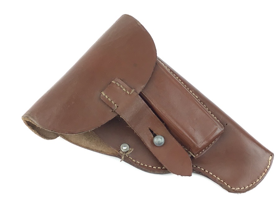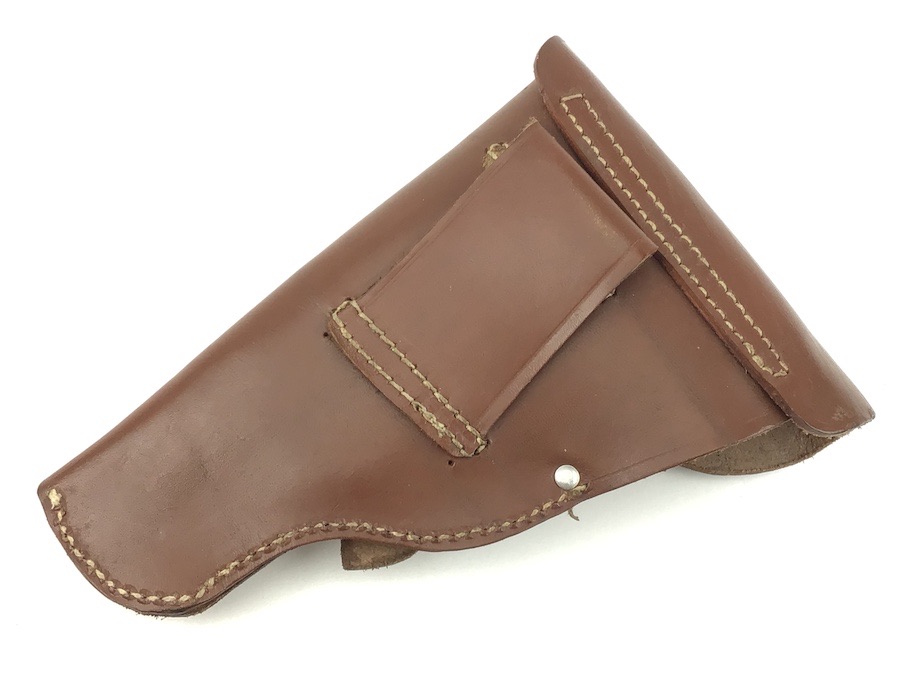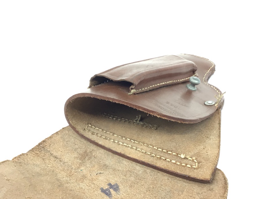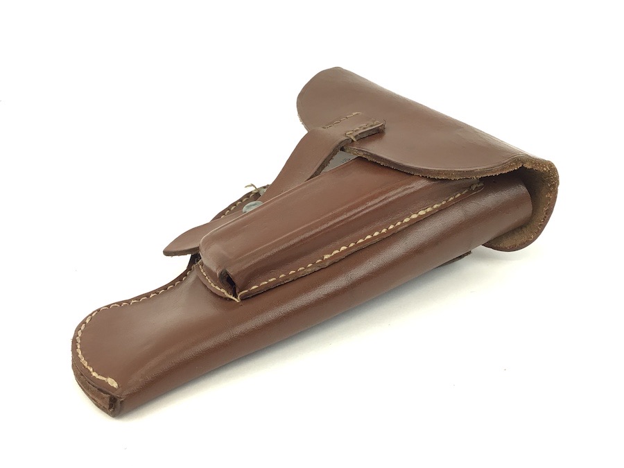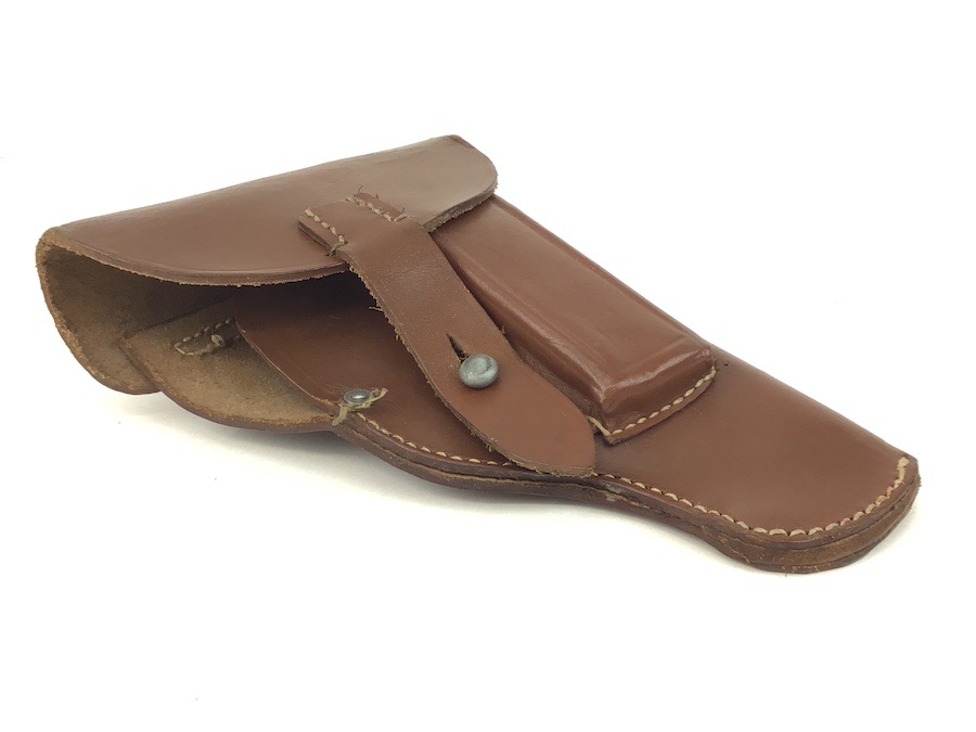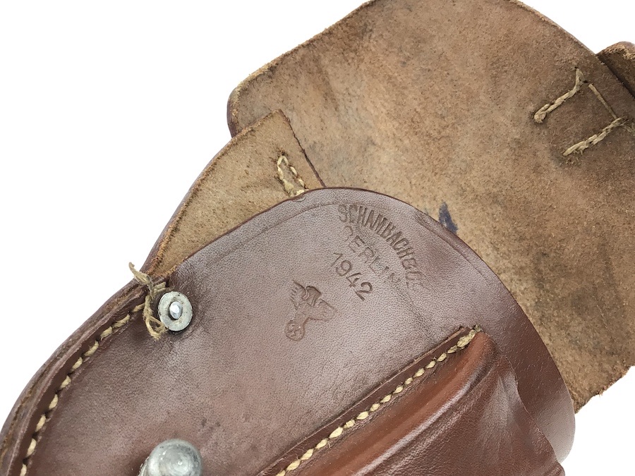 6/9/22 – This is an original 1942 dated Walther PPK (or similar sized pistol) holster. The holster is dated, police eagle B stamped, and maker stamped under the closure strap. Minty leather is firm and clean. All original stitching. A PPK fits snugly due to the fact that this holster is in un-used condition. Very hard to upgrade police holster!