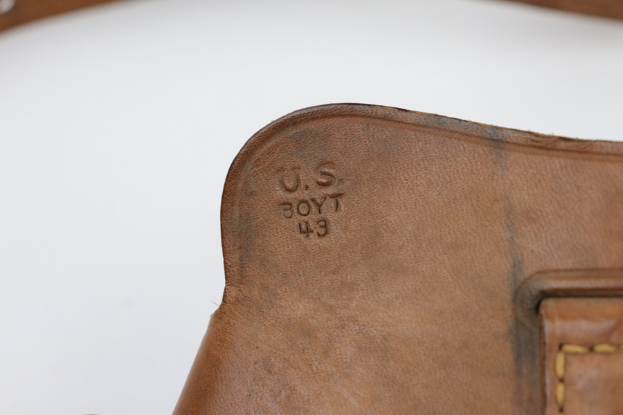 5/28/19 – This is an excellent, all original WW2 production BOYT shoulder holster made for the 1911A1. The holster is strongly stamped on the back leather with a “43” date stamp and “US BOYT”. The leather is clean and all stitching in tact. Nice condition on the shoulder straps as well make this a great collectible holster to pair with your WWII 1911.