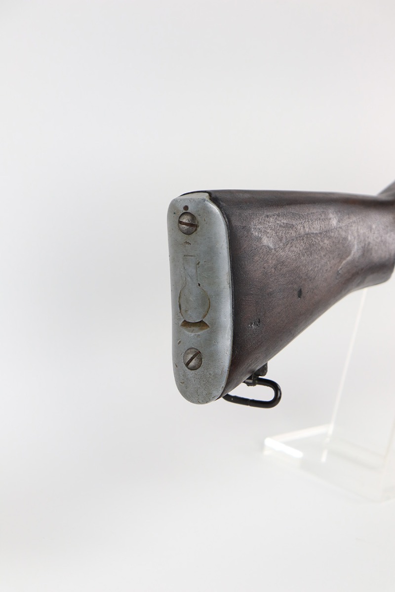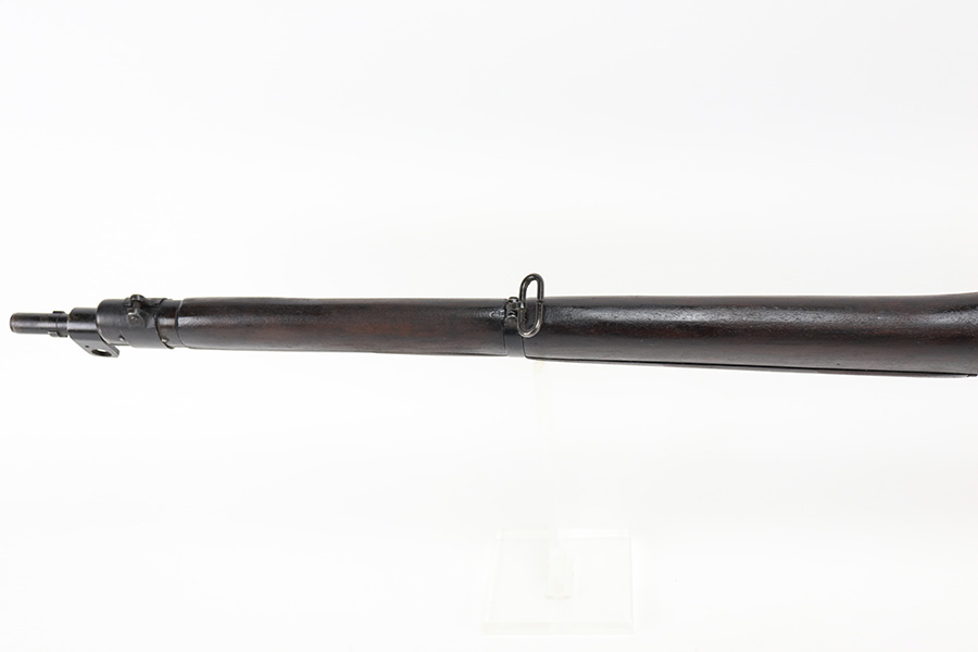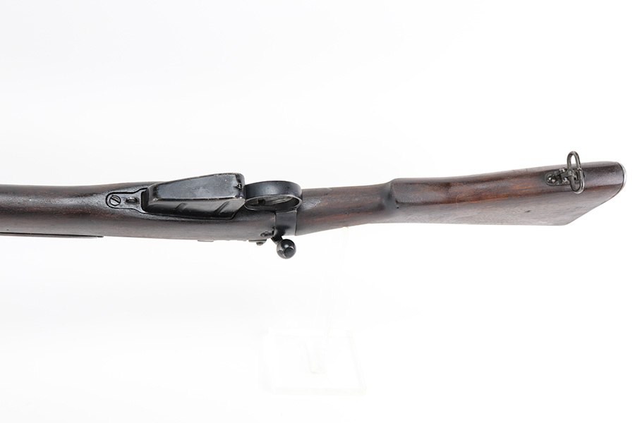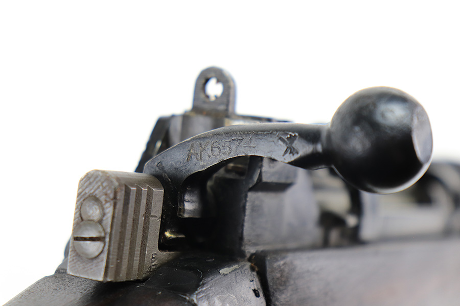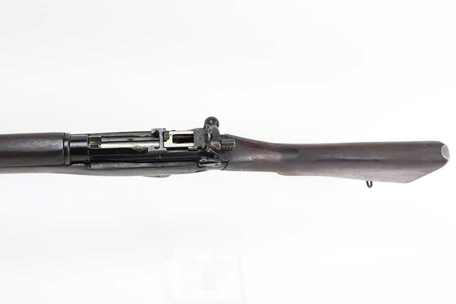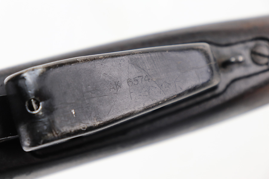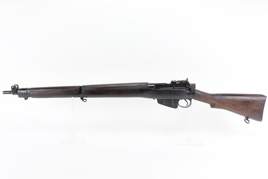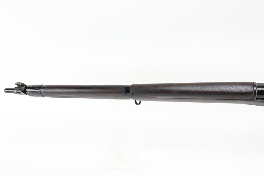 3/25/22 – This is an excellent example of an Enfield No 4 Mk 1 rifle issued to the British military in 1943. It is matching, dated 1943 on the receiver, and has the proper British proofs throughout. No visible markings on the stock. it has retained most of its black painted finish. In general, there is minor wear around the high edges and around the muzzle. There are some tiny chips in the black finish around the muzzle and front sight. Minty wood stock with a few minor scuffs. it may have been lightly sanded and a very thin layer of lacquer applied. The bore is near-mint.