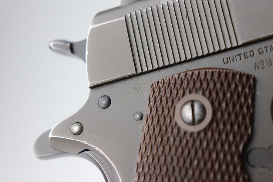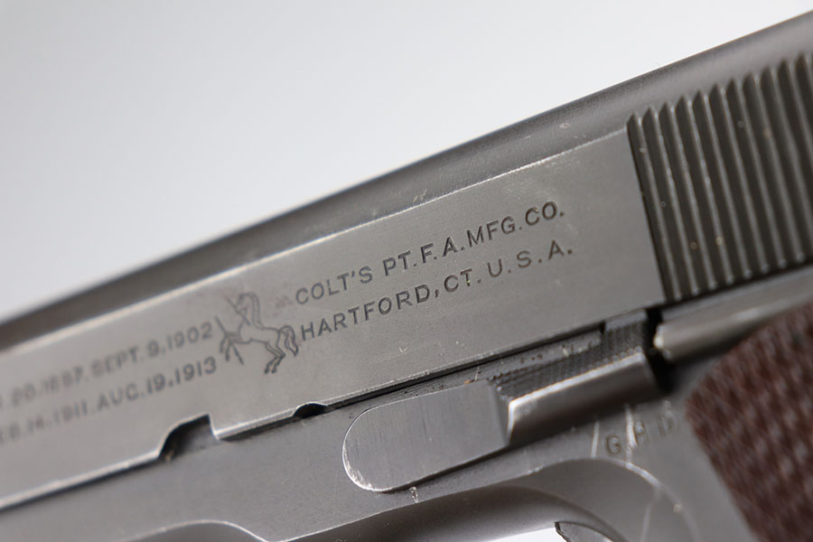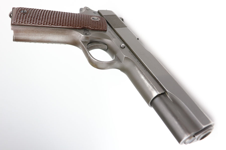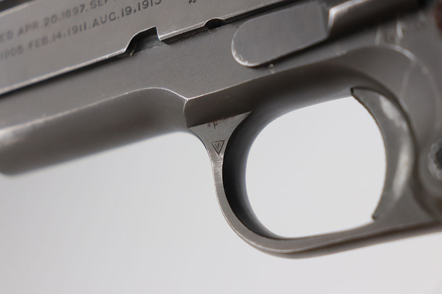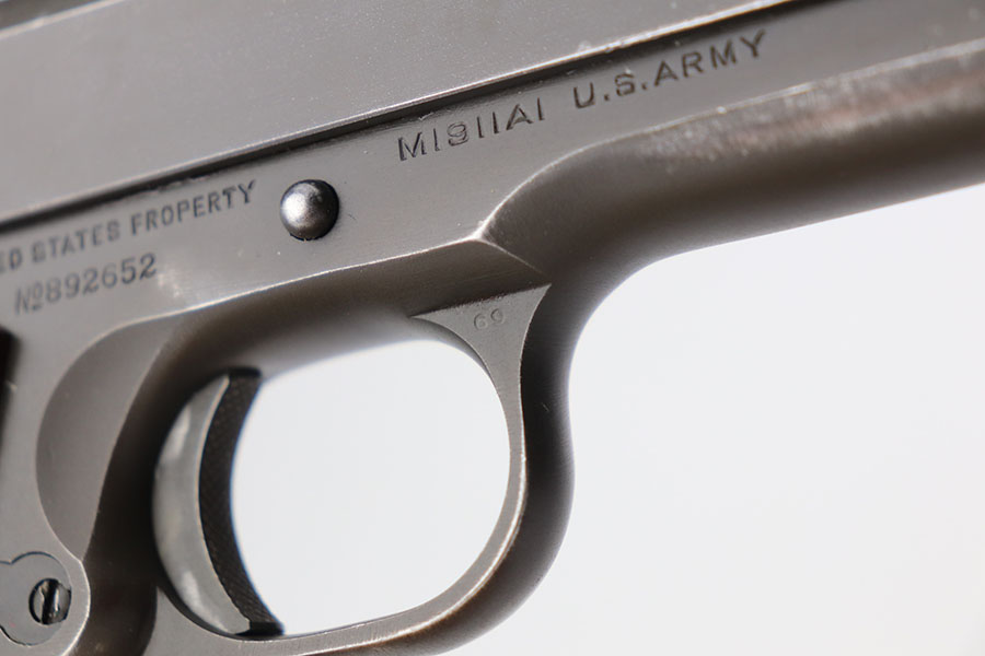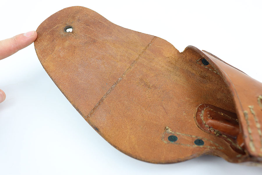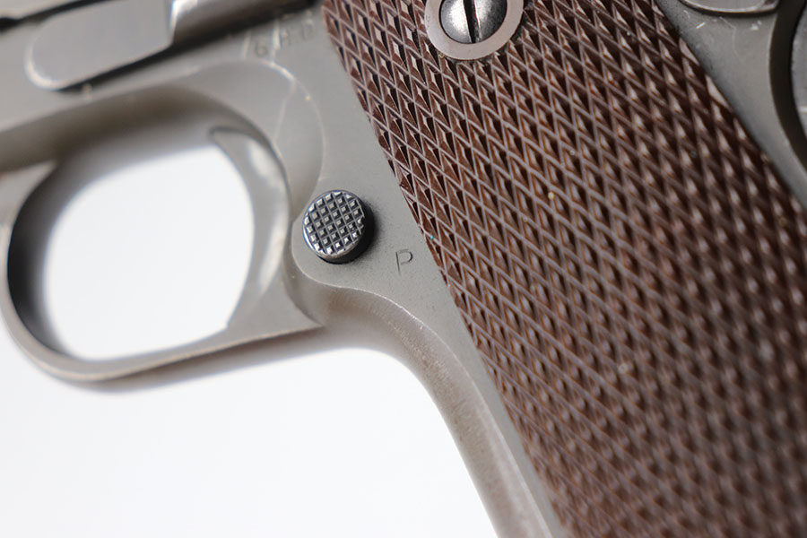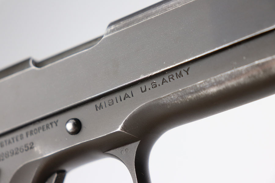 2/1/21 – This is a Colt 1911A1 from 1943 with original holster. The gun has matching serial and slide with correct inspection proofs throughout. Has an original Colt barrel with excellent bore. Most of the finish loss on the pistol is on the high edges of the profile and the front strap. Excellent grips. ‘L’ marked magazine. Original U.S. military holster with Graton & Knight maker mark.