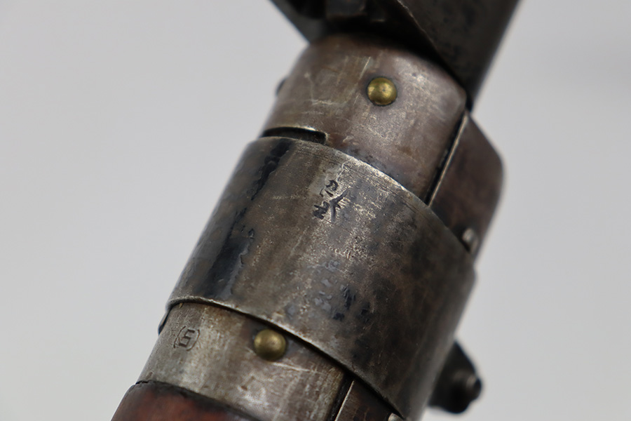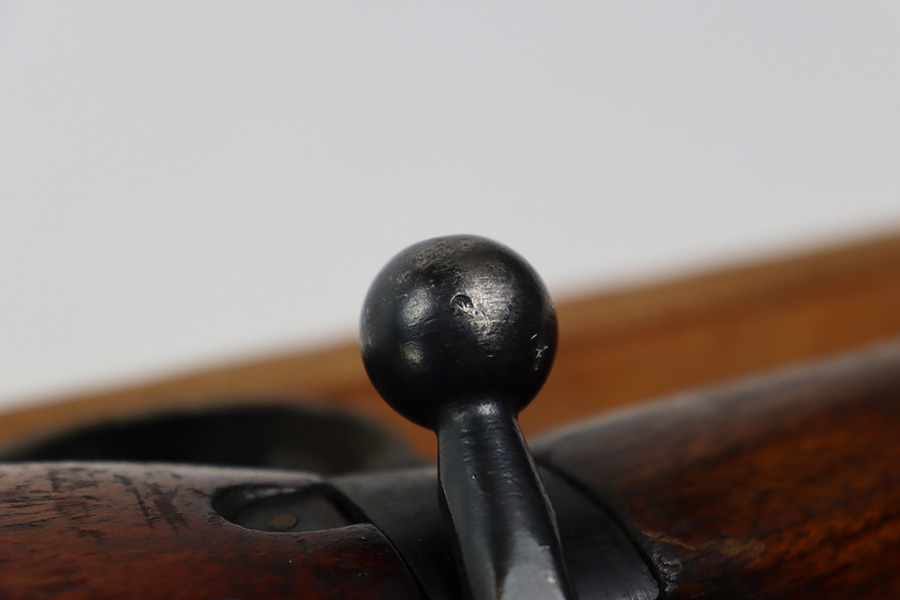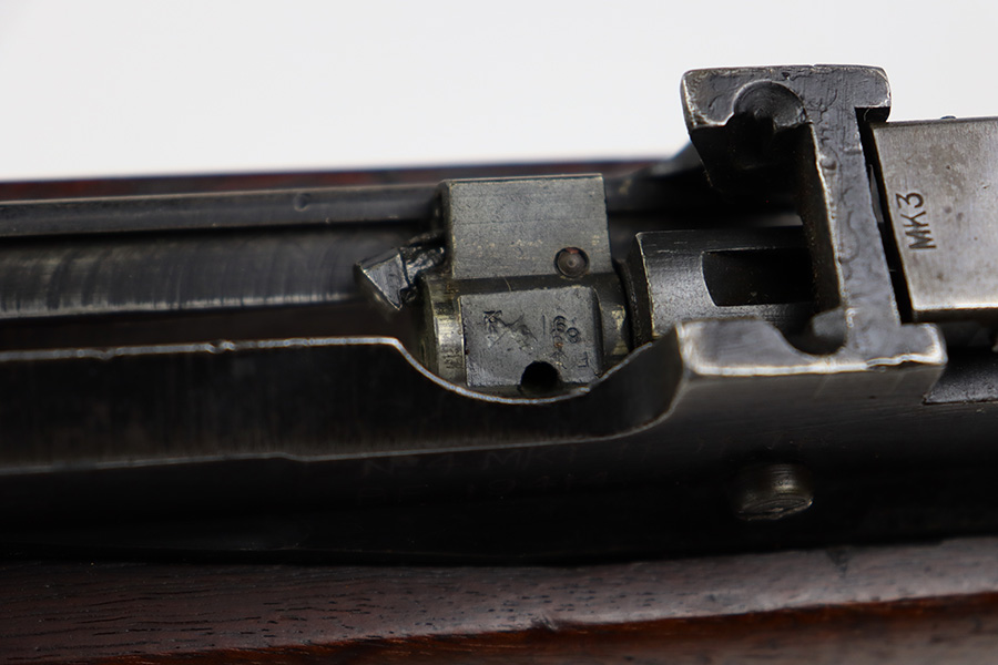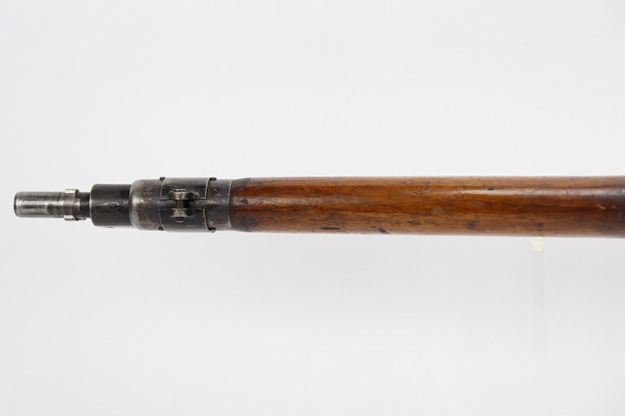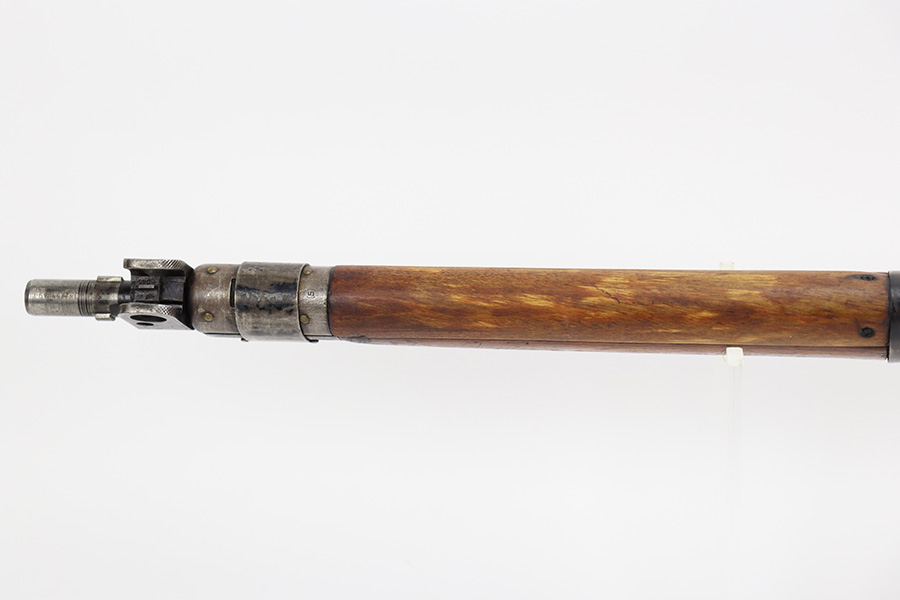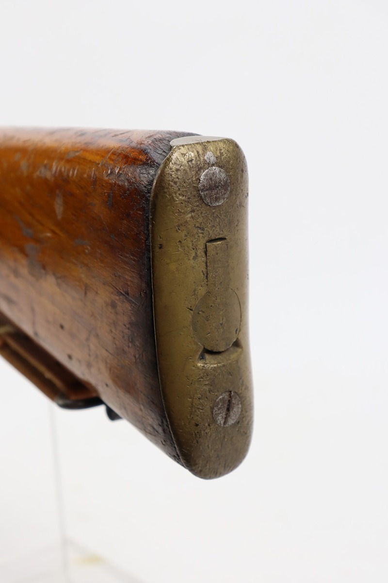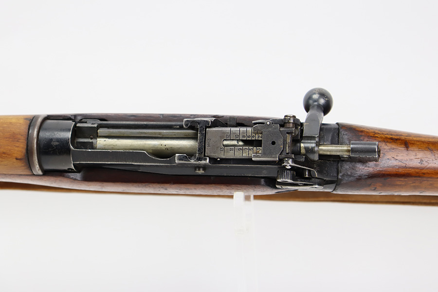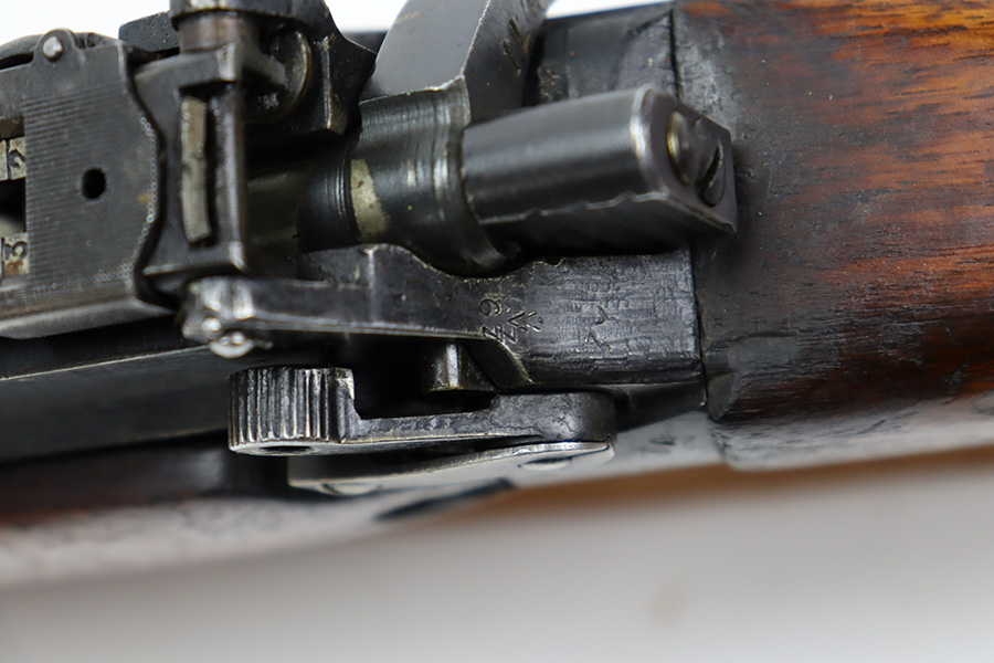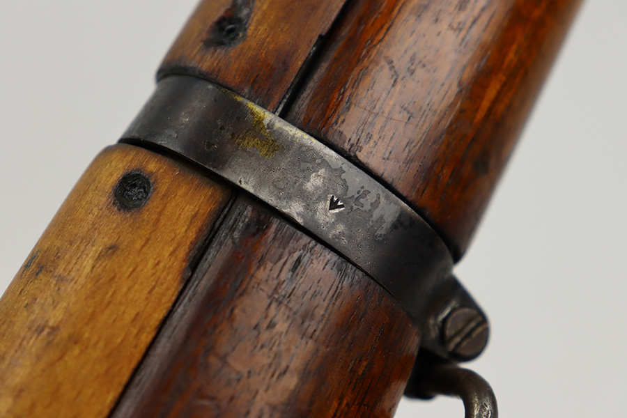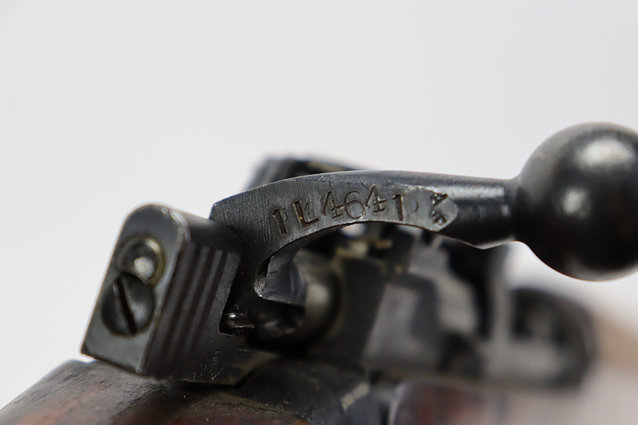 7/24/23 – This is a nice example of an Enfield No 4 Mk 1 made by Fazakerley in 1943. The bolt is mismatched, and the magazine is missing. The front barrel band was made by Savage. The receiver is marked “FTR” for Factory Thorough Repair. The metal parts have retained roughly 60% of their finish. There is general high edge wear, but the majority of the finish loss is towards the muzzle. The wood furniture shows obvious scratching and bruising throughout, and the upper handguards have been lightly sanded. The bore has good rifling, but there is minor frosting throughout. Comes with an excellent reproduction leather sling.
