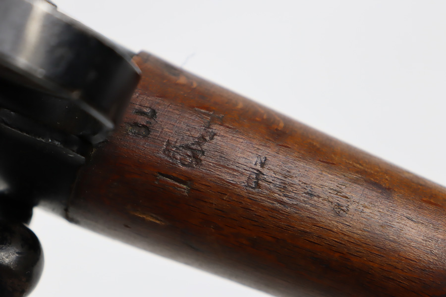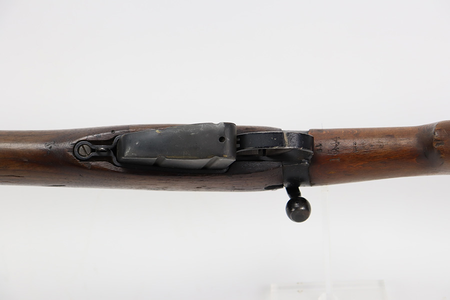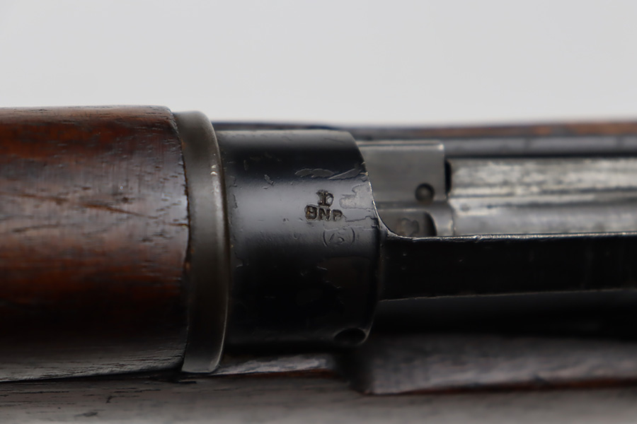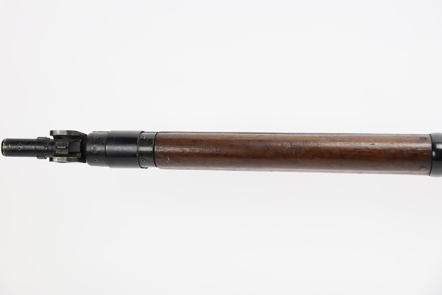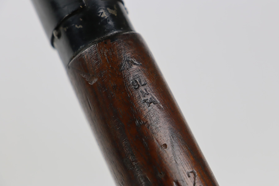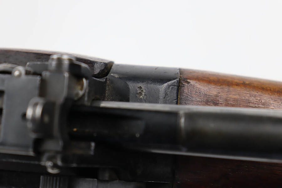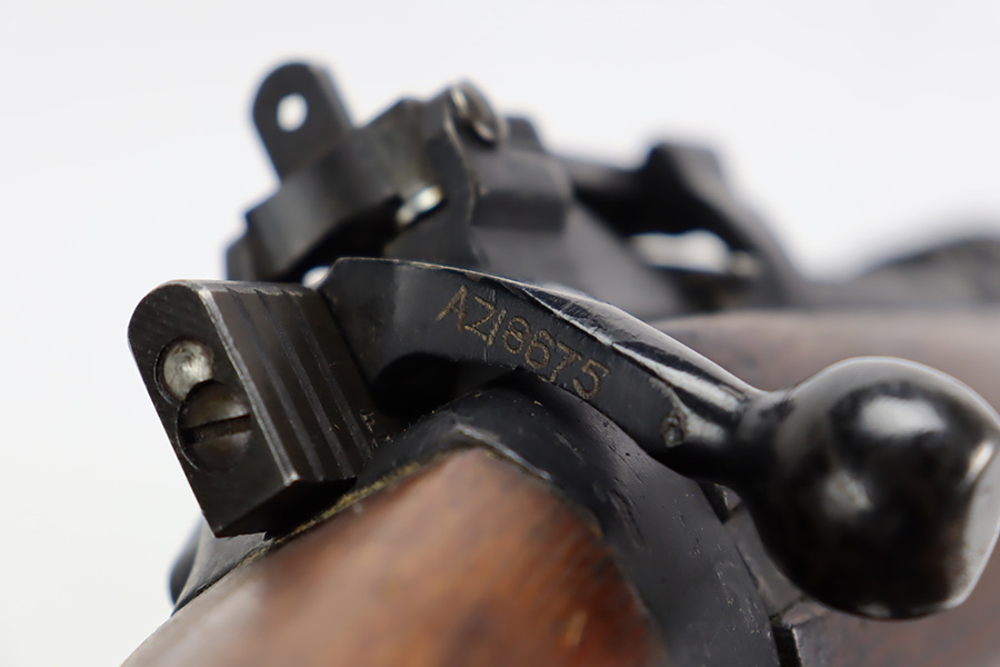 11/3/23 – This is a very nice example of an Enfield No 4 Mk 1 made by Fazakerley in 1943. All matching with the proper British proofs throughout. The receiver is marked “FTR” for Factory Thorough Repair. The metal parts have retained somewhere between 85-90% of their finish – just minor chipping in the finish here and there. Excellent wood stock with a couple of small gouges on the right side of the butt stock. There is also a small wood repair on the top edge of the butt stock. Mint bore.