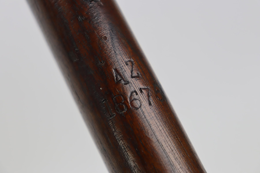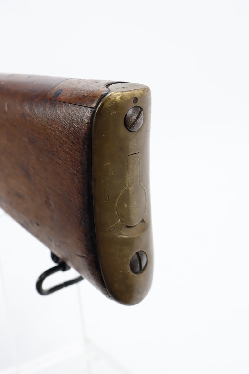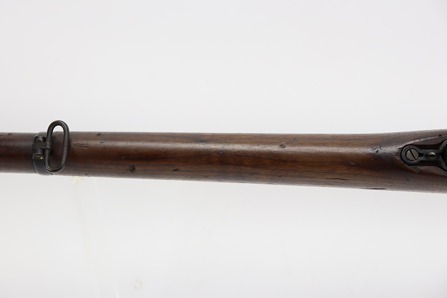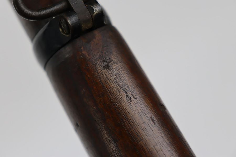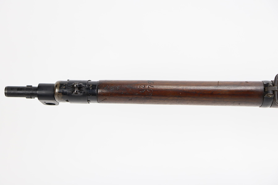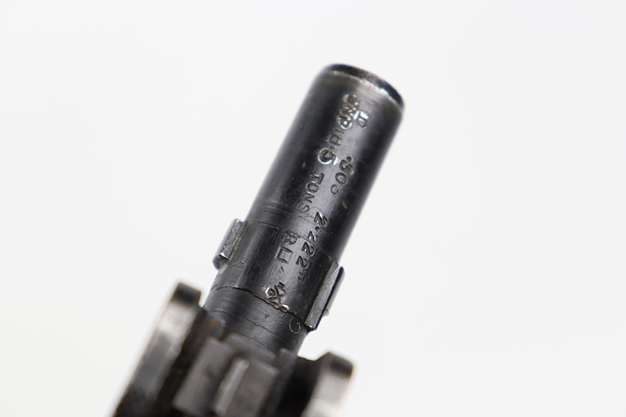 11/3/23 – This is a very nice example of an Enfield No 4 Mk 1 made by Fazakerley in 1943. All matching with the proper British proofs throughout. The receiver is marked “FTR” for Factory Thorough Repair. The metal parts have retained somewhere between 85-90% of their finish – just minor chipping in the finish here and there. Excellent wood stock with a couple of small gouges on the right side of the butt stock. There is also a small wood repair on the top edge of the butt stock. Mint bore.