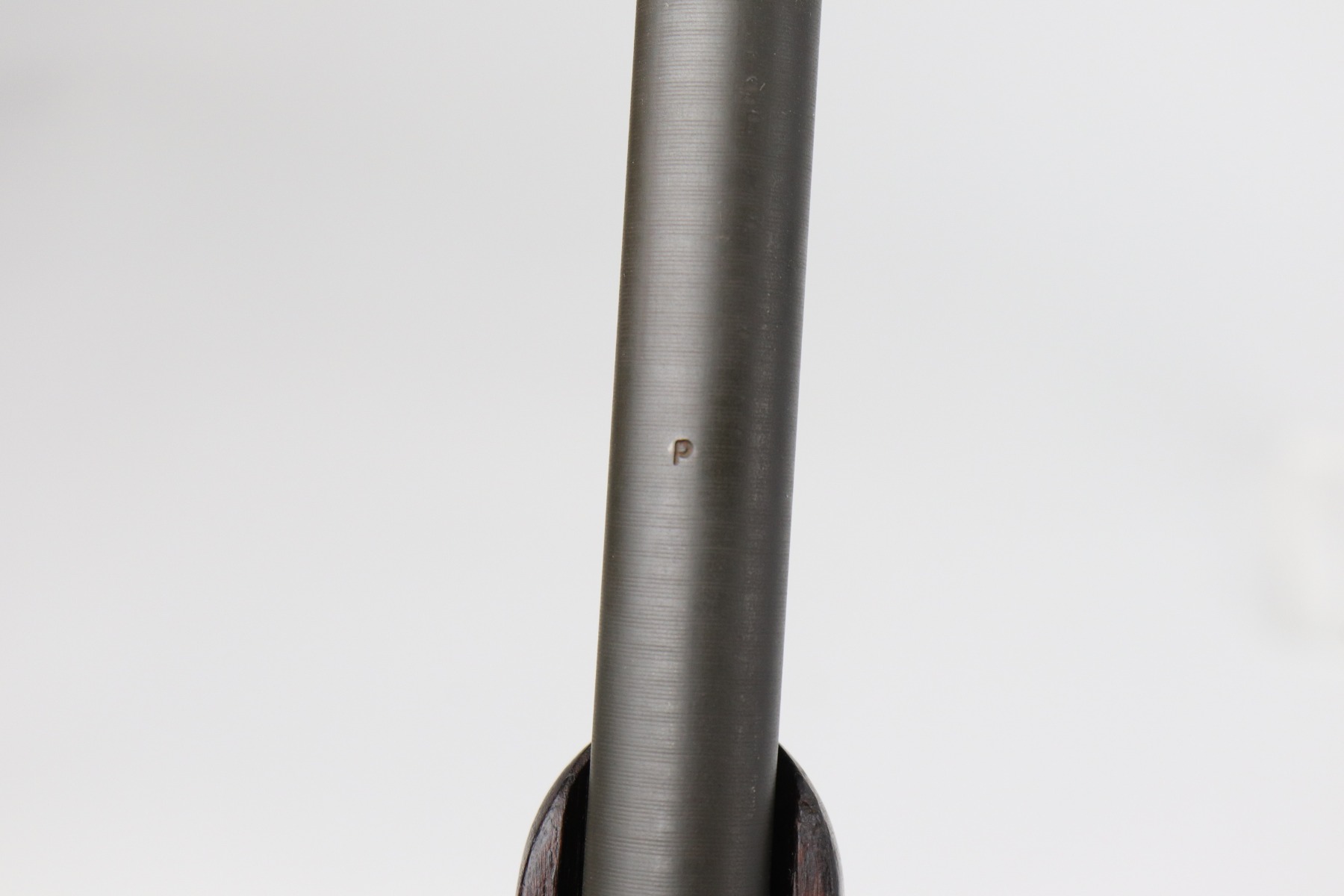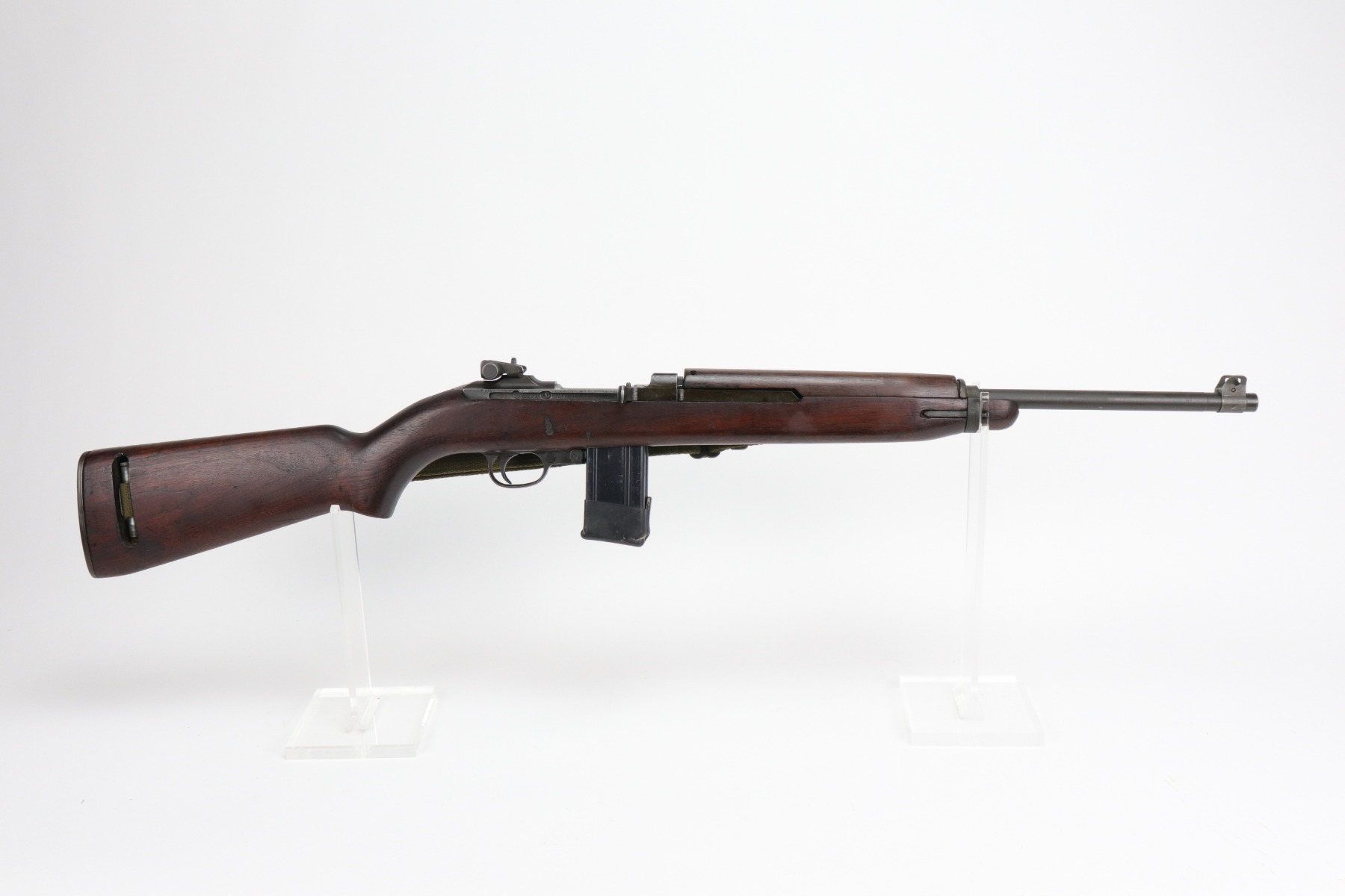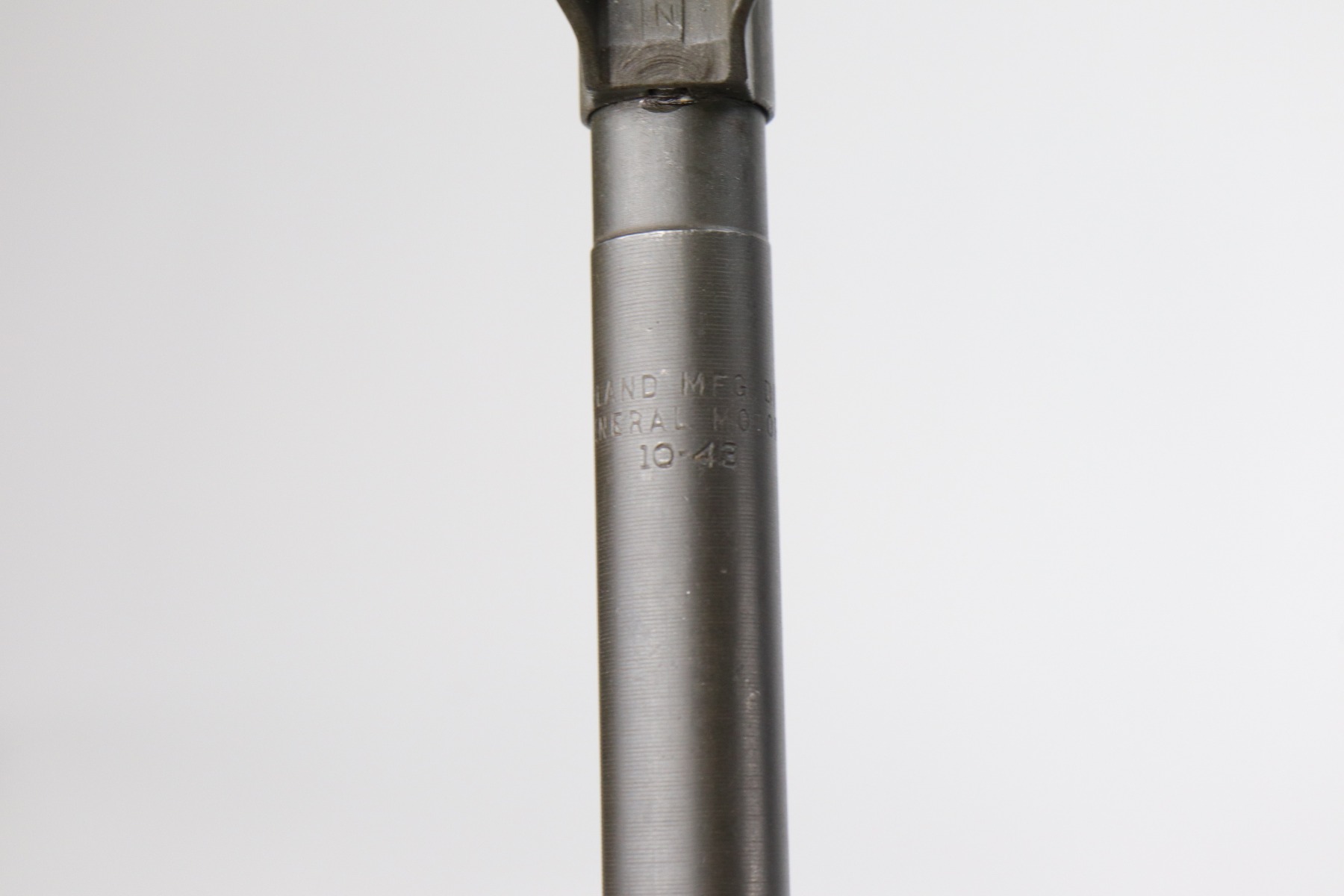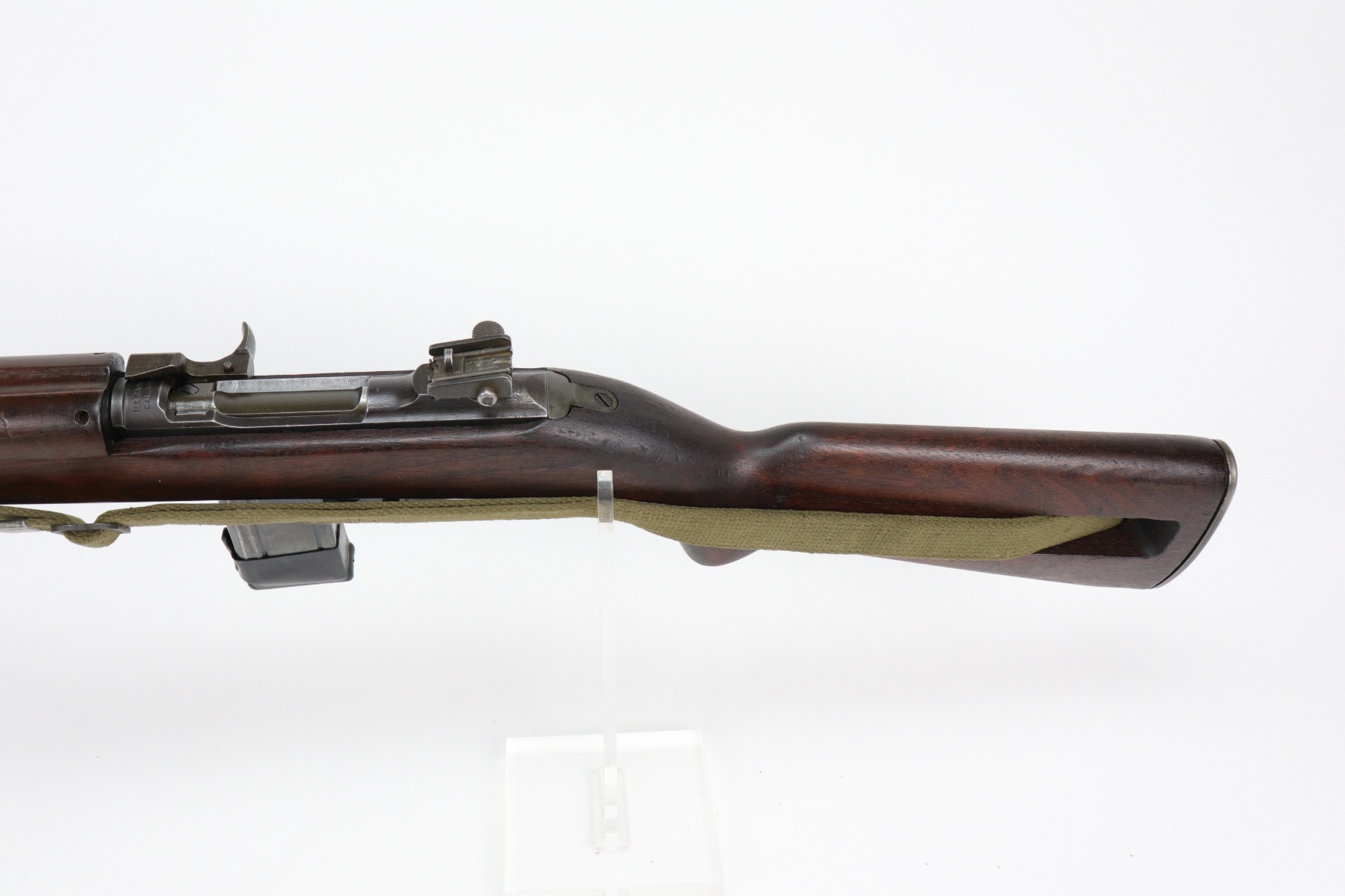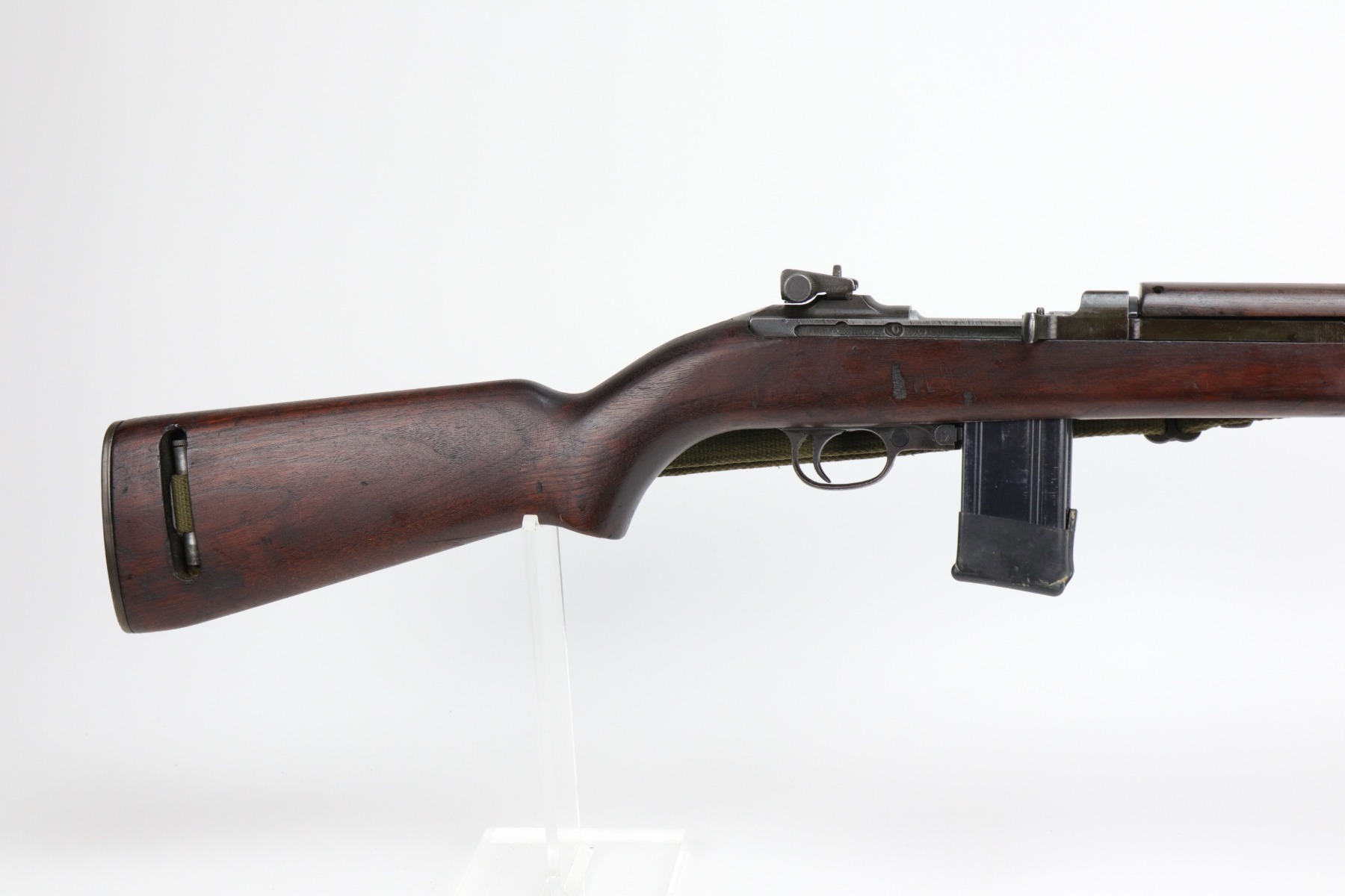 2/23/21 – This is an excellent example of an Inland M1 Carbine issued to the US military in 1943. The barrel is dated October of 1943. This could be original to the gun, but the receiver dates to about the summer of 1943. The gun has an Inland stock, handguard, and barrel. Winchester trigger group and safety. The hammer is marked “I-I”. The front barrel band is Underwood. The adjustable rear sight was likely added later for the Korean war. Overall, the gun is excellent, retaining almost all of its finish. There is minor wear on the edges of the ejection port, a few marks on the barrel, and some light spotty oxidation most noticeable on the receiver. The stock is excellent – just a few minor dings here and there, most noticeable on the right side. Comes with an oiler, sling, and a period-correct magazine. Mint bore.