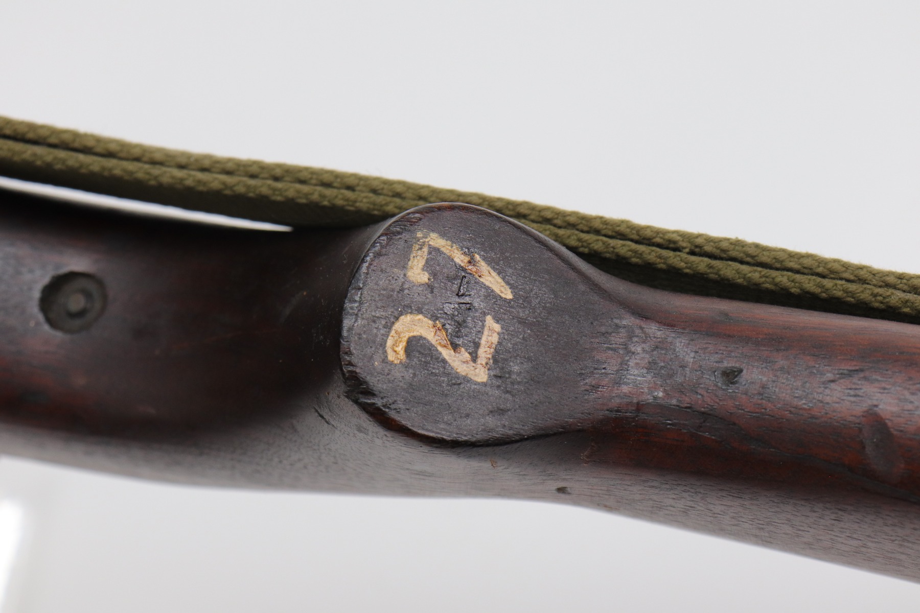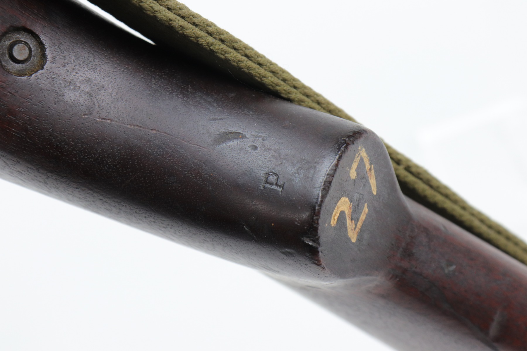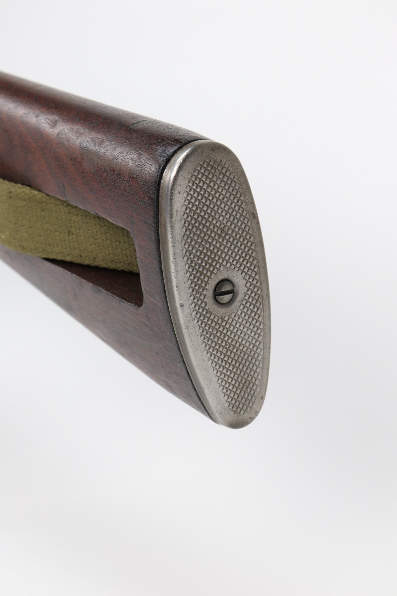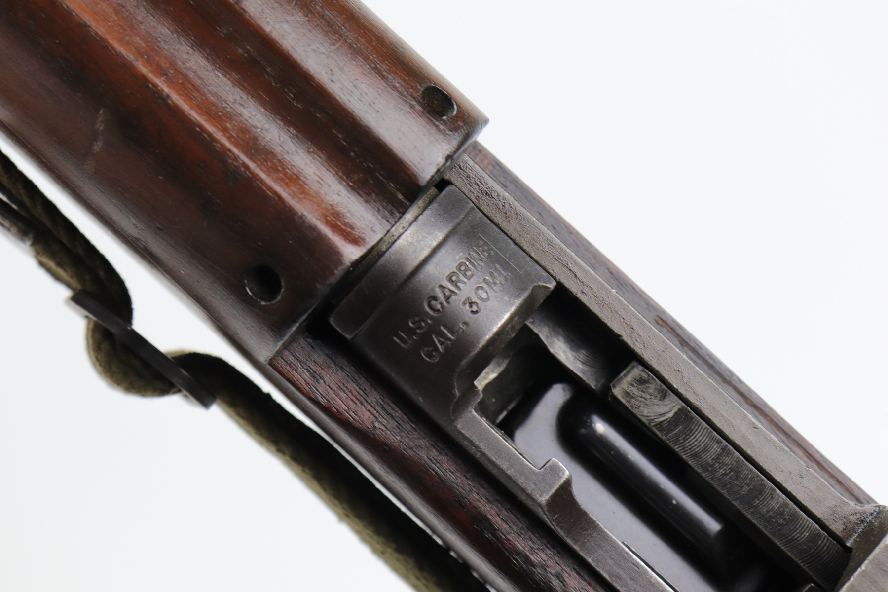 2/23/21 – This is an excellent example of an Inland M1 Carbine issued to the US military in 1943. The barrel is dated October of 1943. This could be original to the gun, but the receiver dates to about the summer of 1943. The gun has an Inland stock, handguard, and barrel. Winchester trigger group and safety. The hammer is marked “I-I”. The front barrel band is Underwood. The adjustable rear sight was likely added later for the Korean war. Overall, the gun is excellent, retaining almost all of its finish. There is minor wear on the edges of the ejection port, a few marks on the barrel, and some light spotty oxidation most noticeable on the receiver. The stock is excellent – just a few minor dings here and there, most noticeable on the right side. Comes with an oiler, sling, and a period-correct magazine. Mint bore.