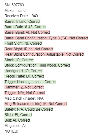 12/14/23 – This is an Inland M1 Carbine issued to the US military in 1943. An adjustable rear sight and bayonet lug were added later, likely for use during the Korean War. A complete parts list with markings is included in the photographs. The gun has retained about 97% of its finish with just minor muzzle wear. Excellent wood furniture. Comes with a canvas sling and one magazine. Mint bore.