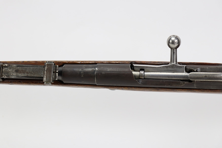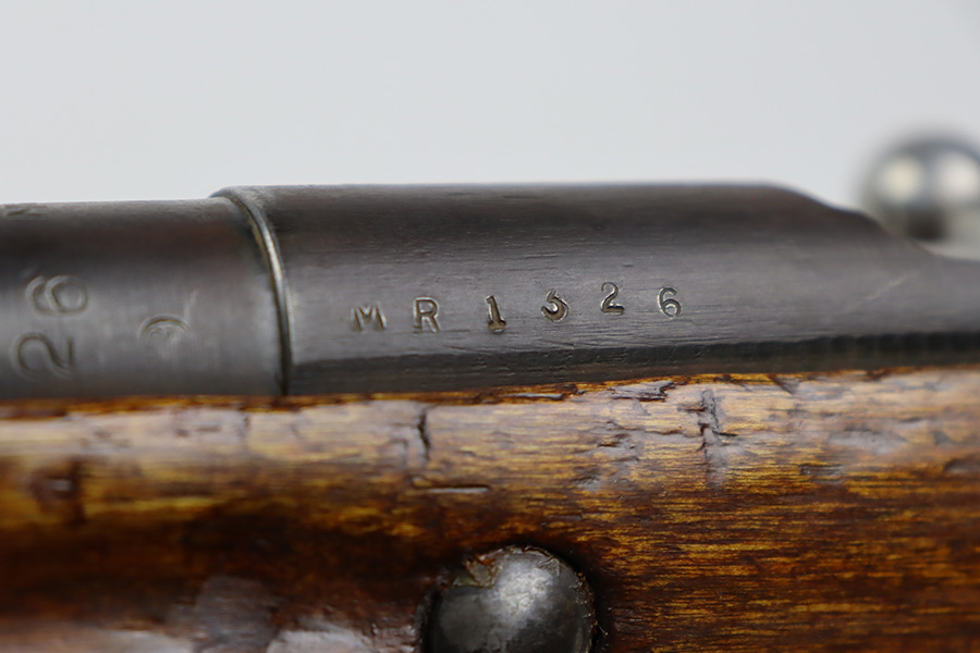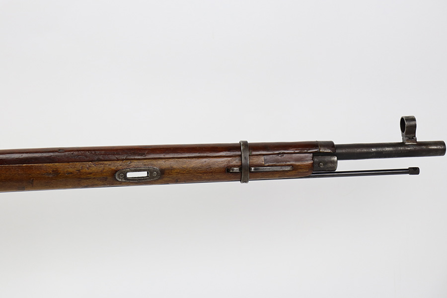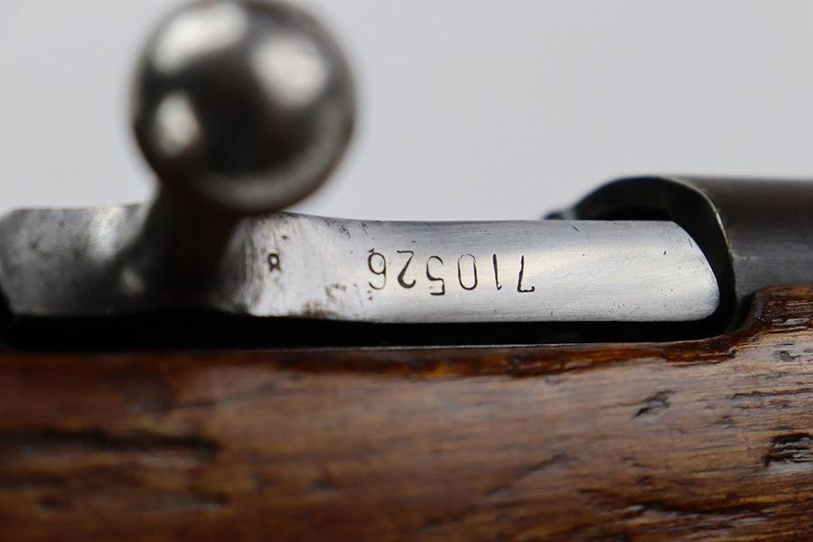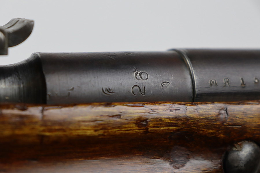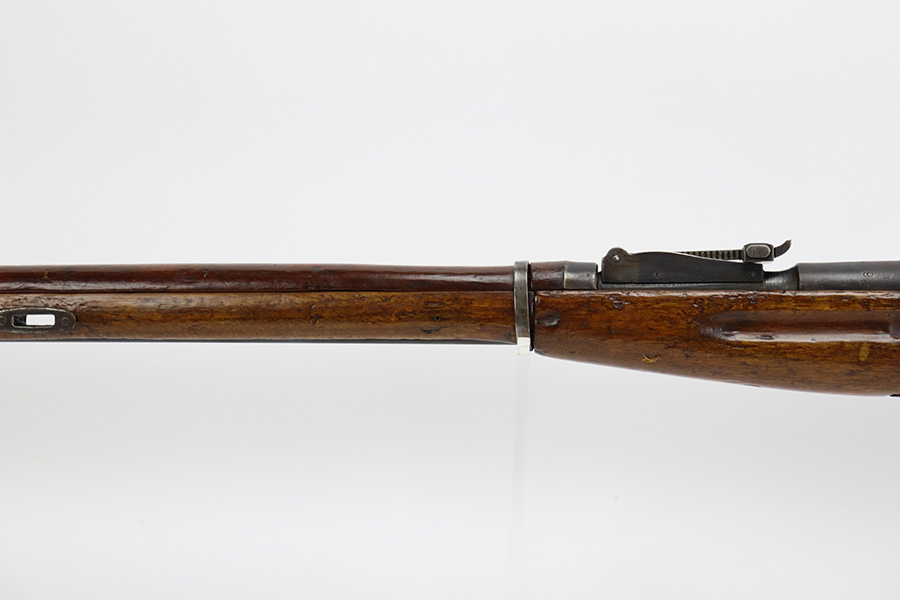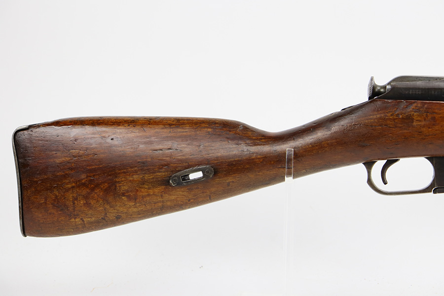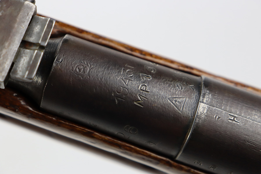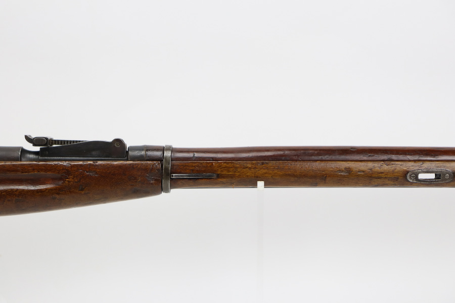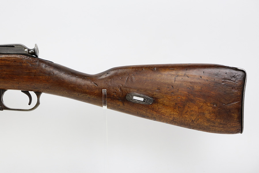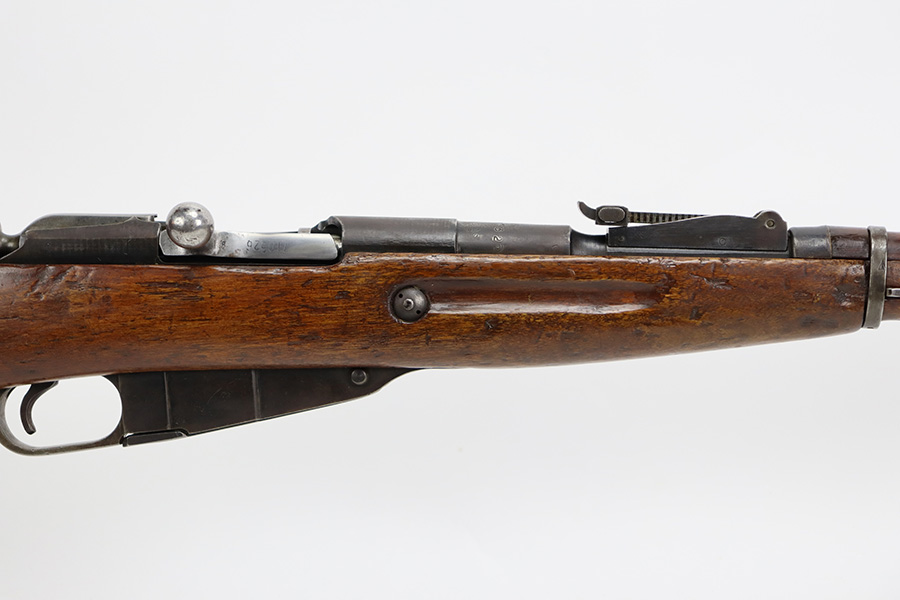 7/24/23 – This is a very nice example of a Mosin-Nagant Model 91/30 issued to the Russian military in 1943. It is mismatched with an import mark on the barrel. It has retained about 85% of its finish with general high edge wear, but most of the finish loss is on the trigger guard and on the butt plate. Some tiny pits on the magazine. The wood furniture shows obvious bruising throughout. Very nice bore with good rifling.