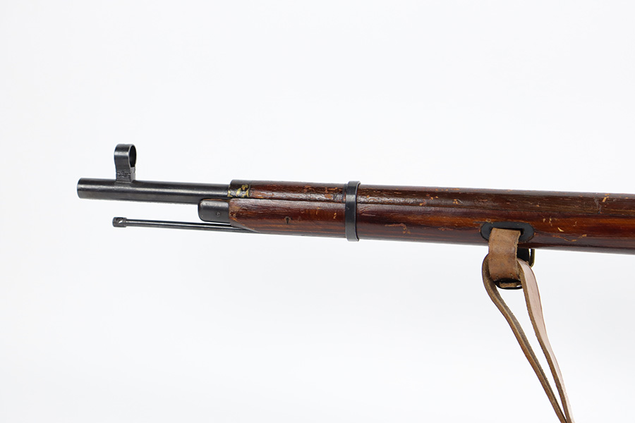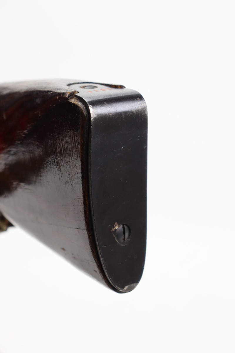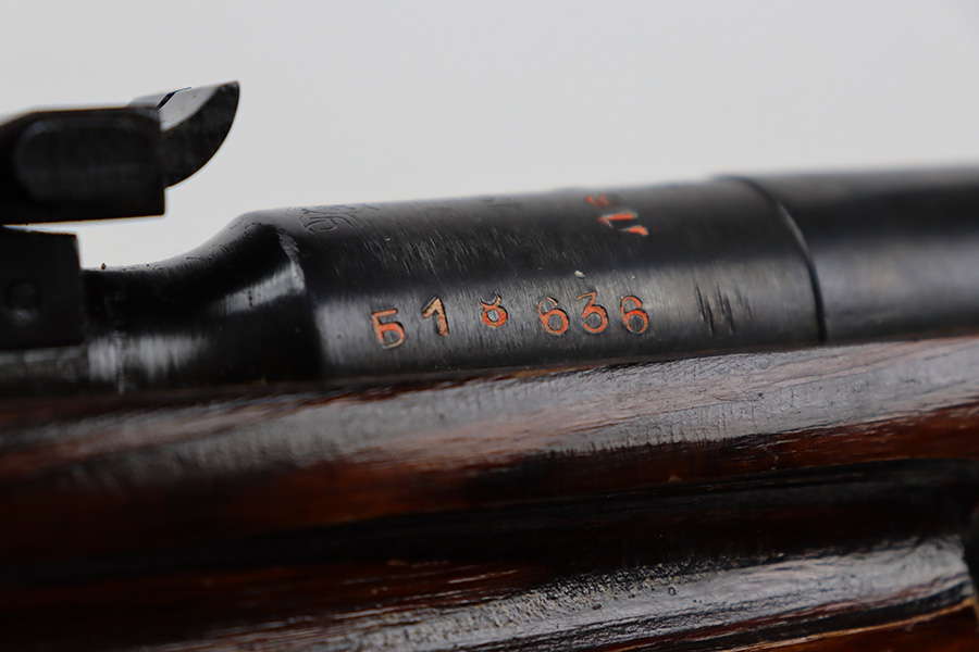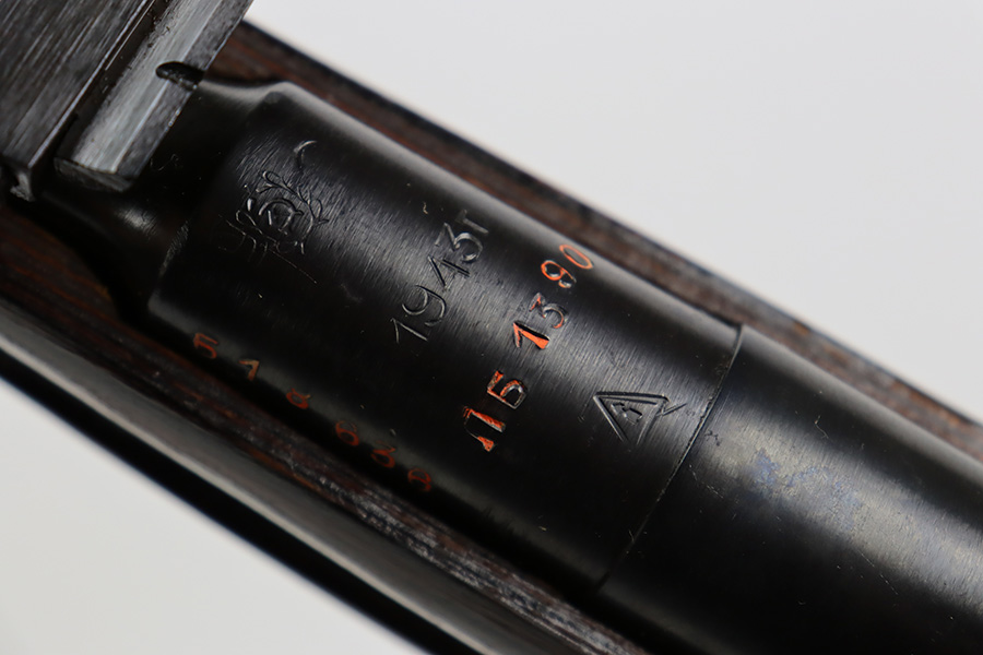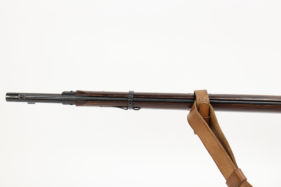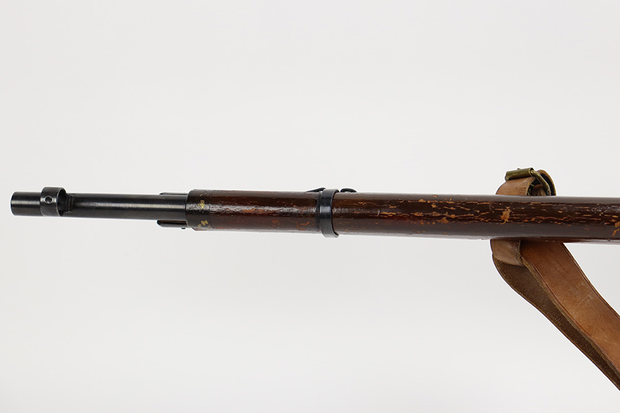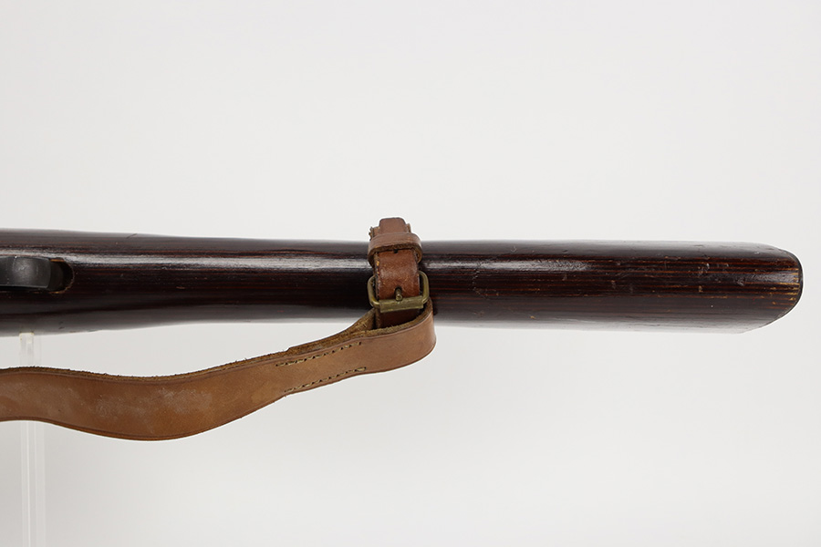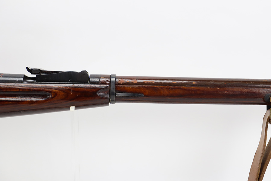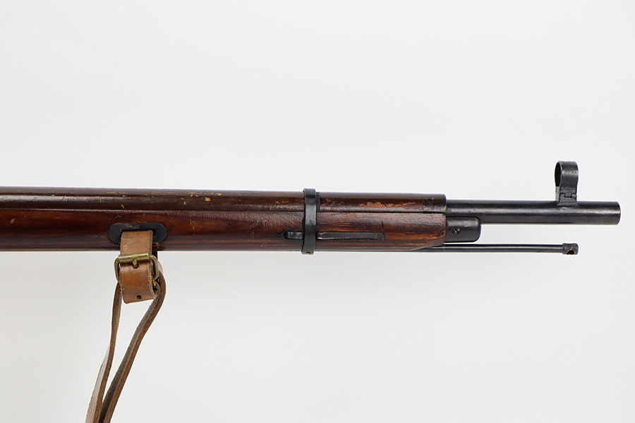8/30/23 – This is an excellent example of an arsenal-refurbished Mosin-Nagant Model 91/30 in a sniper configuration. All matching with import marks on the barrel. Equipped with a sniper scope that has excellent optics. Comes with a nice leather sling. The metal parts have retained nearly all of their finish, but there is some noticeable pitting on the scope. Nice wood furniture, but there are some light scratches and chipping in the wood finish here and there. Mint bore.