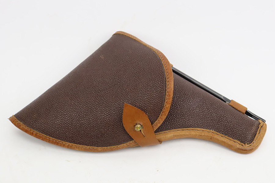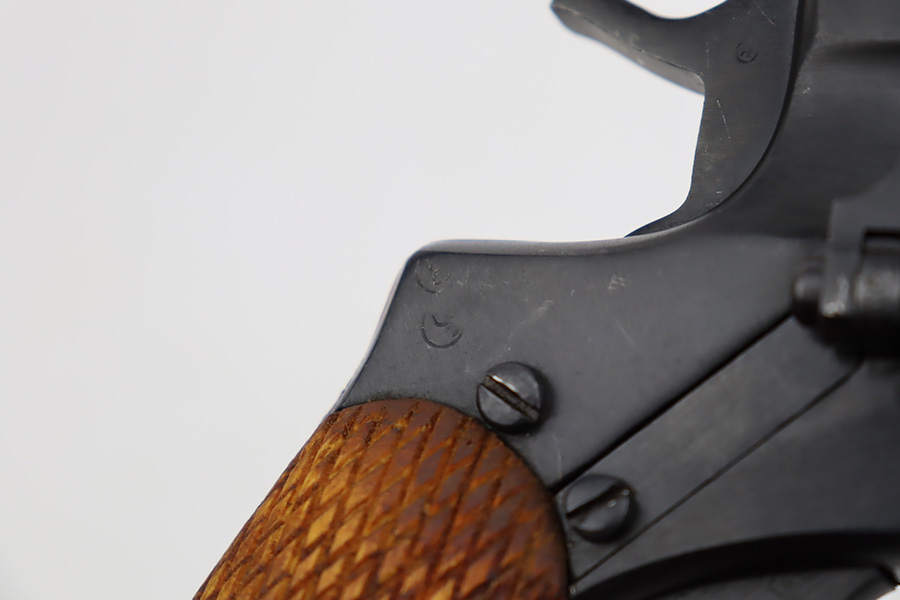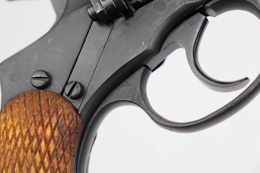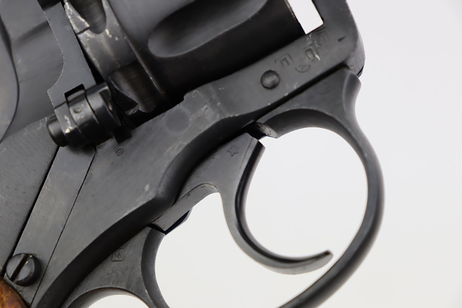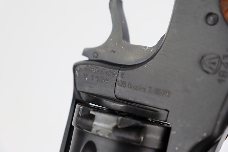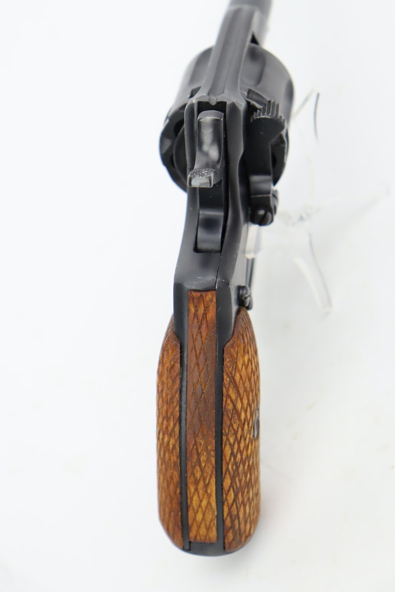 9/18/23 – This is an excellent example of a Nagant Model 1895 Revolver, issued to the Russian military in 1943. It is all matching, but there is an import mark on the left side of the frame. It comes as a rig with a holster and cleaning rod. The gun has been completely arsenal refurbished and refinished, so the bluing is really nice. Virtually no actual finish loss. Mint wood grips. Minty bore.