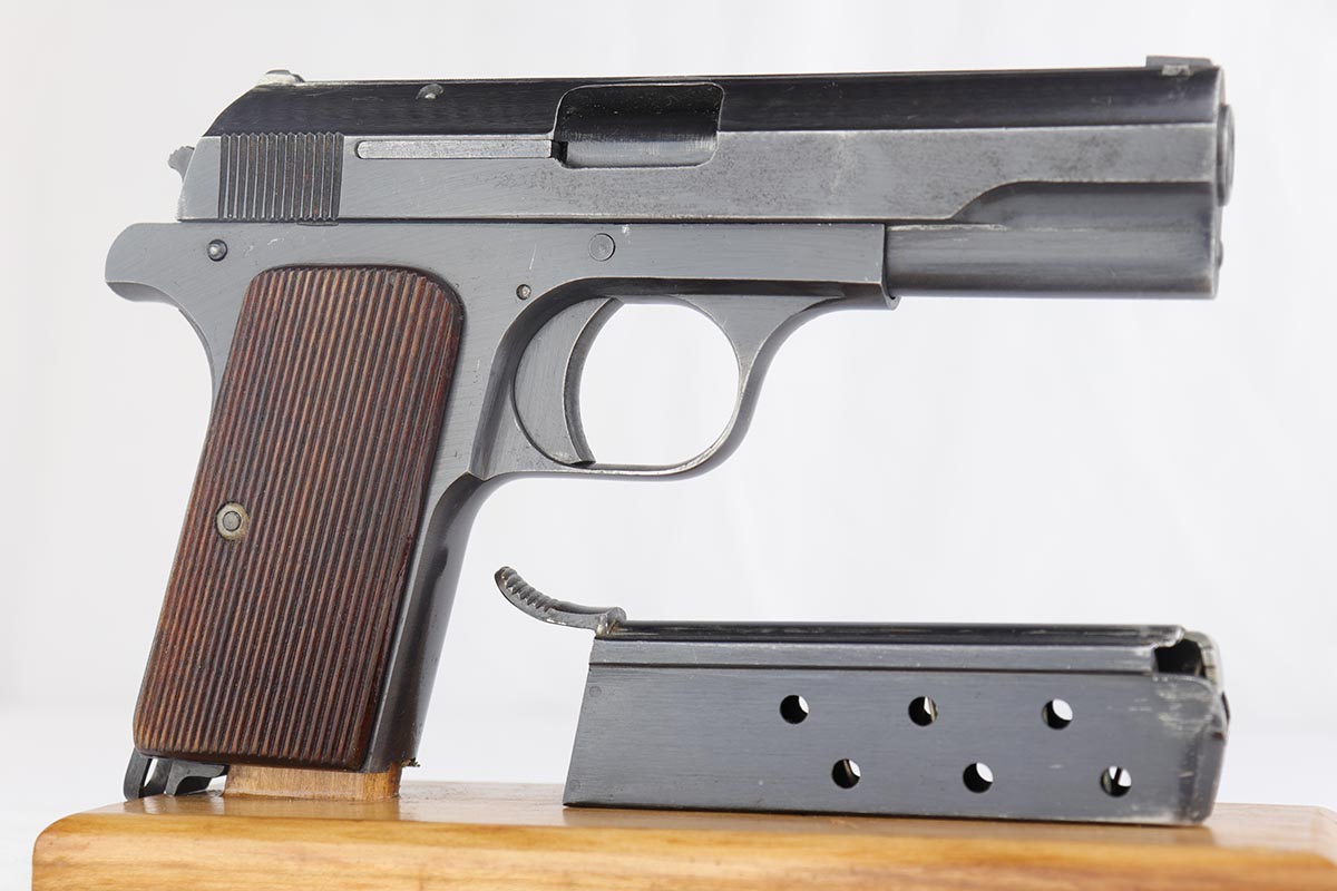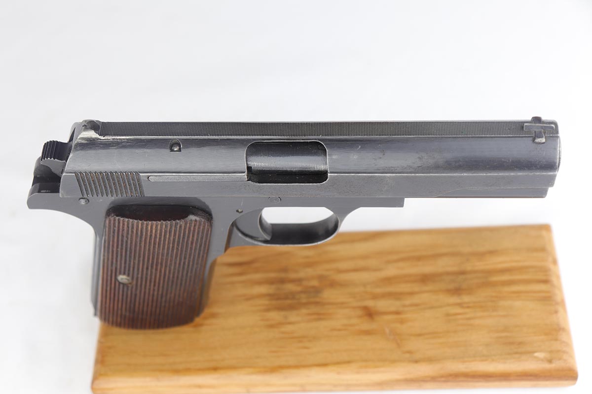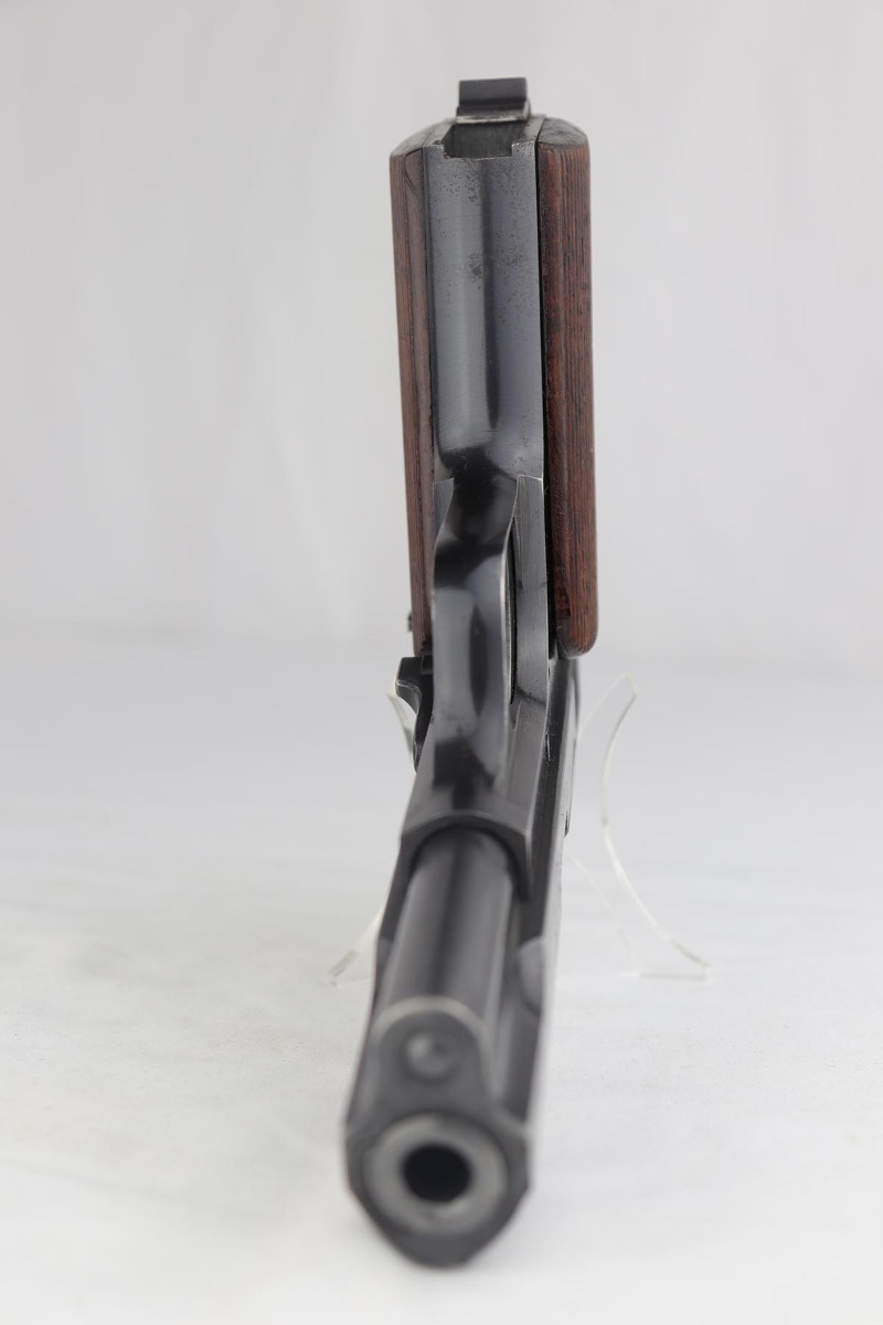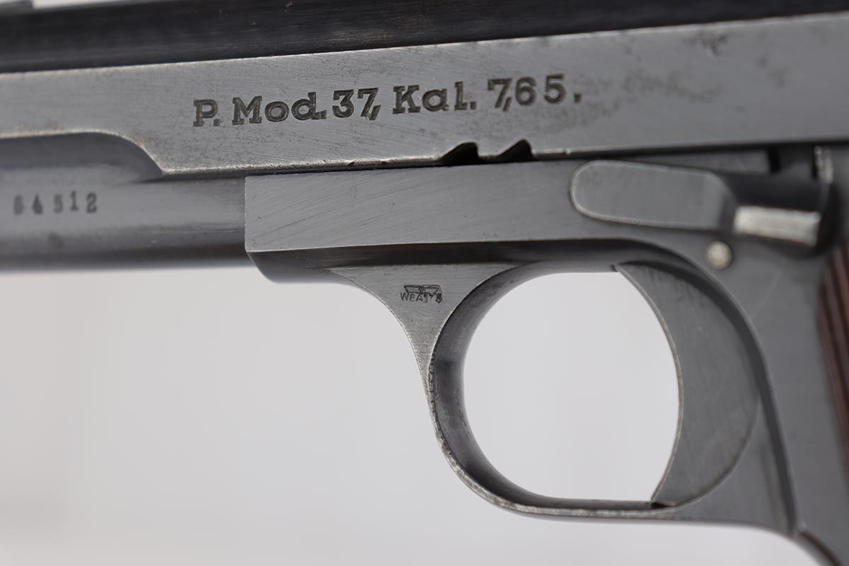 7/8/19 – This is an excellent Nazi issued Femaru M37 from 1943. The pistol is all matching and original, including the magazine. Bluing rates at 95-96% with minimal actual bluing loss on the pistol, but fairly obvious oxidation on the straps and slide. Minty bore and excellent grips.