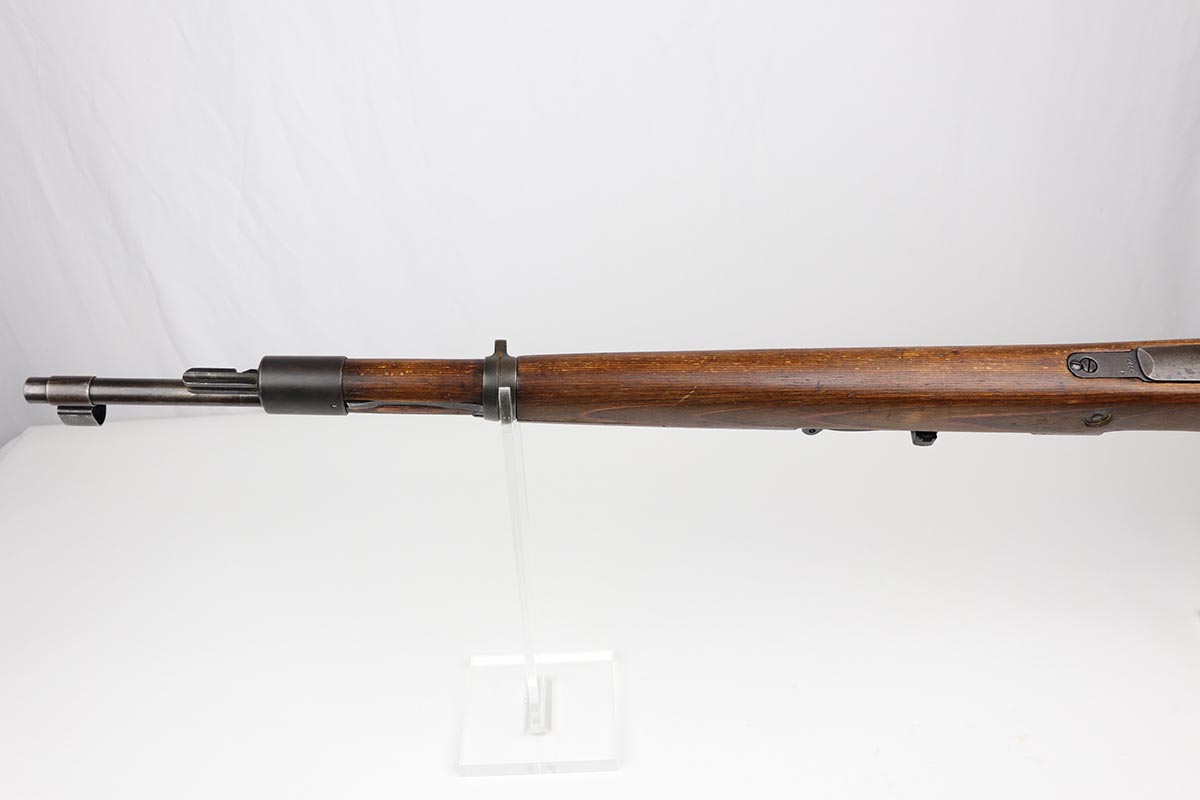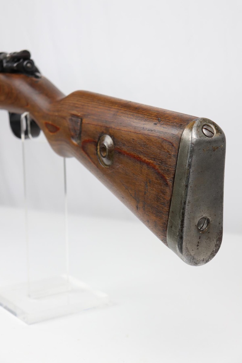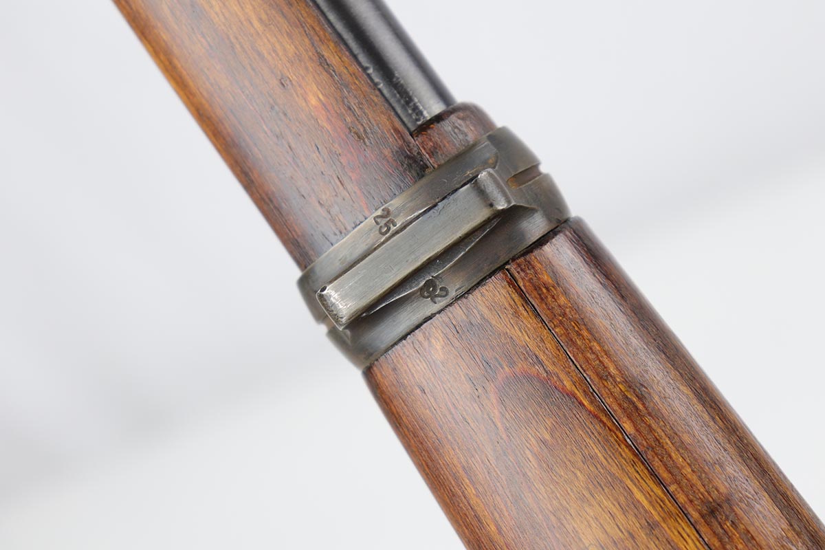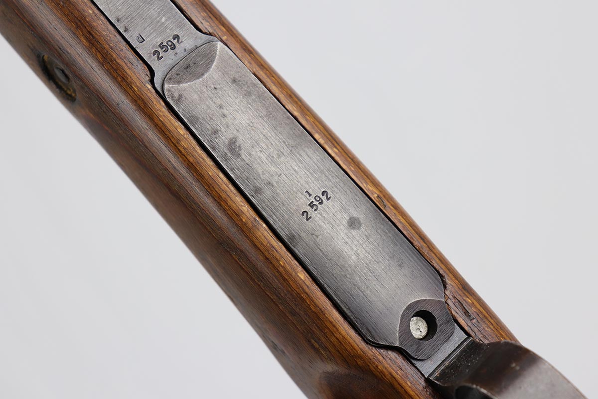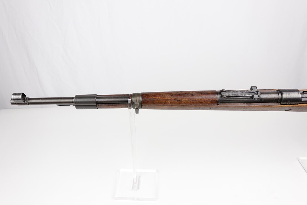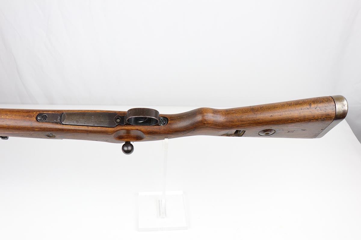 10/2/19 – This is an all matching and original K98 that was manufactured in 1943 by Gustloff Werke for the German Army. The finish rates at around 90% with a very nice receiver but some notable thinning on the trigger grouping, and some patina/thinning on the barrel and bands. The stock has sharp Heer Army proof on the right side. It’s in very good shape but does have a thin surface crack behind the rear screw of the trigger housing. Bore is shiny with strong rifling but some frost throughout. Original sight hood present, but no sling or cleaning rod.