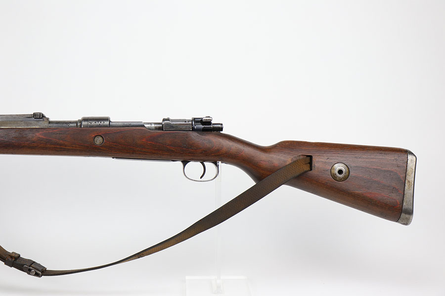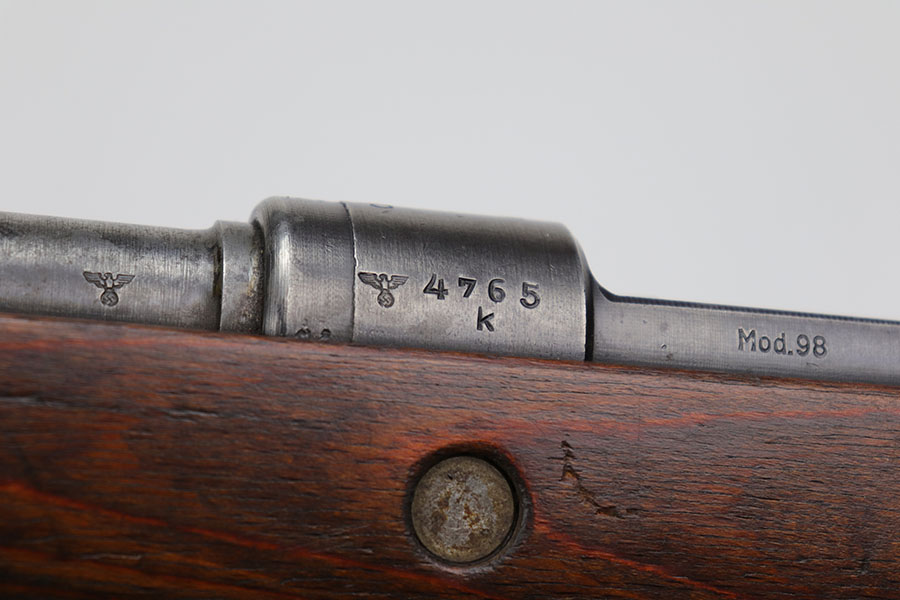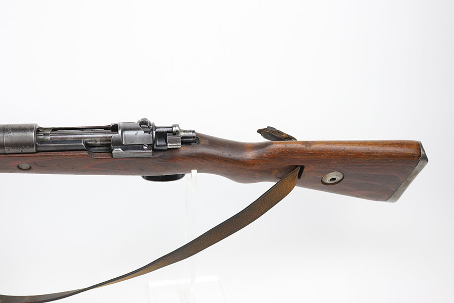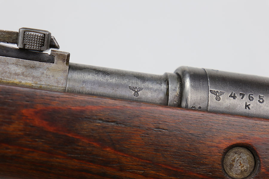 10/14/20 – This is a Nazi issued K98 that was made in 1943 at the Waffen-Werke Brunn AG factory. The rifle is nearly completely matching and original, with just a mismatched magazine floorplate, adjustable rear sight and bolt release latch. Otherwise, it has fully matching receiver, barrel, bands, trigger group, bolt assembly and stock. The finish is original on the metal parts but thin throughout. Stock is in great condition with no major issues. Strong, shiny bore. Original sling is present.