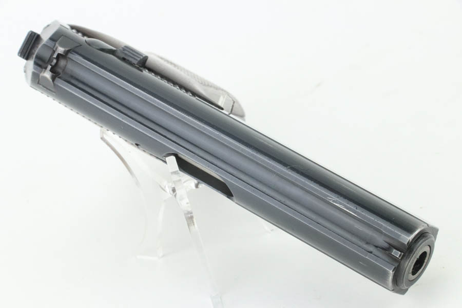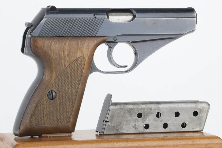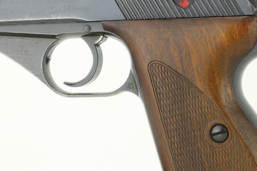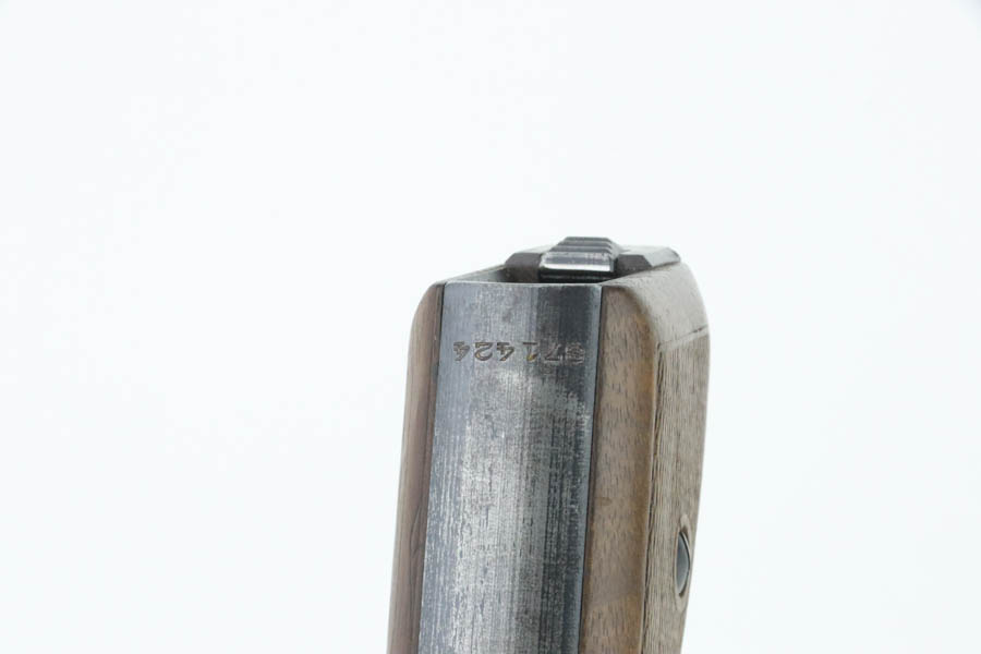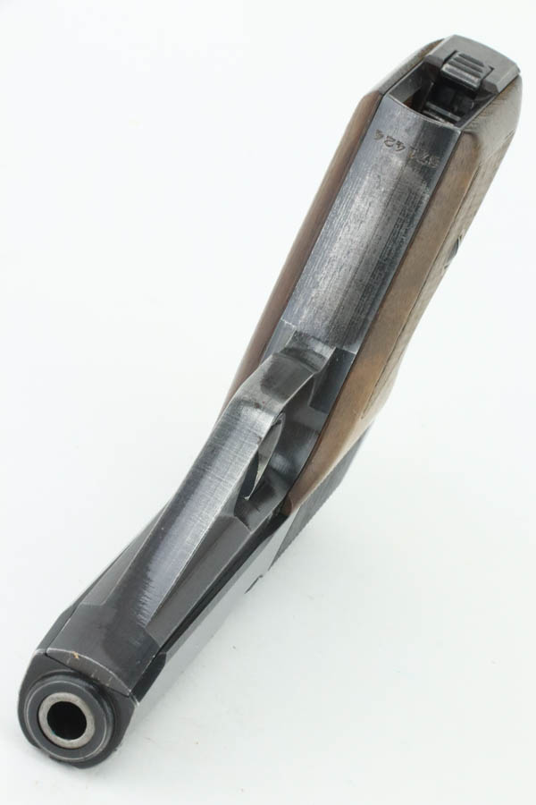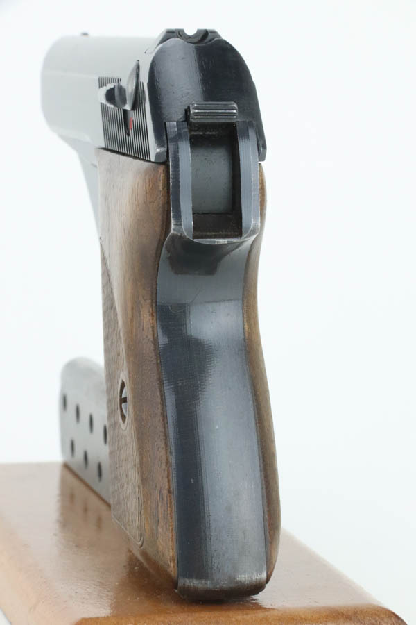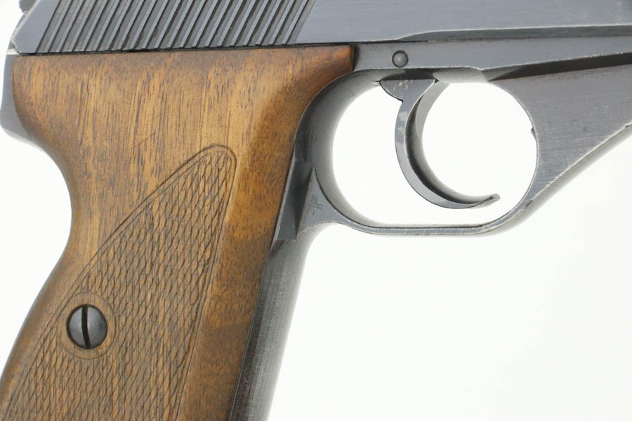 7/31/24 – This is a very nice example of a Mauser HSC issued to the Nazi military in 1943. All matching with the proper “Eagle 135” military acceptance proof. It has retained about 93% of its original high polish finish. The majority of the finish loss is on the front strap, but there is also some minor wear on the slide, concentrated mostly around the high edges. Fitted with period-correct wood grips and comes with one proper magazine. Mint bore.