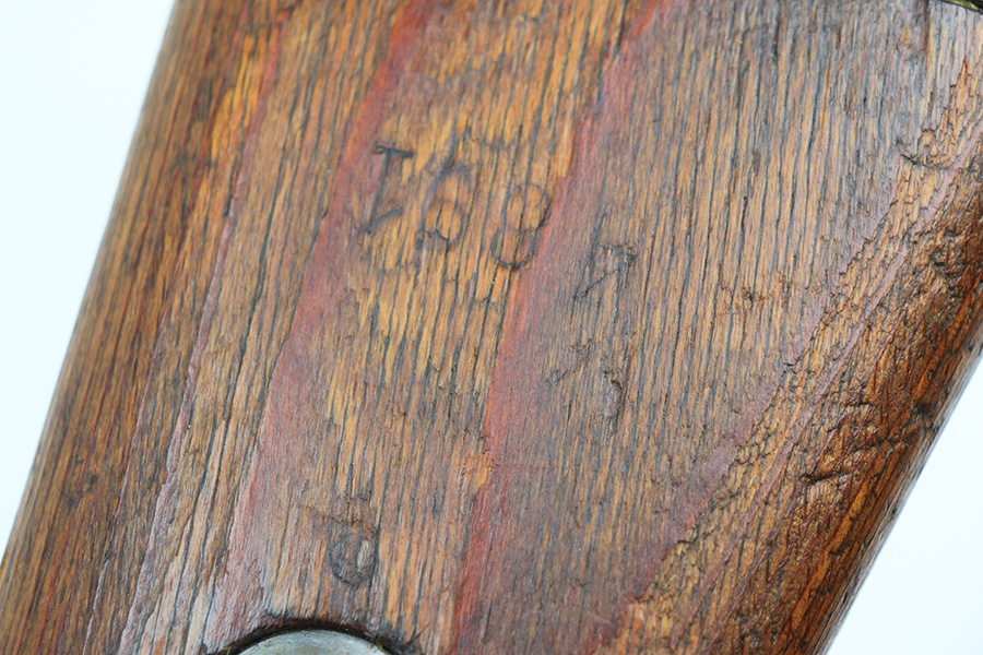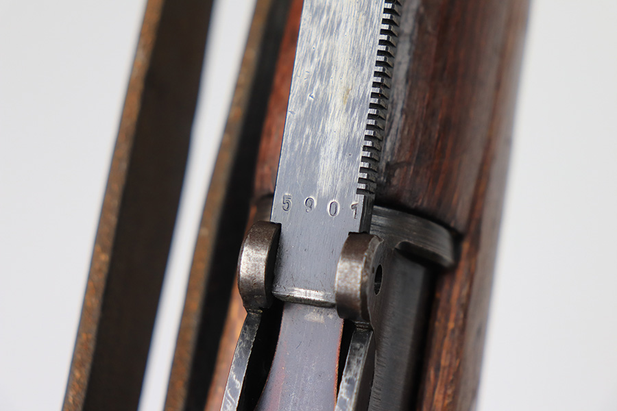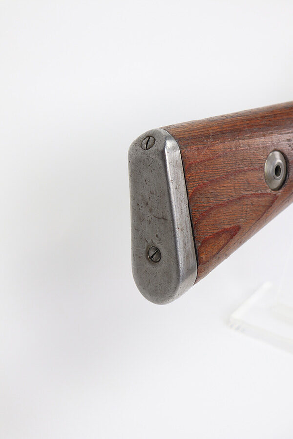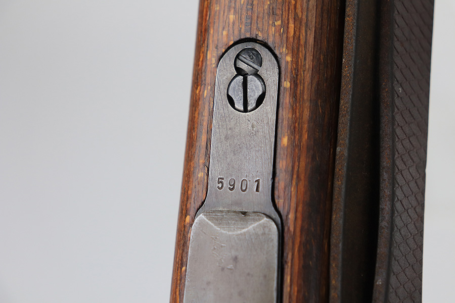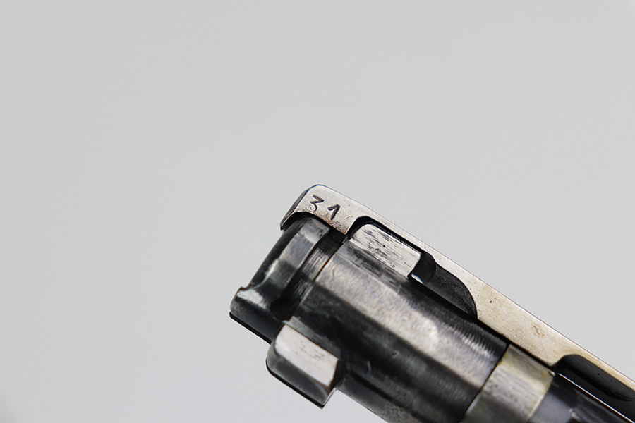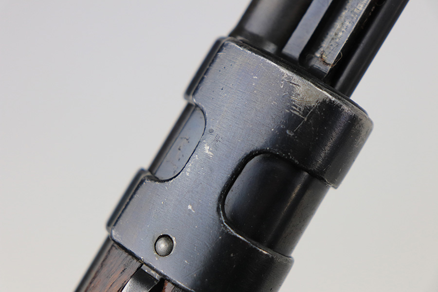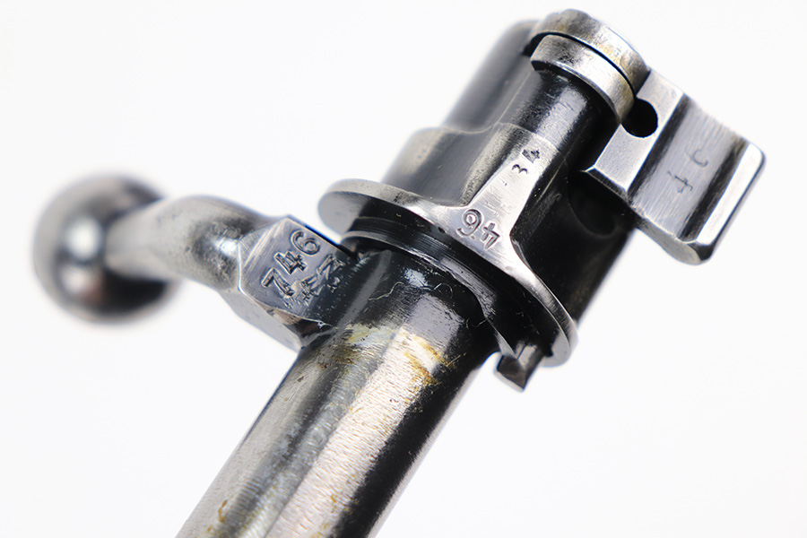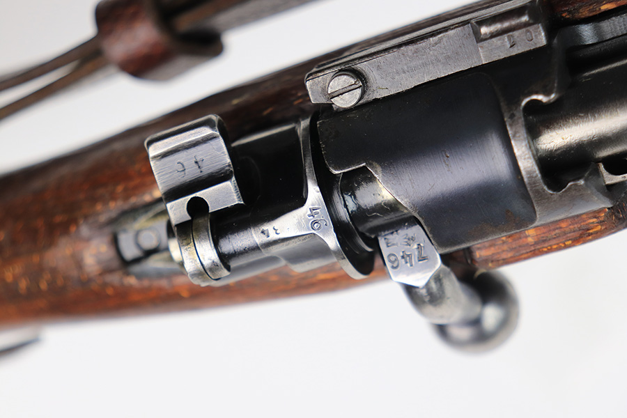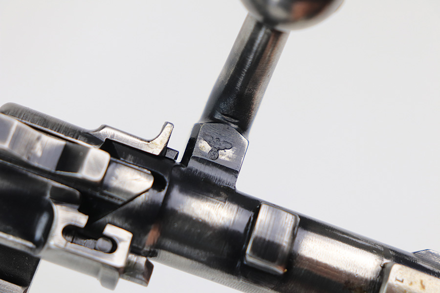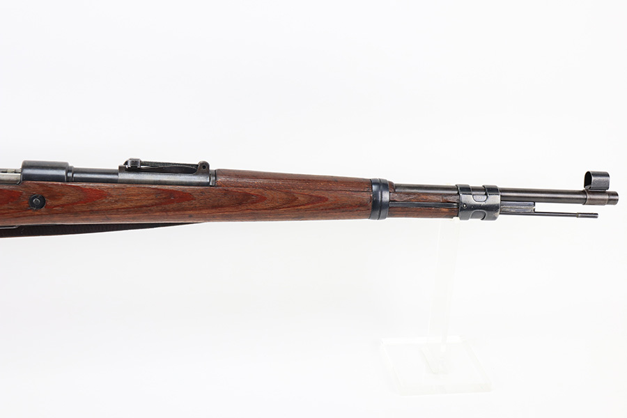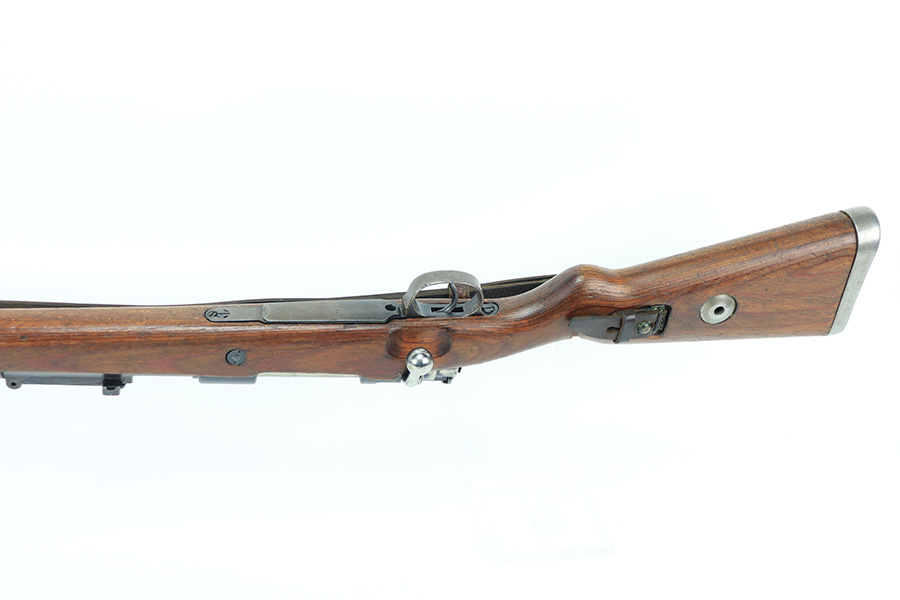 1/19/22 – This is a very nice example of a Mauser K98 rifle issued to the Nazi military in 1943. It comes with an original cleaning rod and brown leather sling. The gun is mostly matching. Mismatched parts include the rear barrel band, bolt, and stock. The front barrel band is un-numbered. No import mark. Overall, the gun is in very nice condition. There is minor splotchy discoloration on the receiver and minor thinning along the barrel. Noticeable finish loss on floor plate and trigger group. There is minor scratchy wear on the front barrel band and minor spotty oxidation along the barrel and on the floor plate/trigger group. The wood stock is nice with only minor dings, dents, and bruises throughout. The bore has good rifling with some minor pin-pricking in the grooves. This gun would make an excellent shooter.