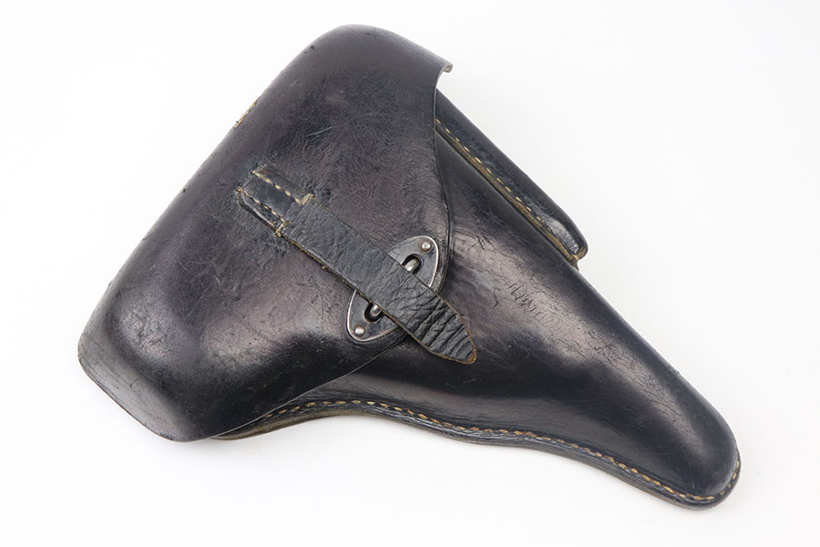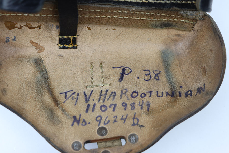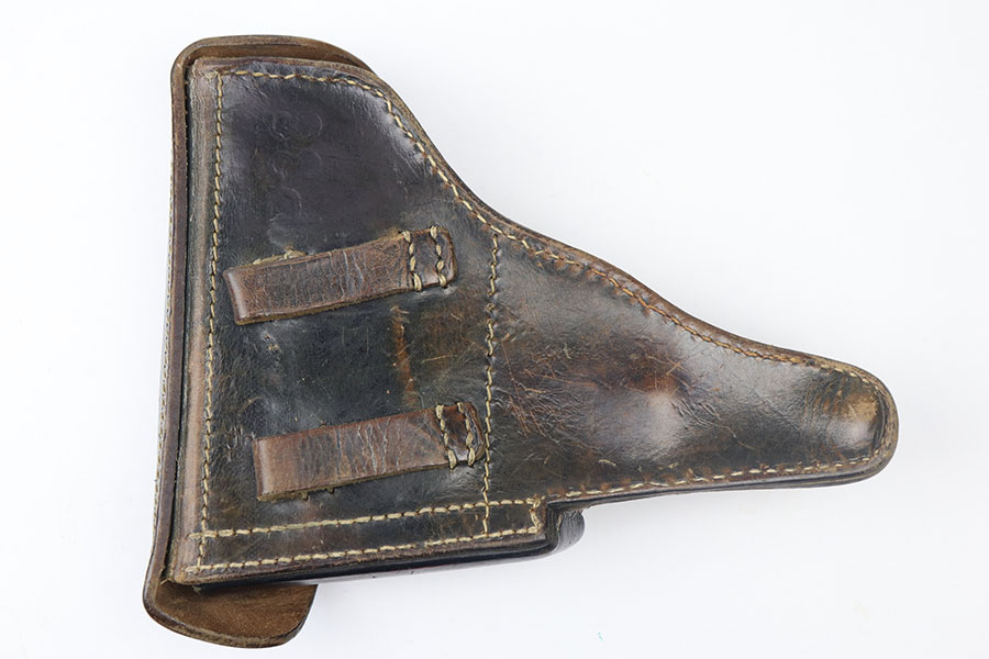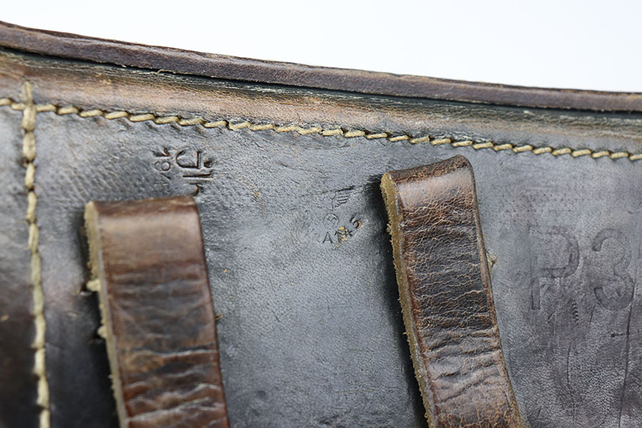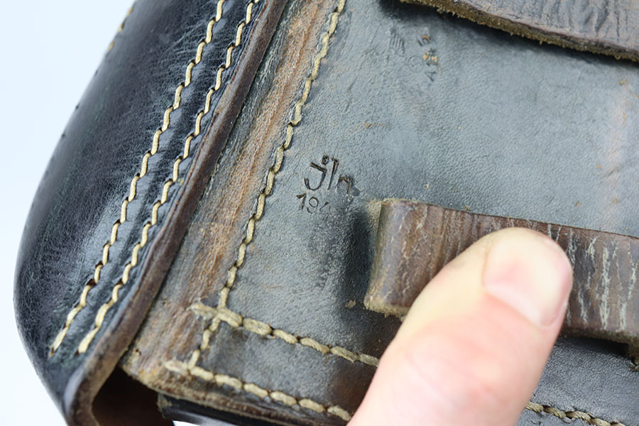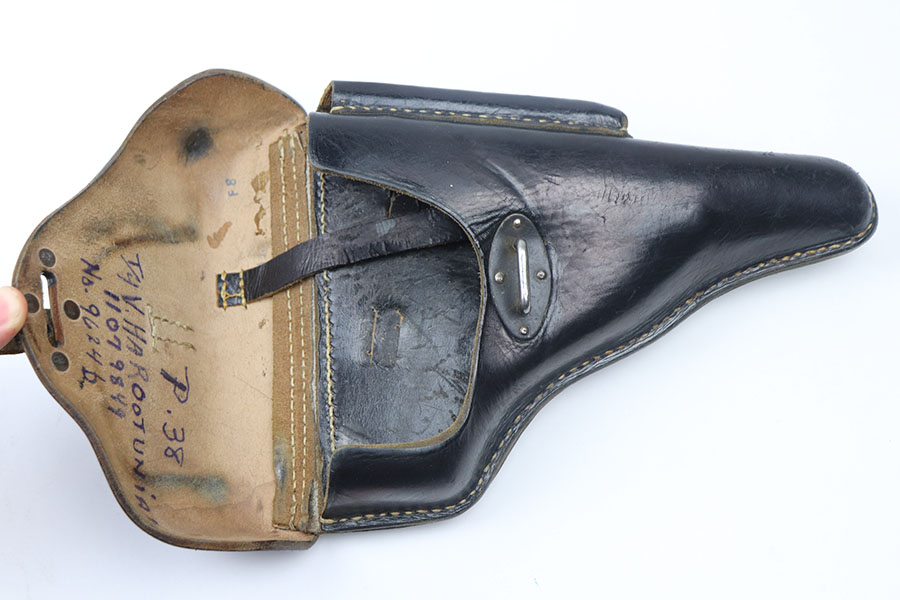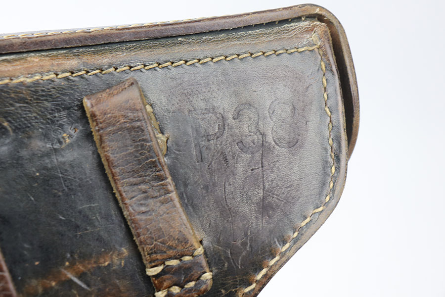 6/4/21 – This is an original 1943 P.38 holster. The holster is dated, maker stamped, waffen proofed, and P.38 stamped on the back leather. The last digit in the date stamp is hard to read, but is a “3” for 1943. The leather is in great condition overall with some mild signs of use and light pliability. Some interior personalization on the leather. No stitching issues.
