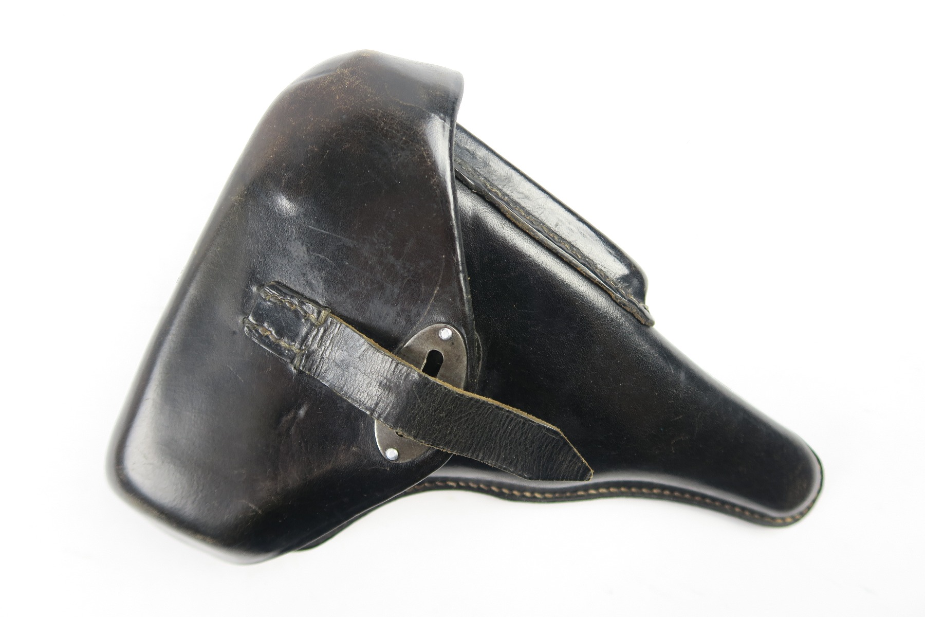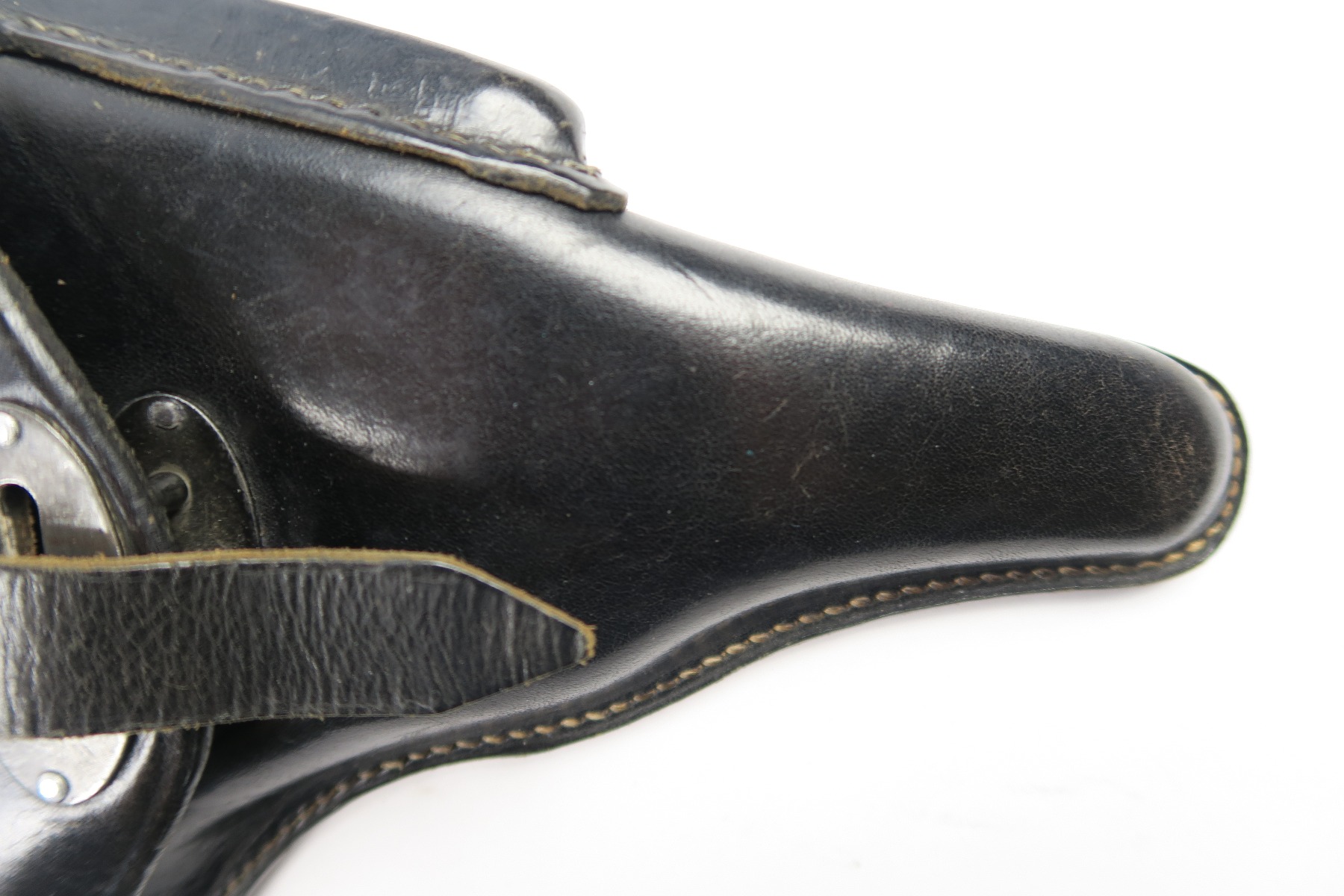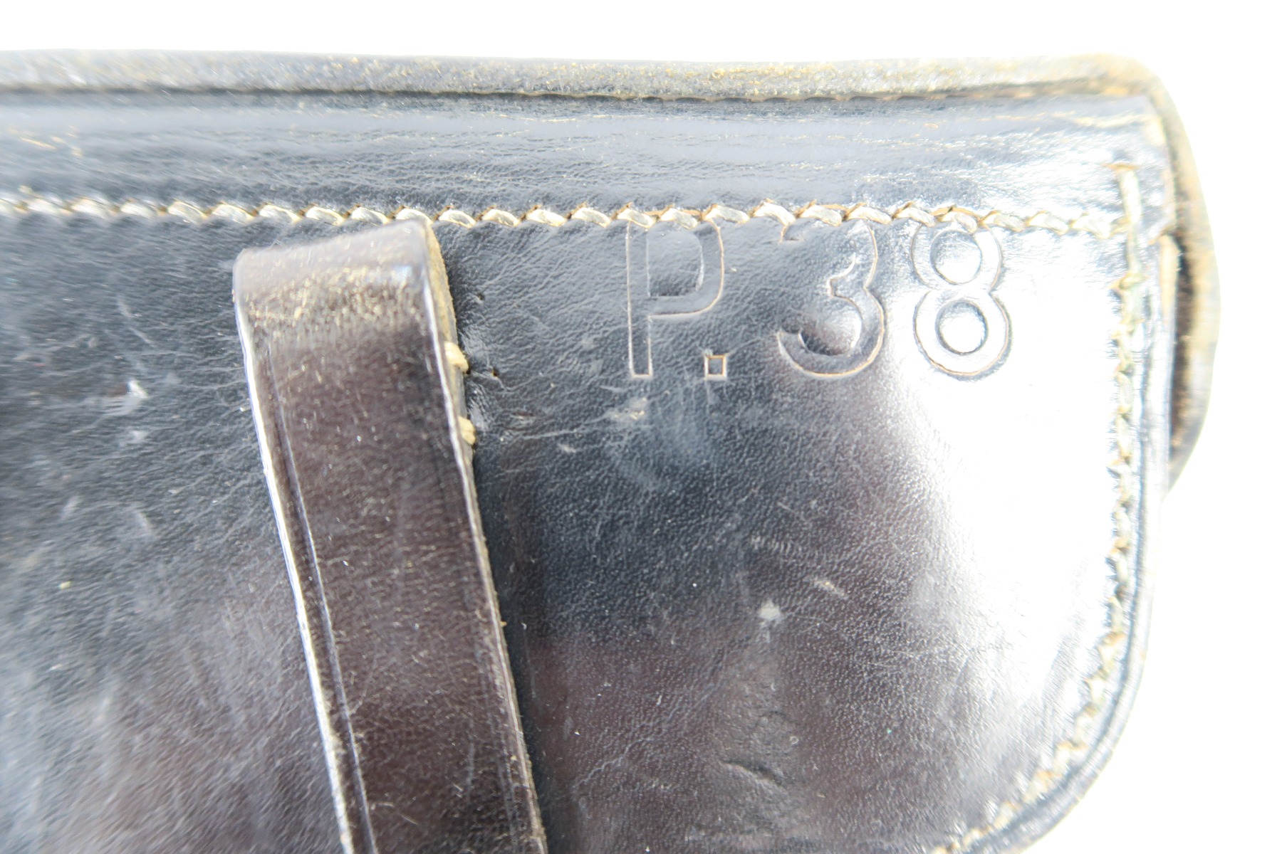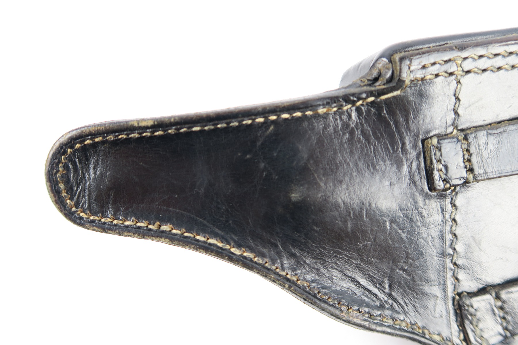 4/27/18 – This is an original 1943 dated P.38 holster from WW2. The holster is very clean with pliable leather in the hardshell style. The holster shows light signs of use but is excellent overall. Very clean interior leather and no notable exterior flaws. The back of the holster is “dkk” maker stamped and 1943 dated with a waffen military proof and P.38 stamp. Guaranteed original and authentic.