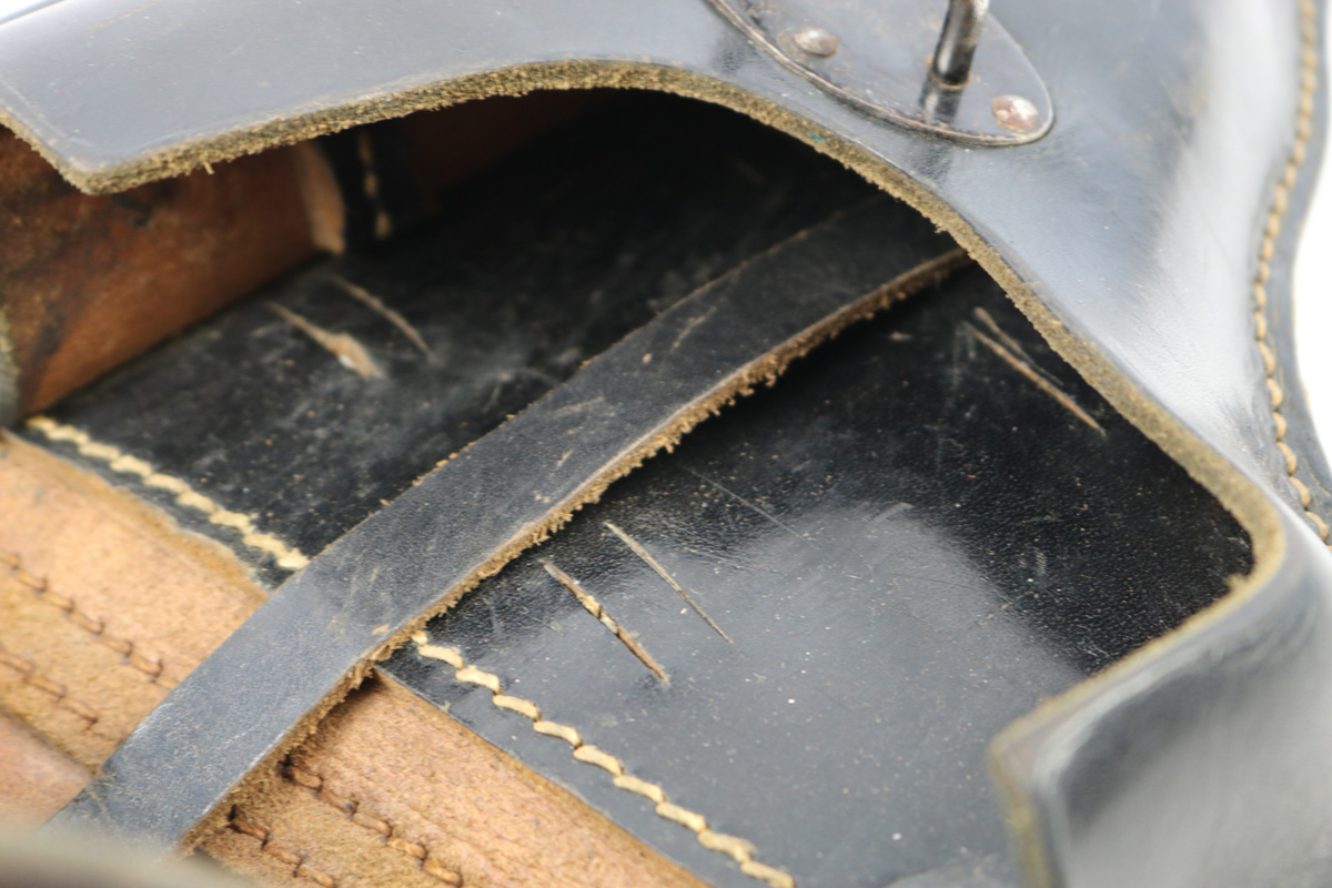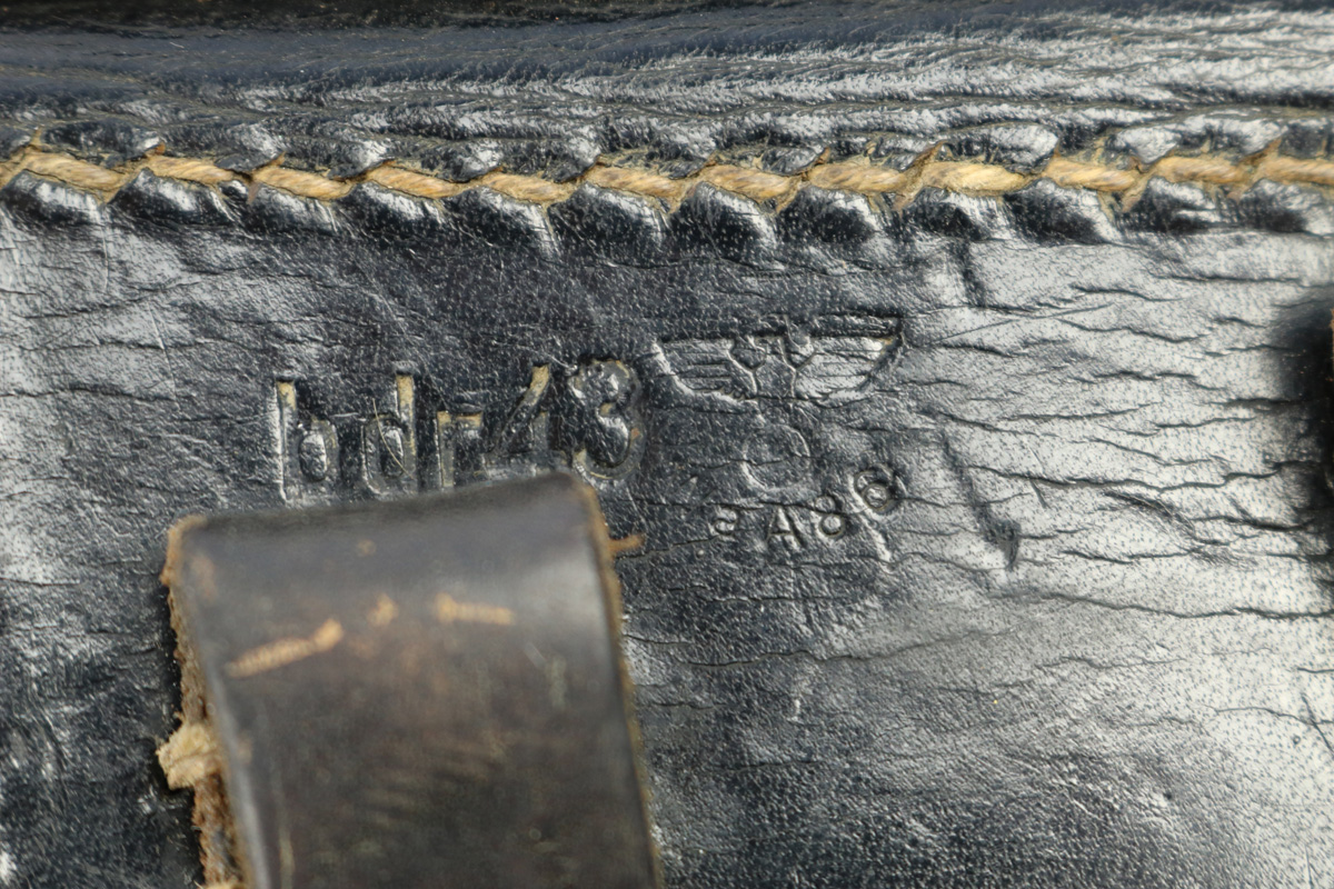 9/5/18 – This is an original 1943 dated hardshell P.38 holster from WW2. The back of the holster is maker stamped, dated, and waffen proofed. The leather is soft and pliable with normal wear. No major issues, just normal aging and signs of use. The stitching is all in tact and original. Guaranteed original and authentic.