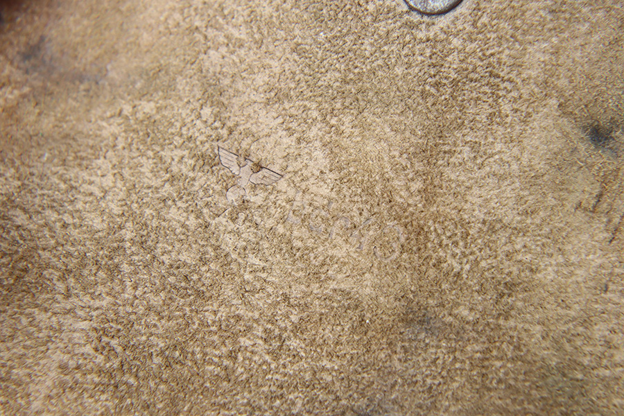 12/27/23 – This is an original WW2 holster for a Sauer 38h, Mauser HSC, or similar sized 7.65mm pistol. The holster features black pebble grain leather that’s stamped on the interior leather with a maker code (bdr), date (43), and waffen military proof. There’s also a “41” stamp on the interior leather near the edge, which we’re not sure the significance of. The leather is in very good condition with normal pliability and typical use wear. The top leather has some mild surface wrinkling and scuffs. The stitching is excellent and all original.