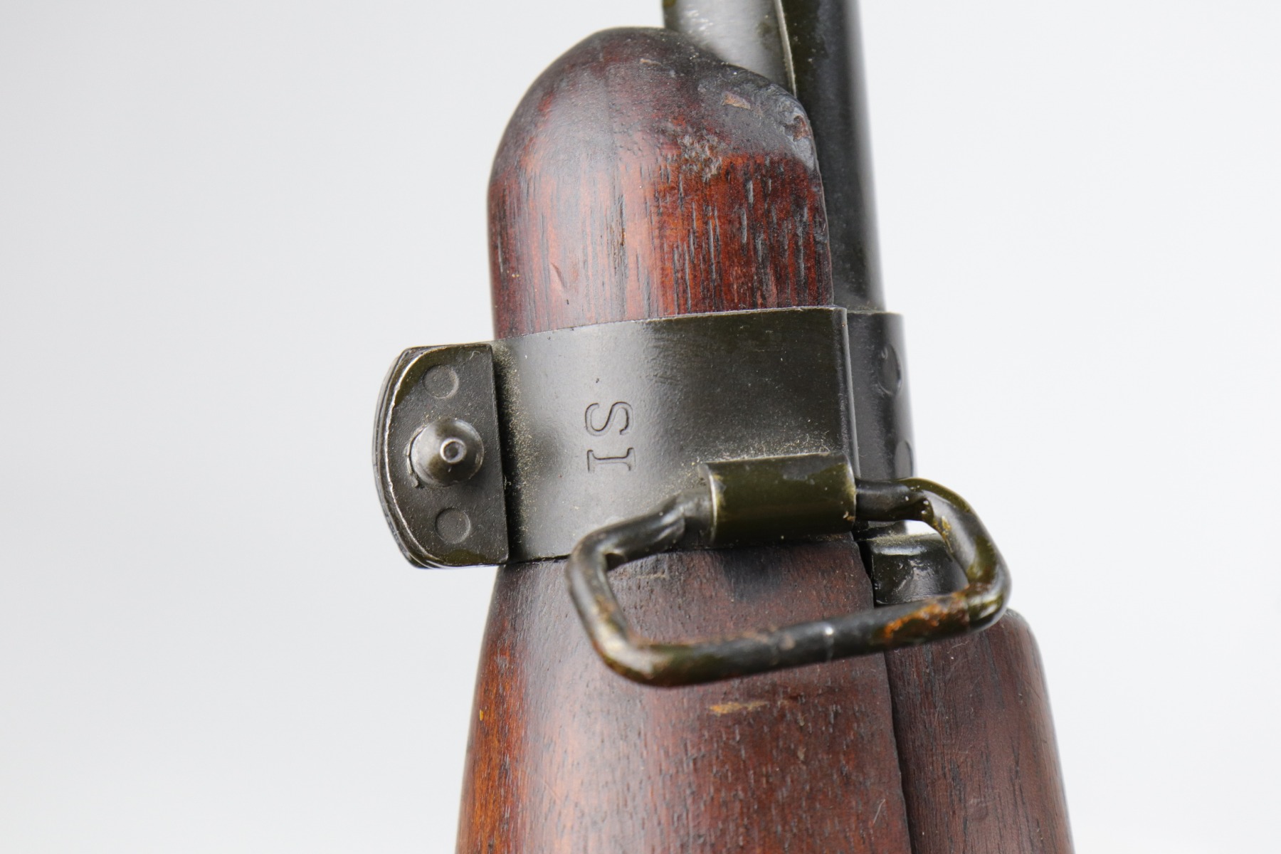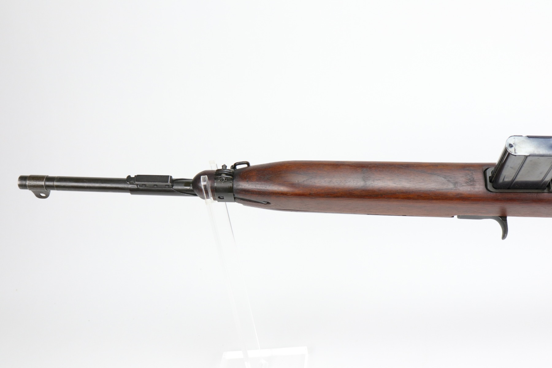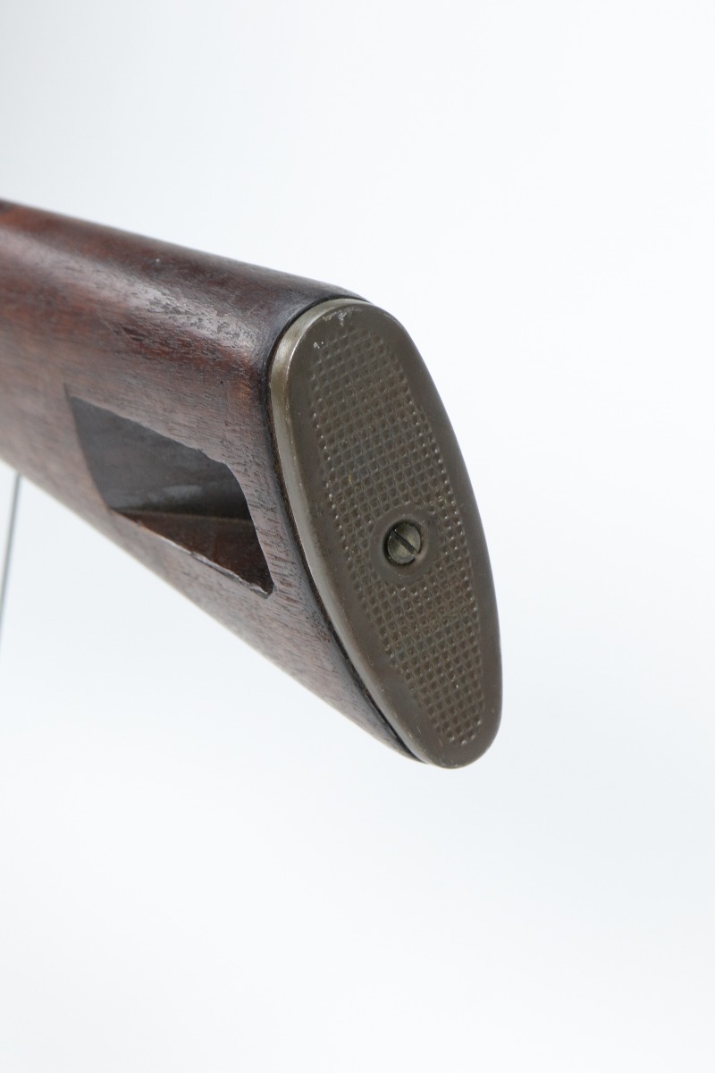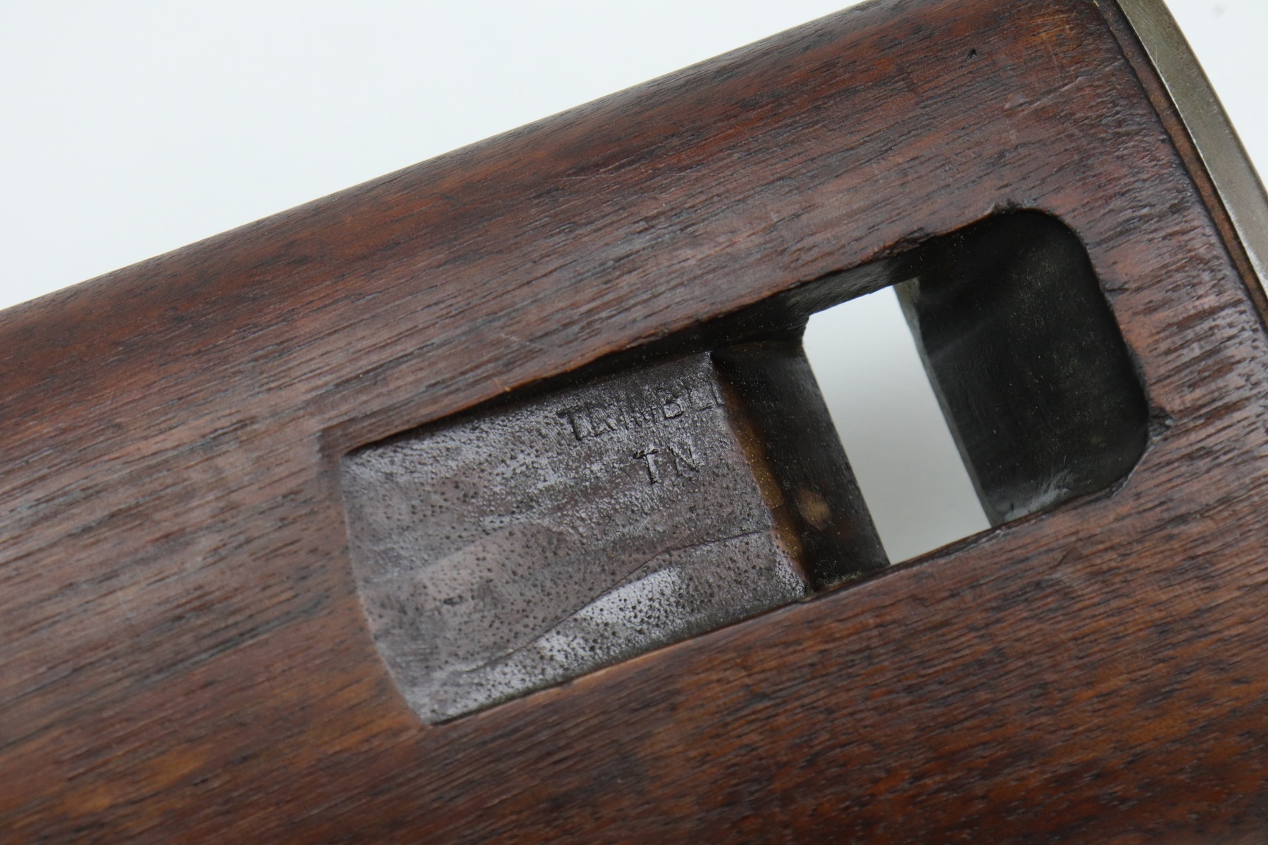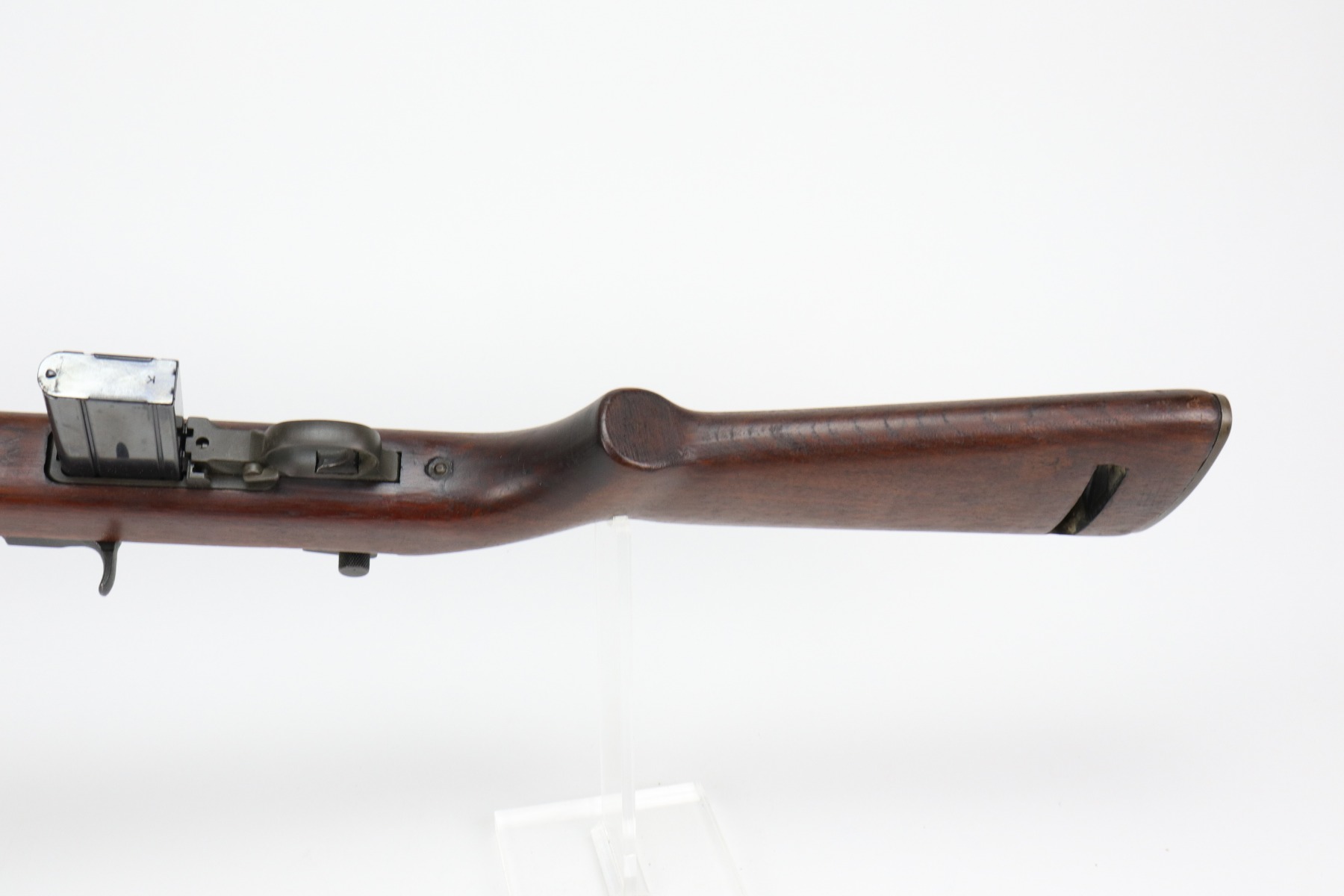 2/26/21 – This is an excellent example of a Saginaw M1 Carbine issued to the US military in 1943. A bayonet lug and adjustable rear sight were added, likely for the Korean war. It has a Winchester barrel and a Trimble stock. A parts list with their markings is included. Most of the internals are Saginaw. Overall the gun is in excellent condition – just a couple of areas of wear on the barrel. The stock is excellent – just one or two minor dings. Minty bore. Comes with an original WW2 magazine.