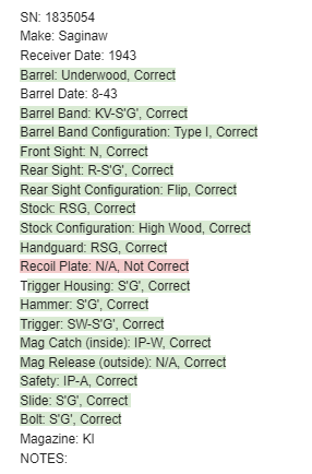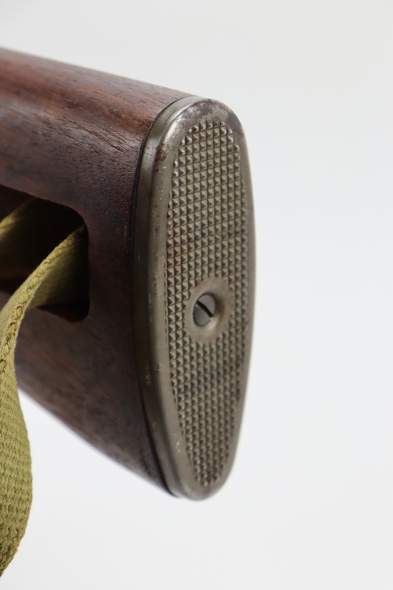 12/7/23 – This is a Saginaw S’G’ M1 Carbine issued to the US military in 1943. It is almost entirely correct, except for an un-marked recoil plate. A complete parts list with markings is included in the photographs. The gun has retained nearly all of its finish, but there is some spotty patina and minor discoloration along the barrel. Minty wood furniture, but there is a small spot of discoloration on the upper hand guard. Comes with a canvas sling and one magazine. Mint bore.