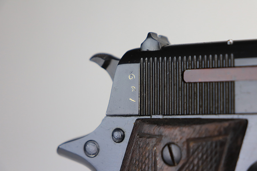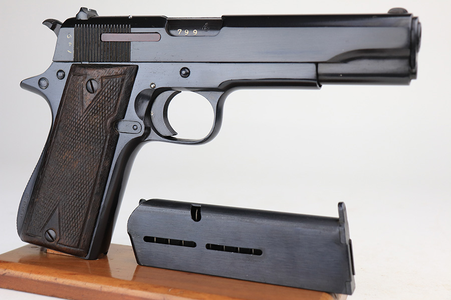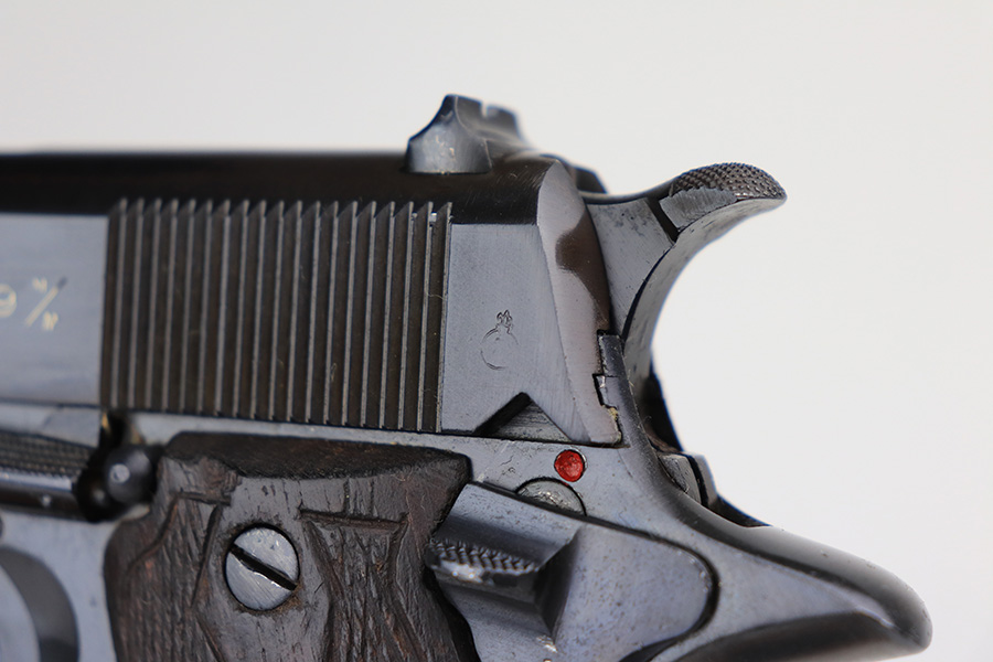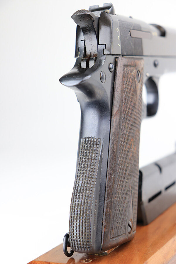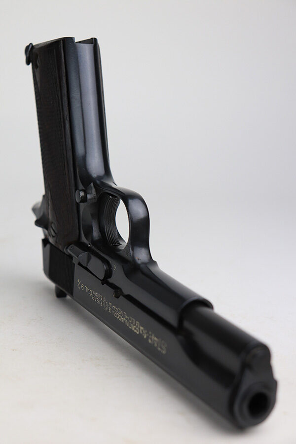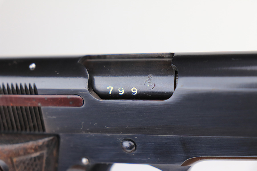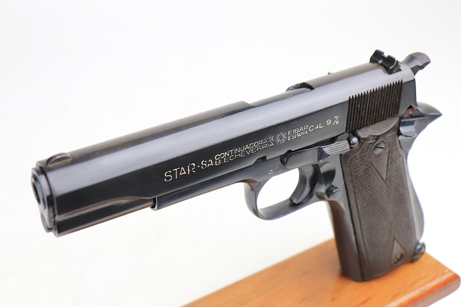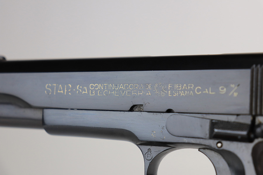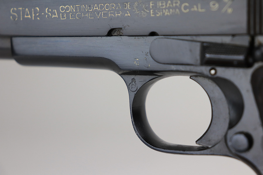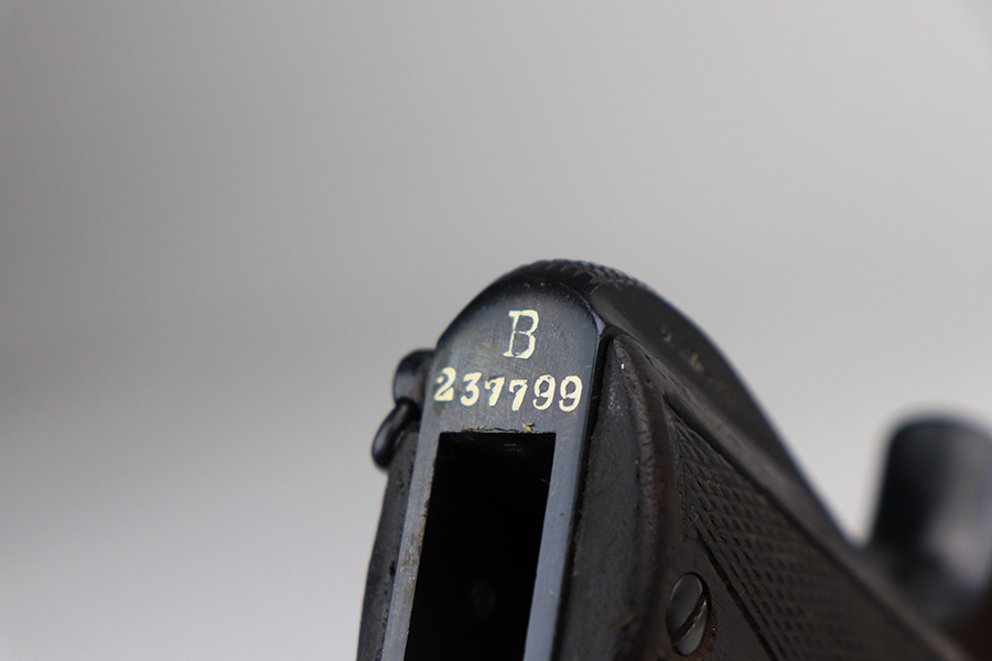 1/12/22 – This is an excellent example of a Spanish Model B manufactured in 1943. It is all matching and has the proper Spanish proofs. It comes with a matching magazine that is hand-numbered on the spine. The whole gun has been professionally restored, so the bluing is really nice. There are noticeable signs of wear or finish loss. The gun comes with a slightly worn pair of period-correct wood grips. The rifling in the bore is a bit worn, and there is noticeable frosting in all of the grooves. Import mark on the back strap.