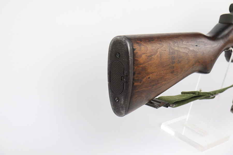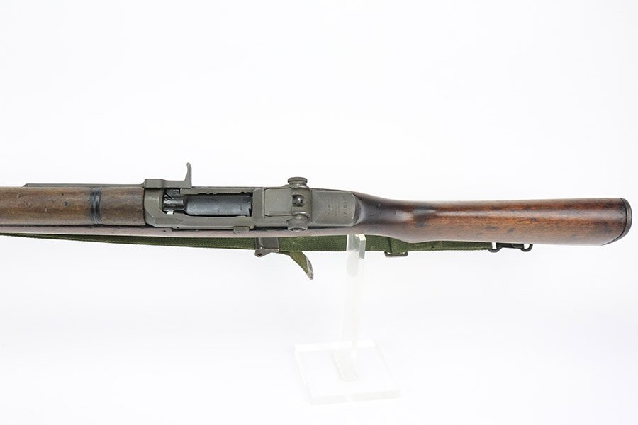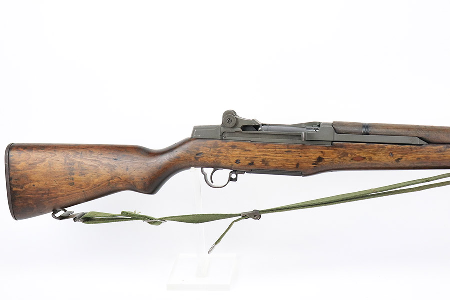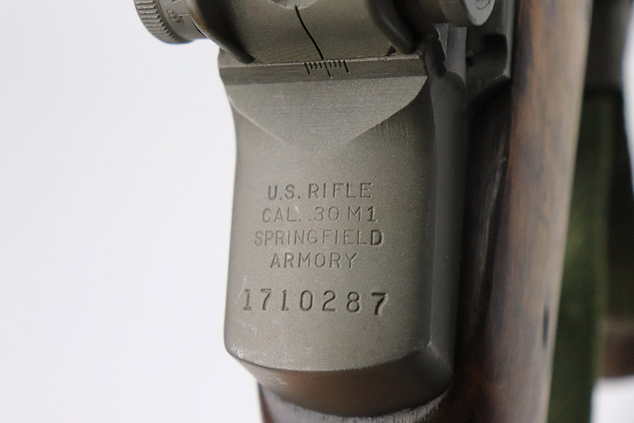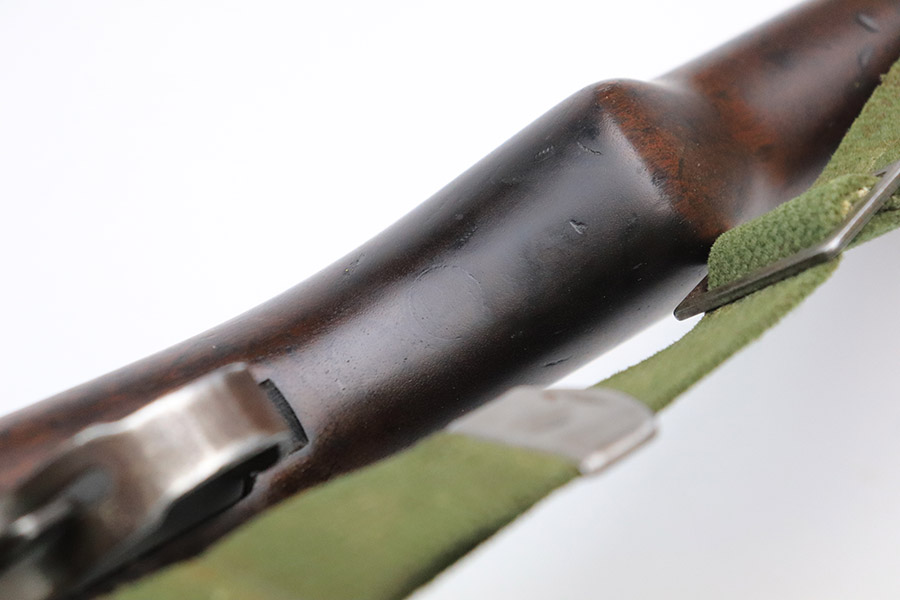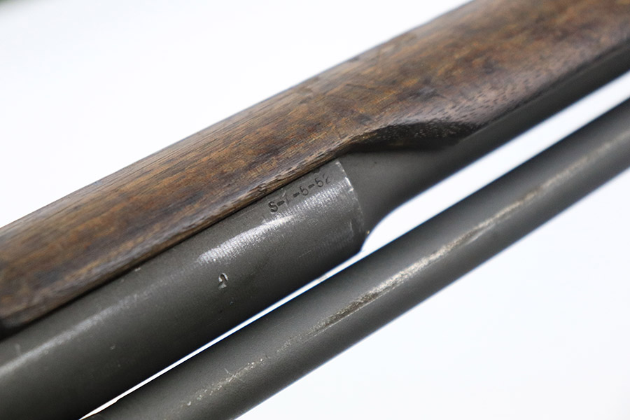 11/18/22 – This is a nice example of a Springfield M1 Garand originally issued to the US military in 1943. The barrel was later replaced and is dated May of 1952. Import on the left side of the barrel. Overall, the metal parts have retained about 94-95% of their parkerized finish. There is not a lot of actual finish loss, but there are light scuffs along the barrel, along the gas, an on the receiver (especially on the left side). Minor wear and brown patina on the trigger guard. Noticeable brown patina on the butt plate. The condition of the upper and front hand guards do not match the stock. There is noticeable bruising on both. The stock is in much nicer condition but appears to have been sanded. There is what appears to be a faint rack number on the right side of the butt stock. The bore has good rifling with minor pin-pricking throughout. Throat reading: 3. Muzzle reading: 8.