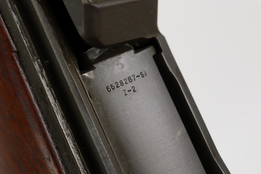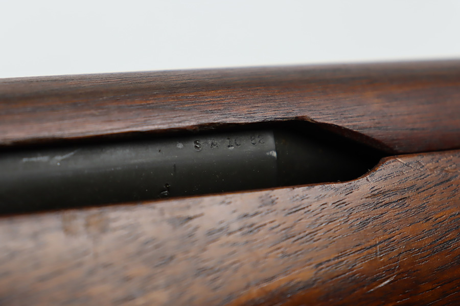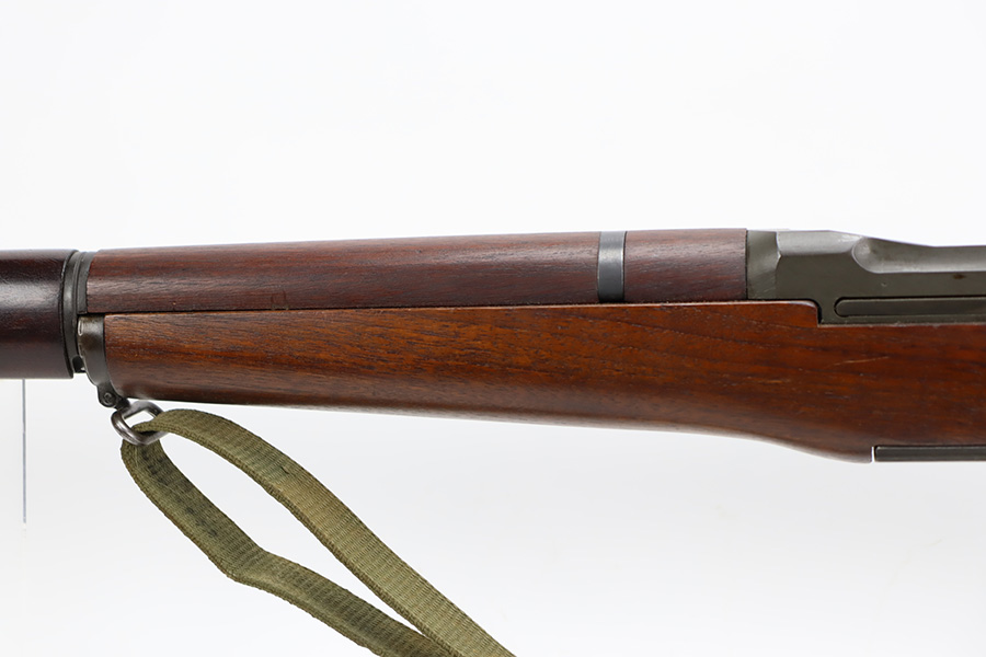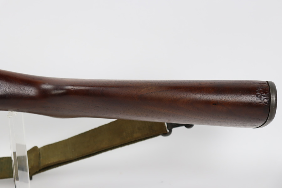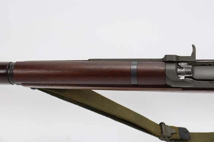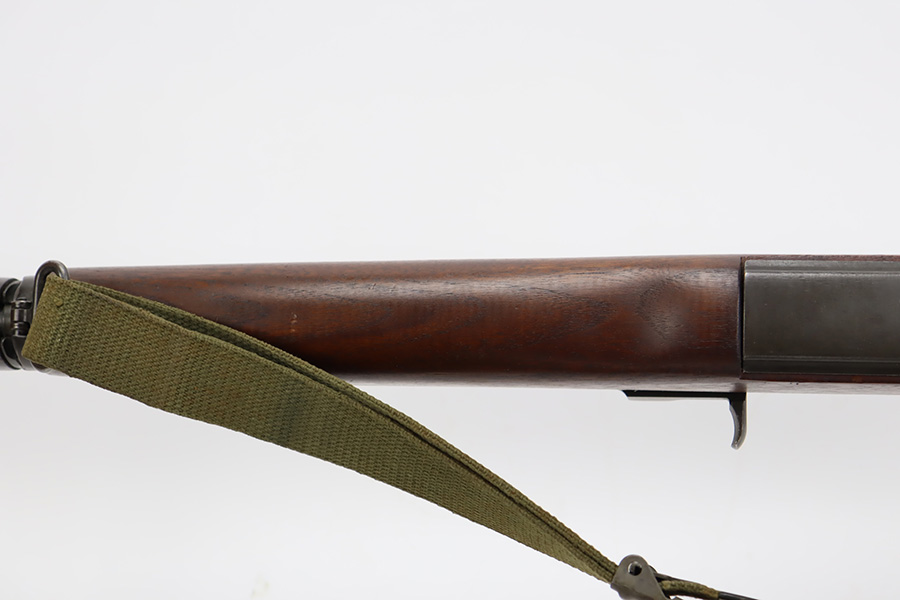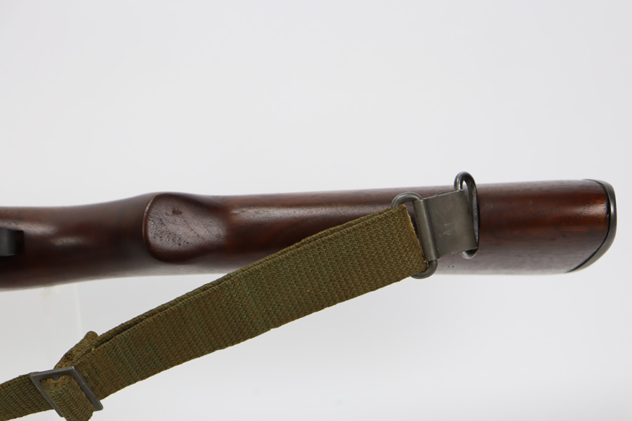 10/5/23 – This is an excellent example of a Springfield M1 Garand. The serial number on the receiver dates to about October of 1943. The barrel is Springfield marked and dated October of 1952. The stock is un-marked. The metal parts have retained about 97% of their finish with just some minor wear on the barrel. The wood furniture is minty with one small gouge on the right side of the butt stock. Muzzle reading: 1. Throat reading: 1. Comes with a green canvas sling.