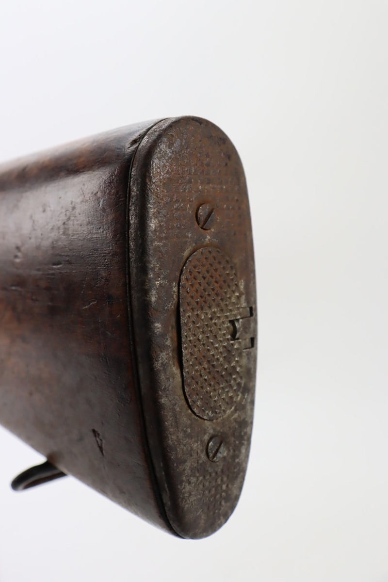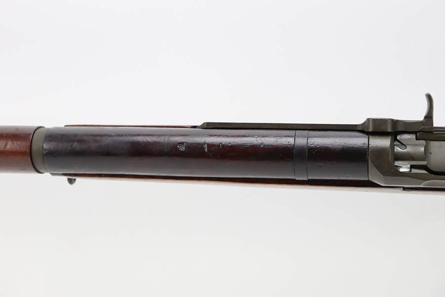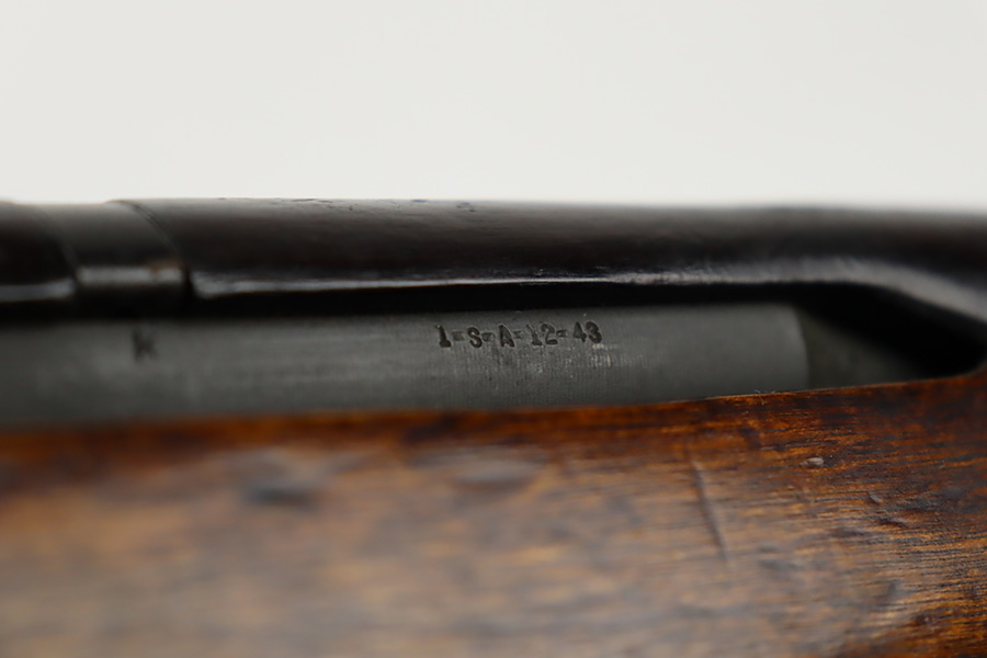 11/3/23 – This is a very nice example of a Springfield M1 Garand. The serial number on the receiver dates to about October of 1943. The barrel is Springfield marked and dated December of 1943. The stock is a DOD-marked replacement. The finish on the metal parts rates about 95% with just minor muzzle wear. Obvious spotty oxidation on the butt plate. The stock shows minor bruising and dings throughout. The color of the stock and handguards do not match. The bore has great rifling with light pin-pricking in the grooves. Muzzle reading: 3. Throat reading: 2.
