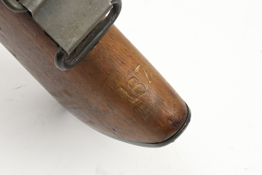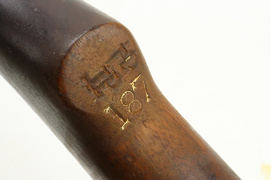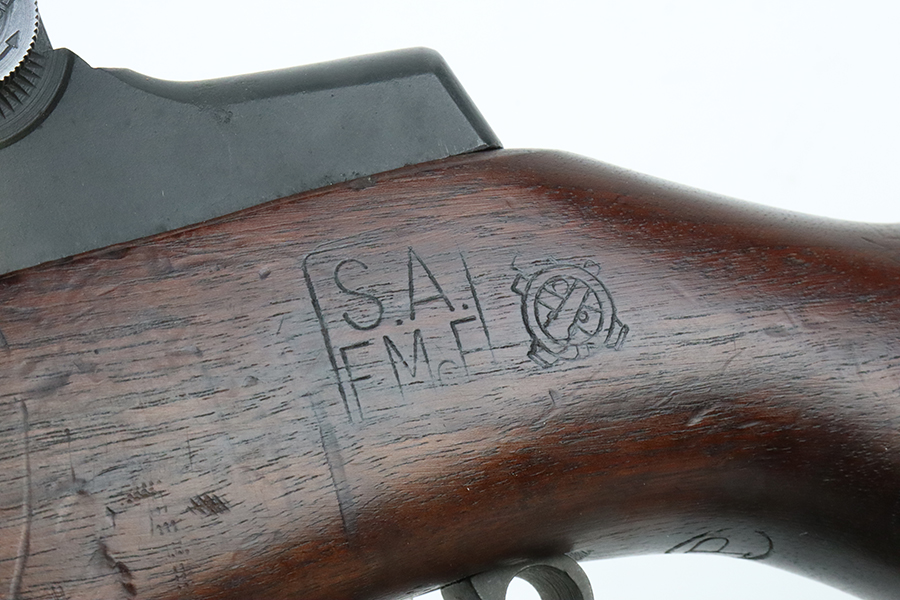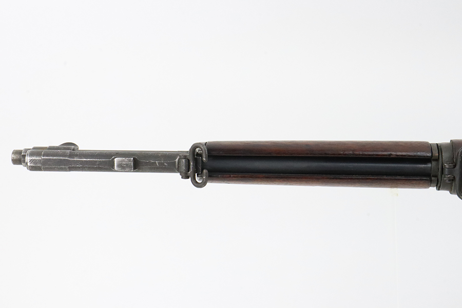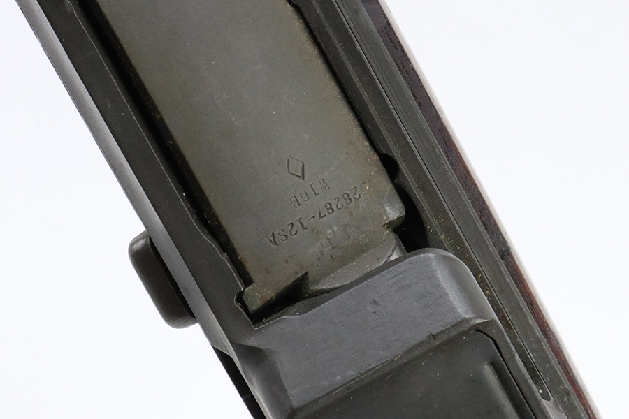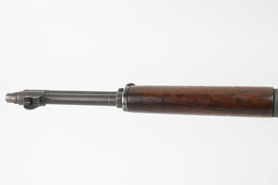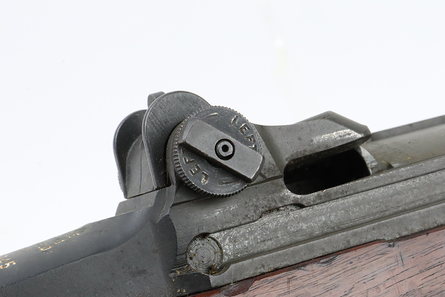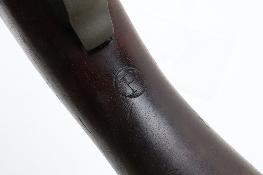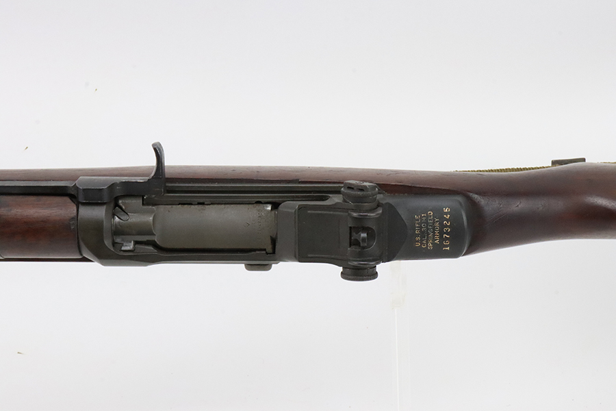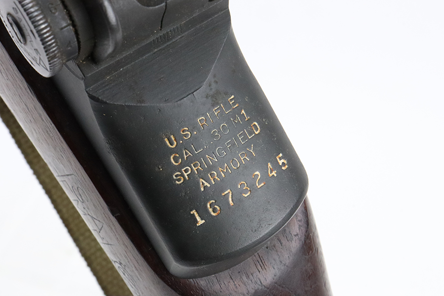 2/3/24 – This is a correct example of a Springfield M1 Garand from 1943. The serial number on the receiver dates to about May of 1943. The barrel is Springfield marked and dated 6-43. The left side of the stock has the proper military cartouches. There are added rack numbers to the bottom edge of the butt stock. The finish on the metal parts rates about 93-95% with just some minor wear on the gas tube. There are tiny scratches and bruises on the wood furniture, a couple of hairline cracks in the upper handguard, and what looks like some water staining on the butt stock. The forward handguard is a little loose. The bore has good rifling with minor pin-pricking throughout. Muzzle reading: 2.5. Throat reading: 2.5.