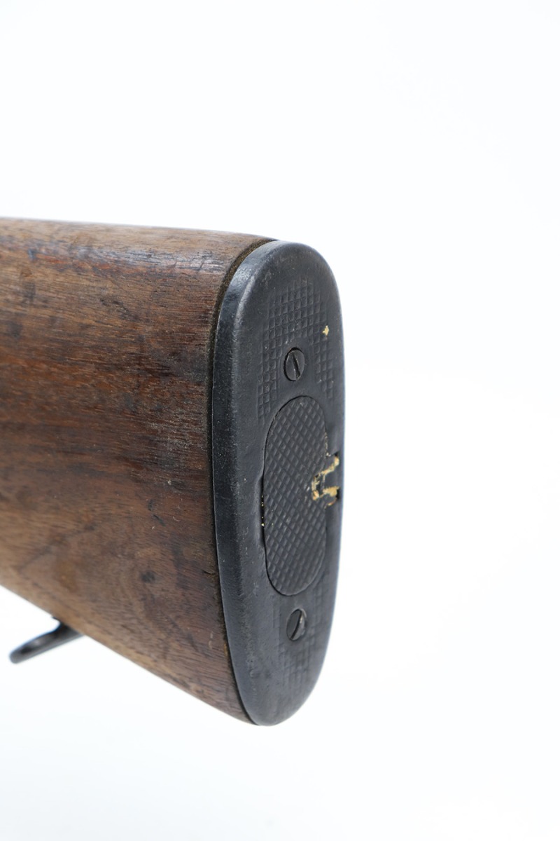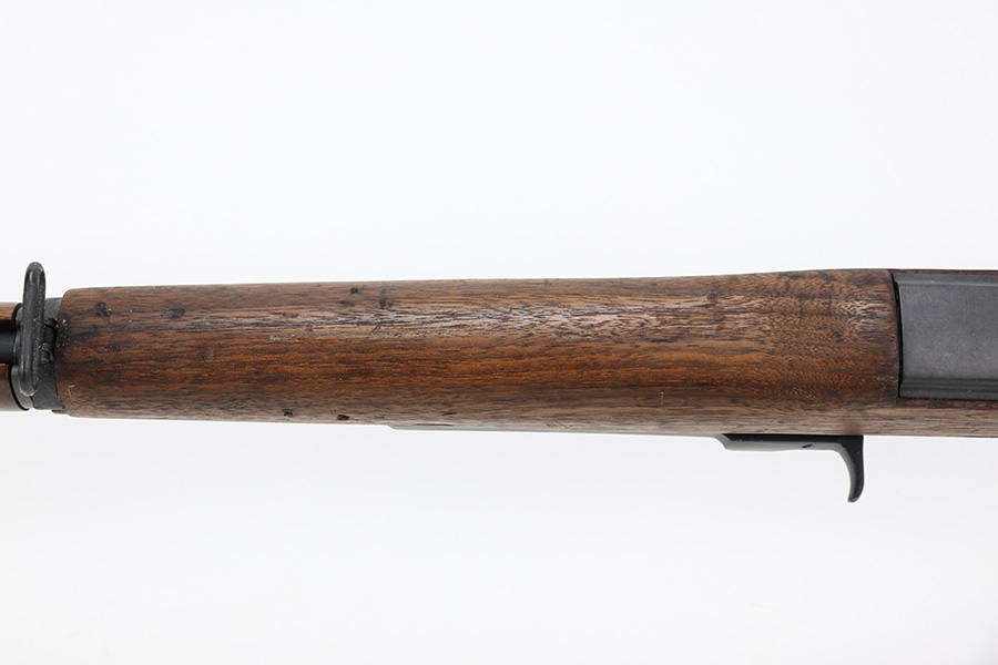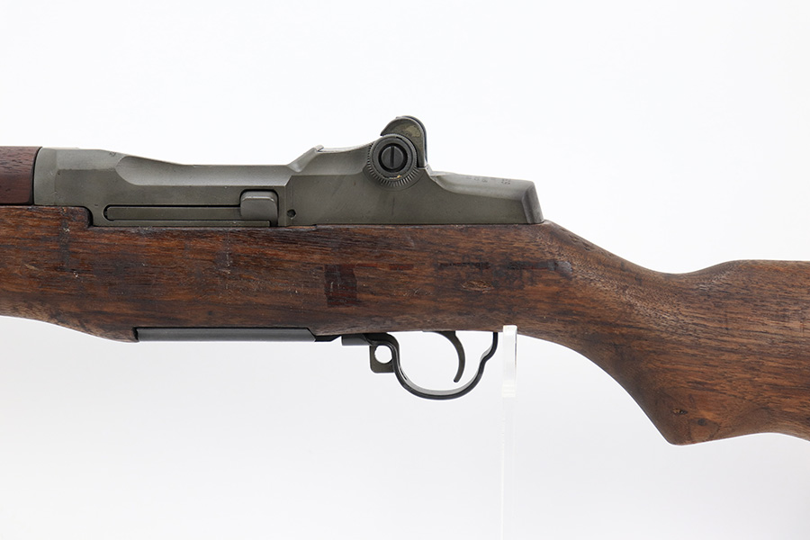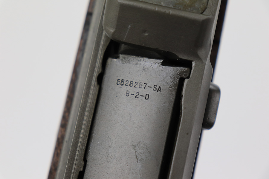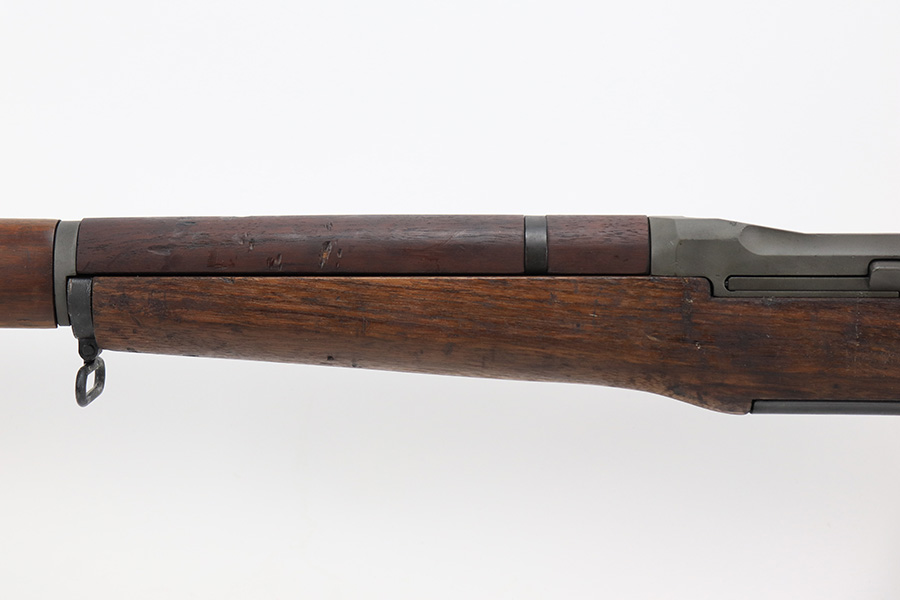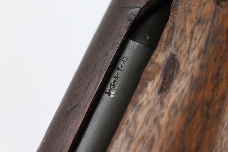 5/11/23 – This is a nice example of a Springfield M1 Garand issued to the US military during WW2. The receiver dates to 1943. The barrel is Springfield marked and dated July of 1943. Proper SA internal parts. The stock has the proper SA inspection stamp and cross-canon military cartouches. The metal parts have been refinished, so there is very little actual finish loss. There is just some minor muzzle wear and some areas of tiny pin-pricking under the finish here and there. The wood furniture is in nice condition, but have been sanded. A series of noticeable dings in the upper handguard. The bore has good rifling, but there is minor pin-pricking throughout. Muzzle reading: 1. Throat reading: 1.