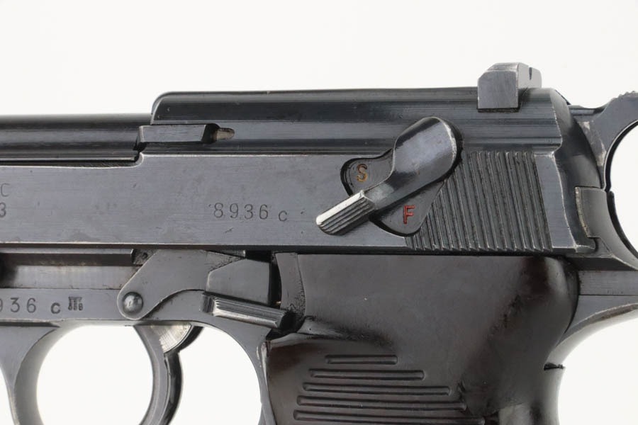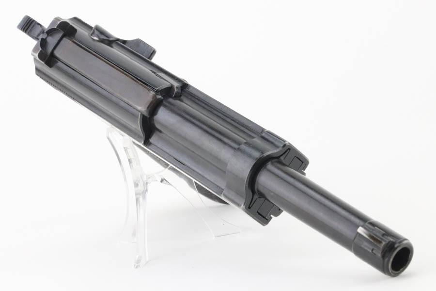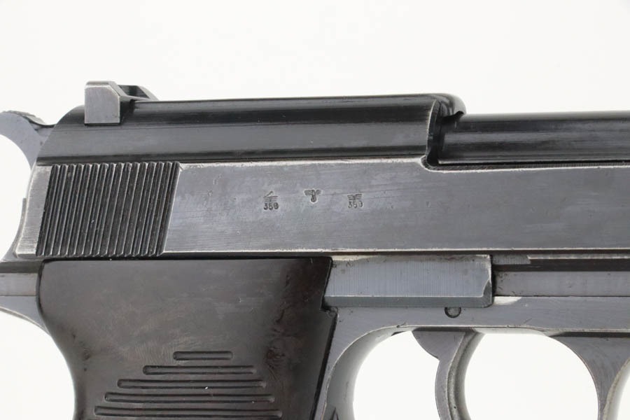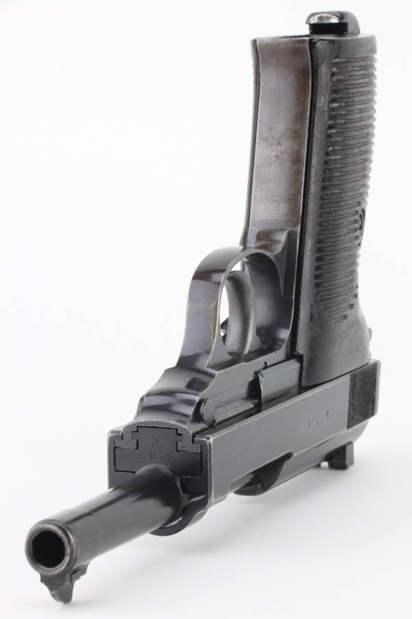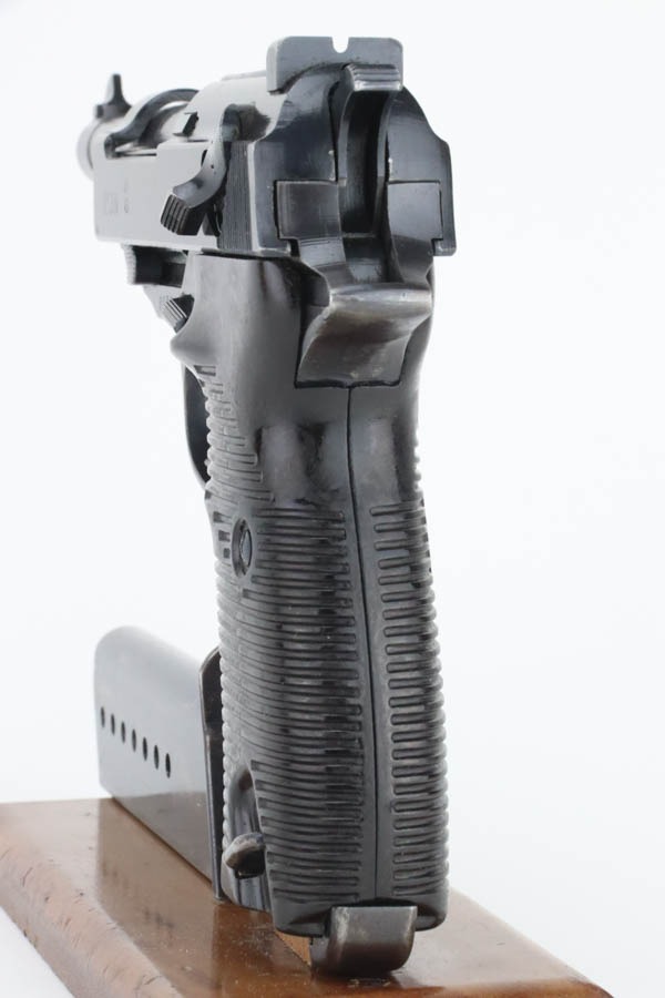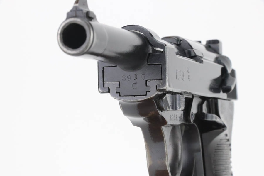 11/12/24 – This is a very nice example of an AC 43 Walther P.38 issued to the Nazi military in 1943. All matching with the proper “Eagle 359” military acceptance proofs. It has retained about 90% of its original finish. The majority of the wear is on the front strap, where there is also light brown patina. There is also minor muzzle and high edge wear and a few spots of minor discoloration. Fitted with period-correct blackish-brown bakelite grips. Comes with an “Eagle 359” marked Walther magazine. Very nice bore with great rifling, just some very light frosting in the grooves. De-cocker is functional.