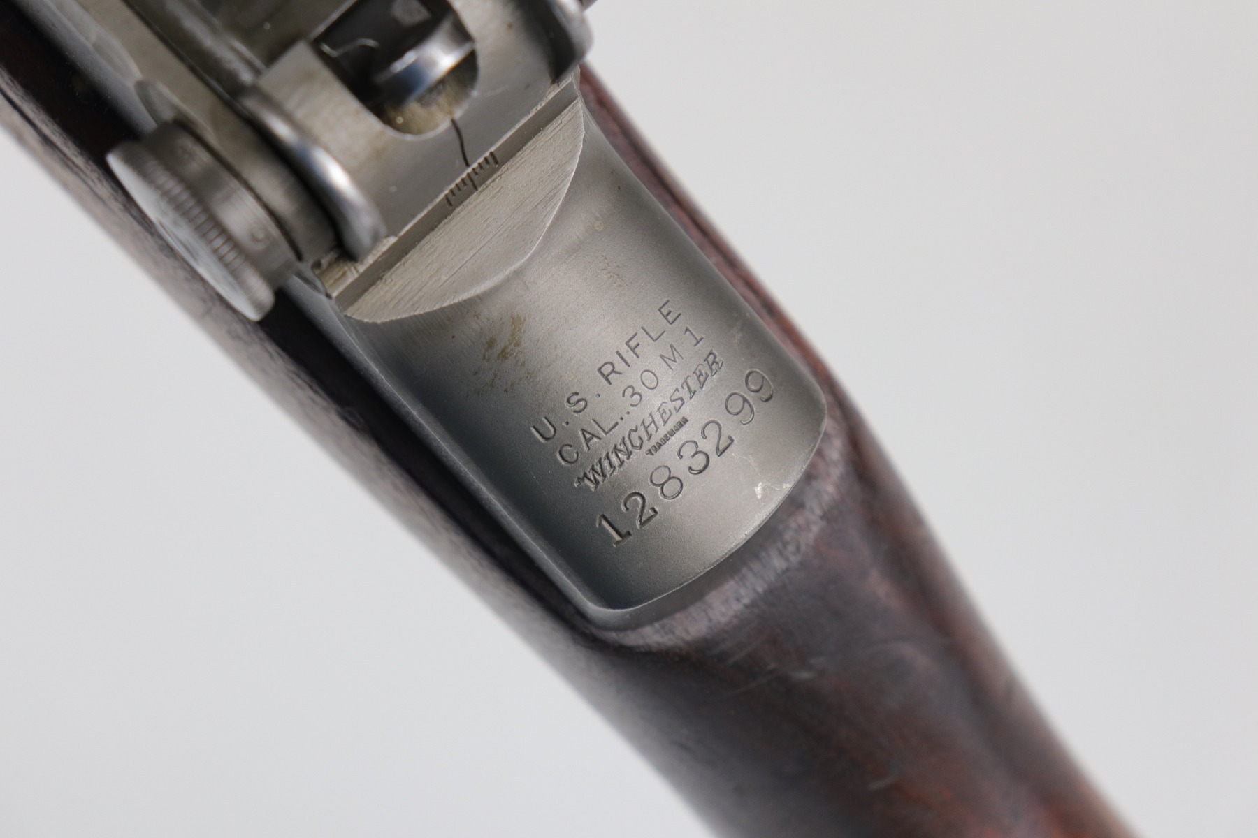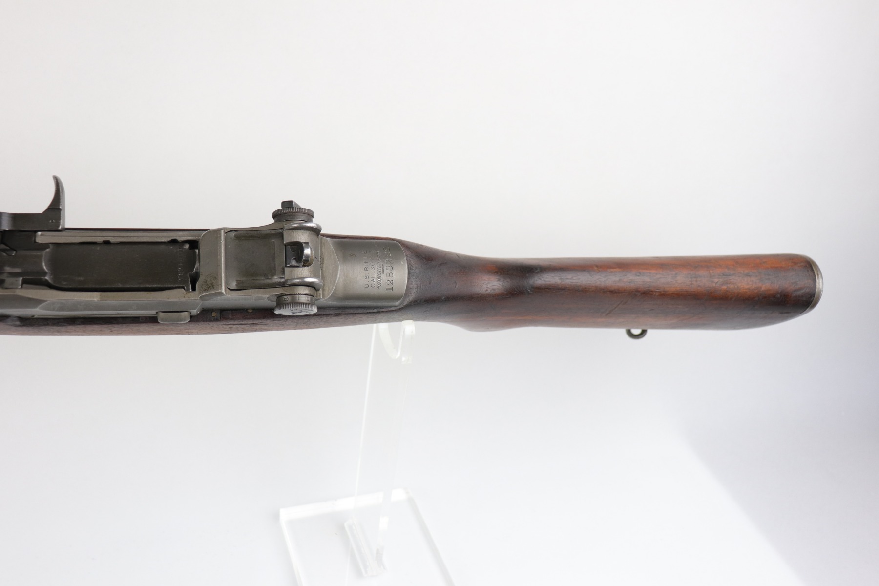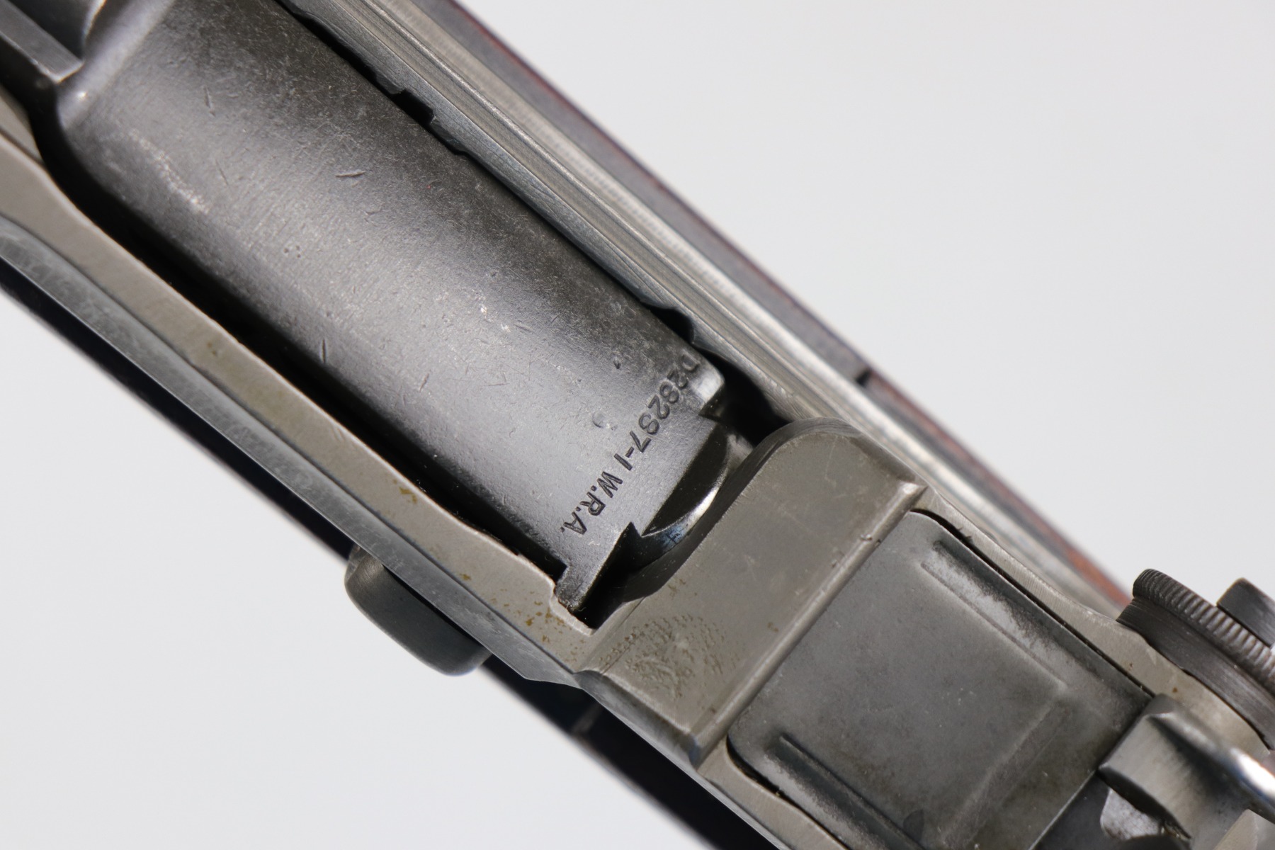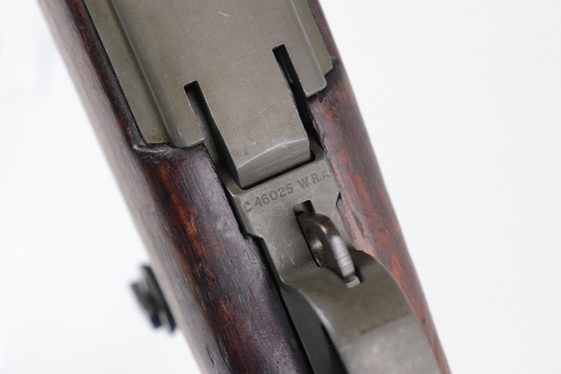 6/16/20 – This is a WW2 Winchester M1 Garand Rifle made in 1943. Overall, this gun is in excellent condition. Most of the finish on the metal parts is in tact – the wear is most notable around the gas cylinder. The wood stock is excellent, just a few minor dings and dents here and there. It is all original except for the gas plug which has been replaced. Winchester stock. There is no cartouche on the stock. It has a rebuild etching on the leg of the receiver. The bore is excellent – shiny with very strong rifling.