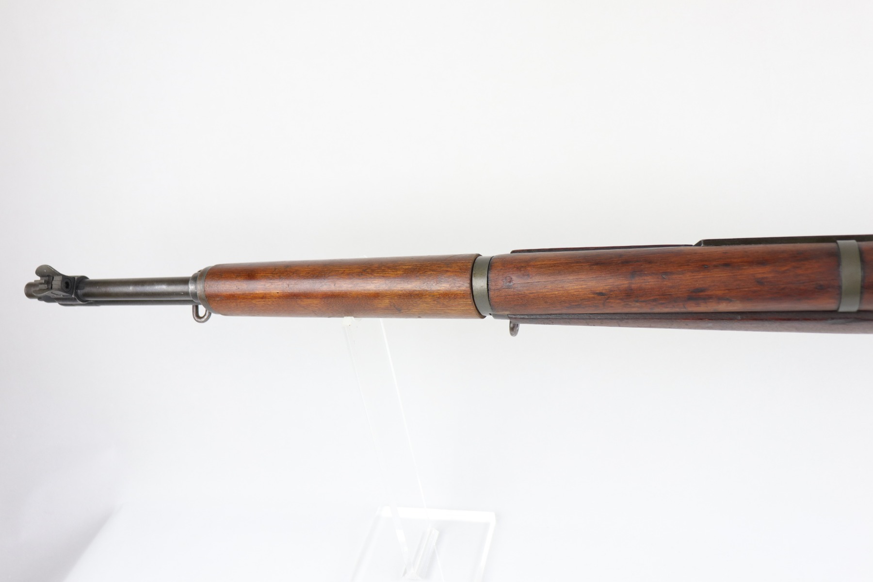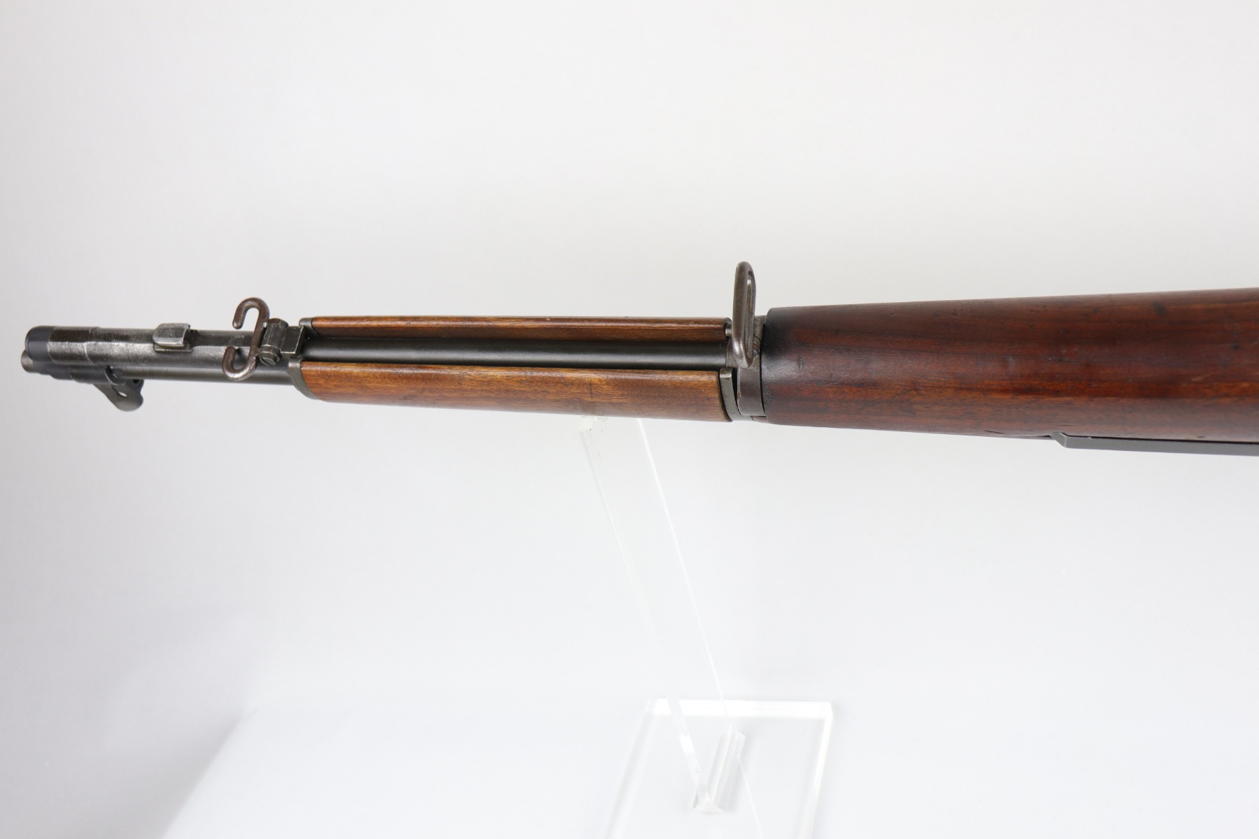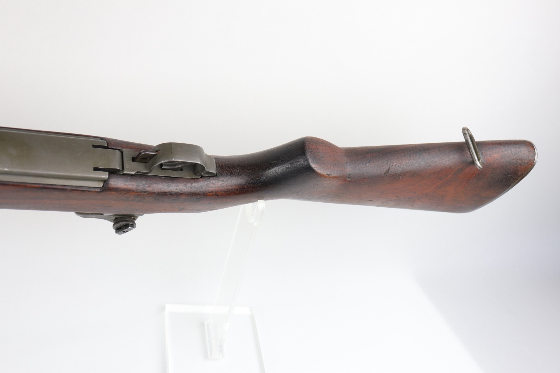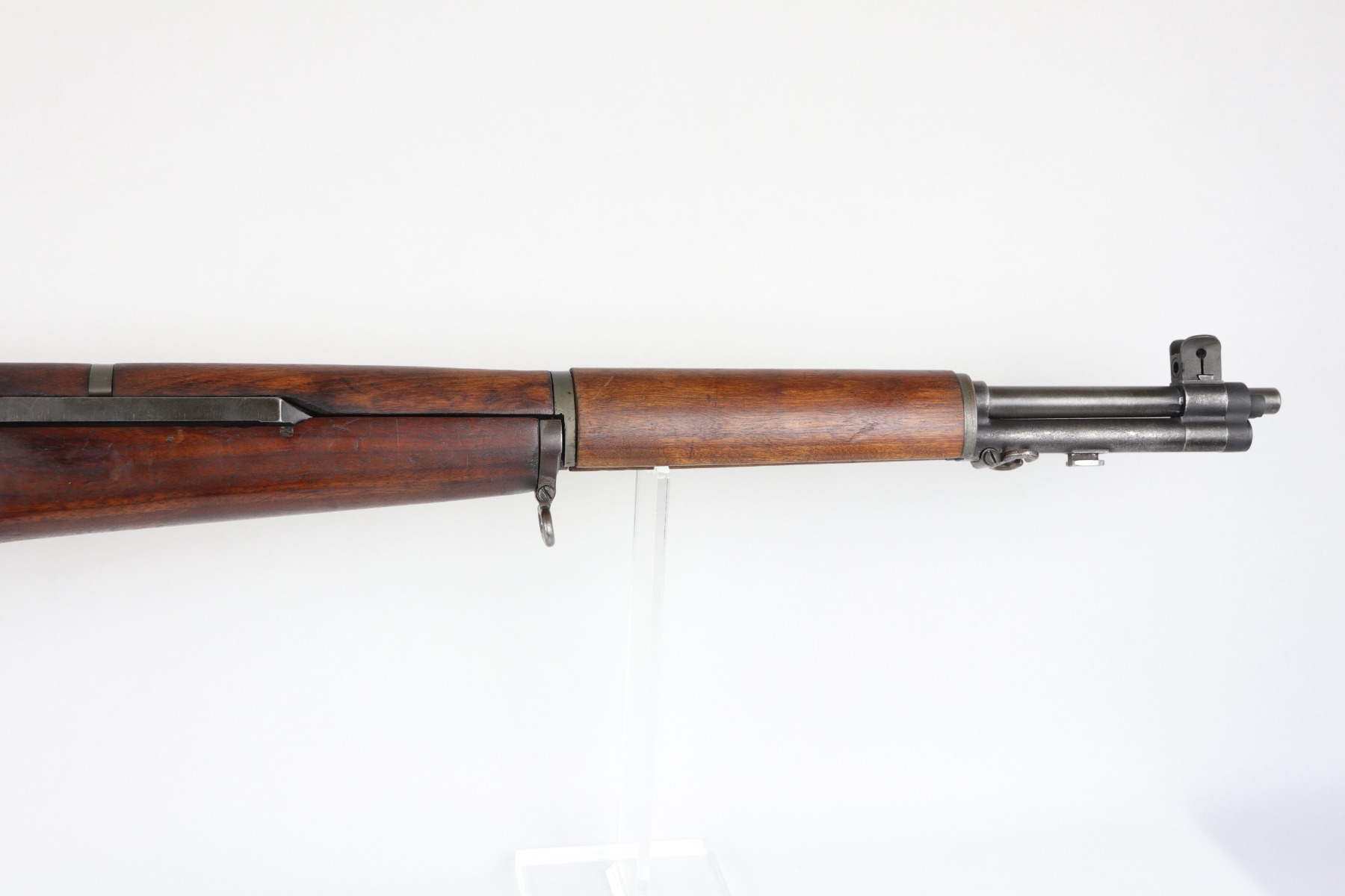 6/16/20 – This is a WW2 Winchester M1 Garand Rifle made in 1943. Overall, this gun is in excellent condition. Most of the finish on the metal parts is in tact – the wear is most notable around the gas cylinder. The wood stock is excellent, just a few minor dings and dents here and there. It is all original except for the gas plug which has been replaced. Winchester stock. There is no cartouche on the stock. It has a rebuild etching on the leg of the receiver. The bore is excellent – shiny with very strong rifling.