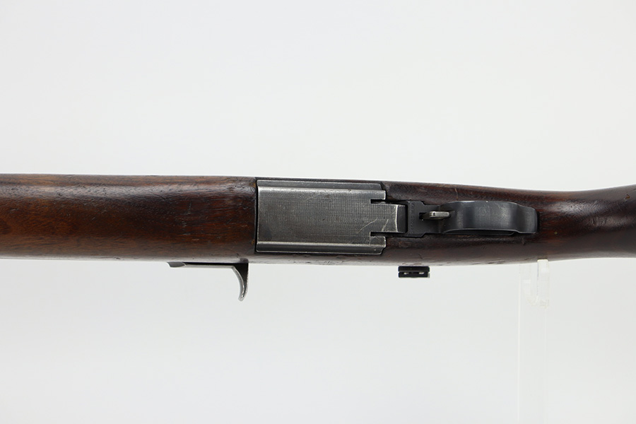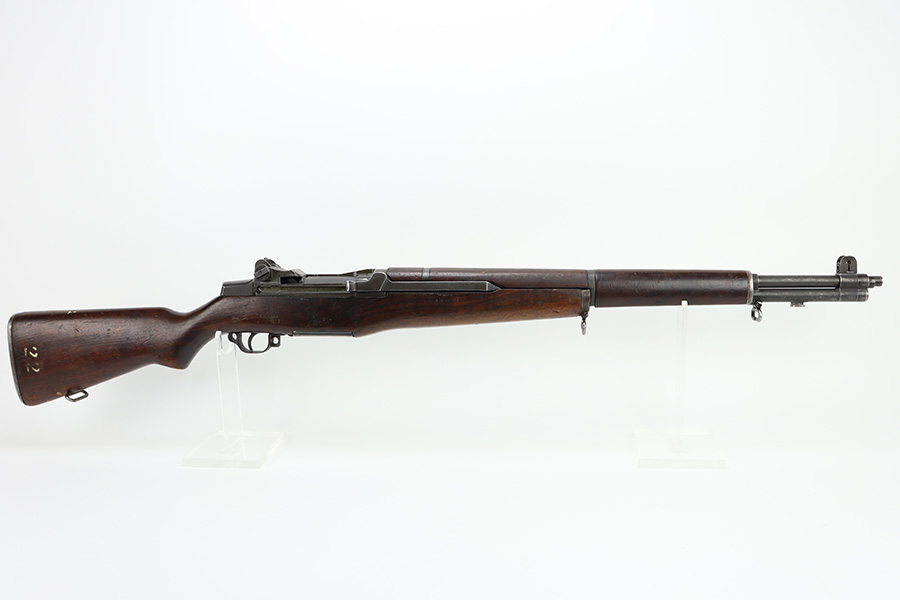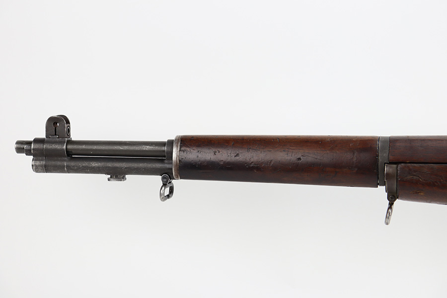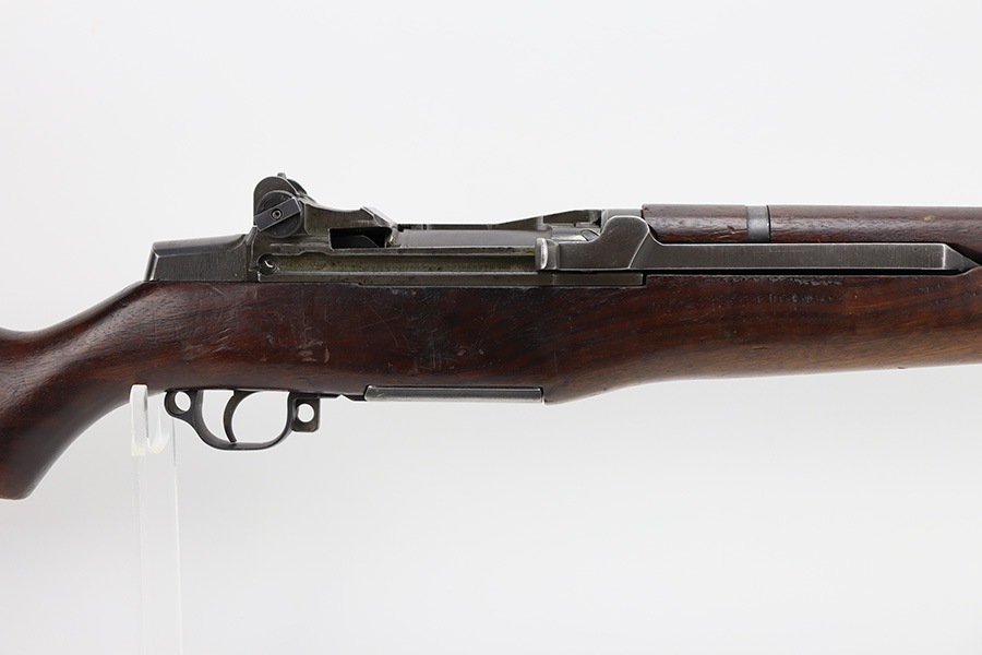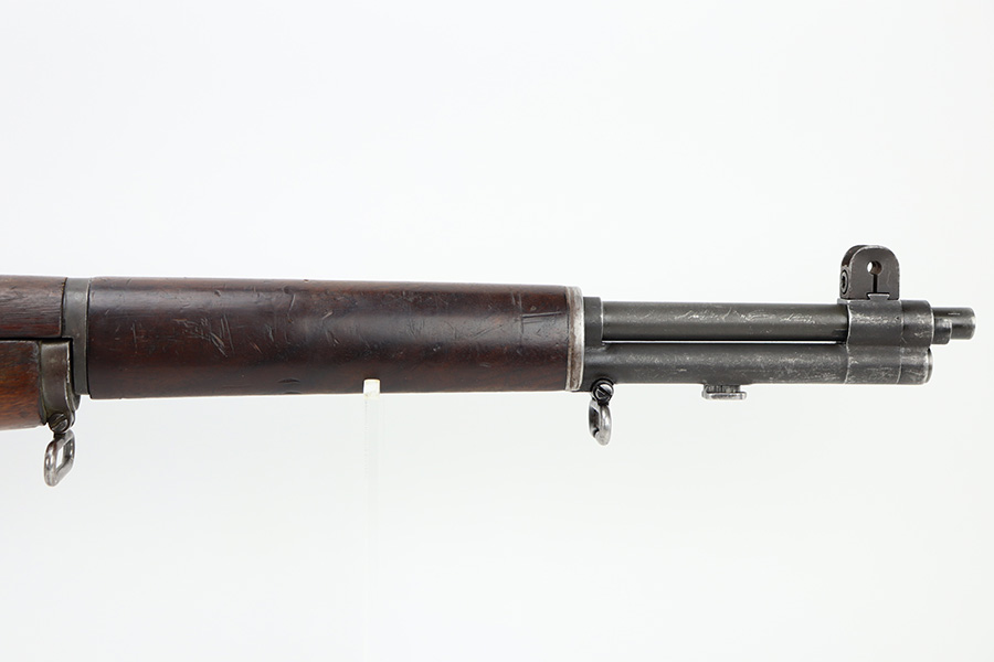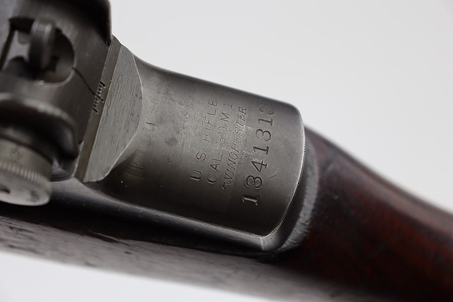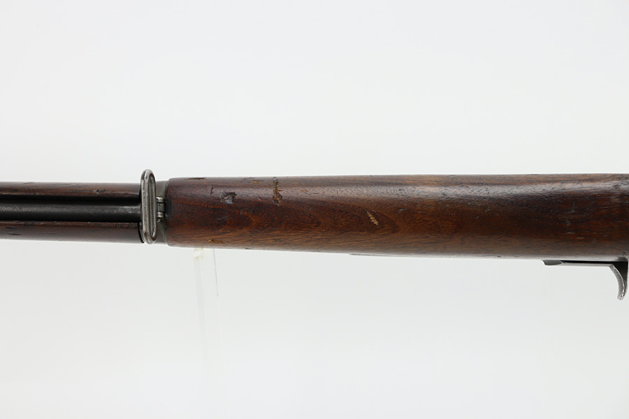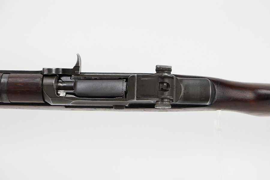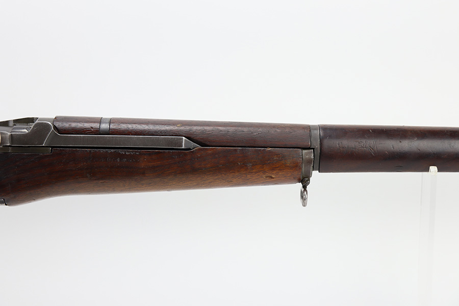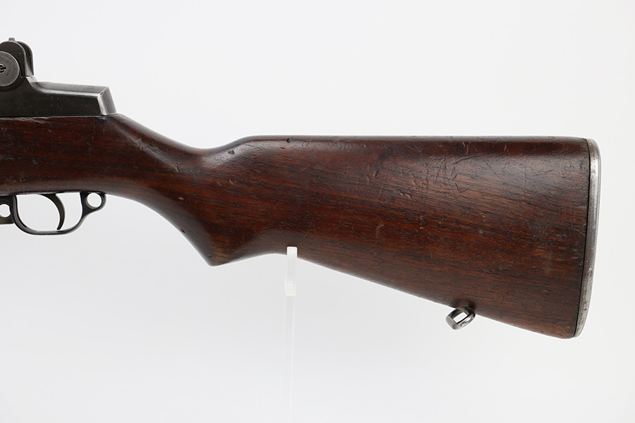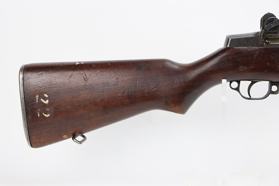 12/7/23 – This is a a Winchester M1 Garand from about June of 1943. This particular gun was sent to an arsenal after the war and was converted from .30-06 to 7.62 or .308. The barrel is marked H&R. The breech bolt and trigger group are Winchester marked. No proofs on the stock, just a “22” white painted rack number on the butt stock. The finish on the metal parts rates roughly 85% with general high edge wear, some scratches along the barrel, and thinning on the floor plate. The wood shows the typical signs of wear and use – minor dings and bruises throughout. Near-mint bore.
